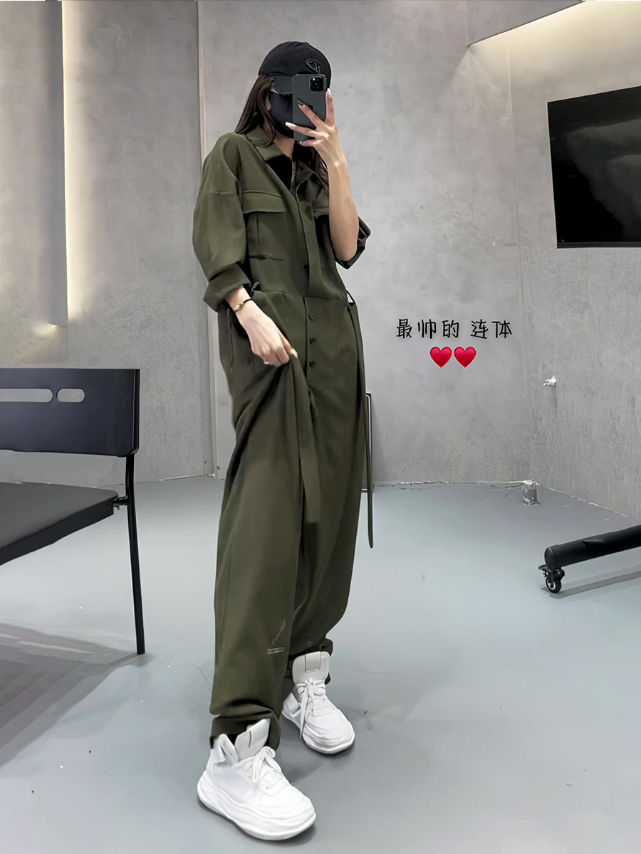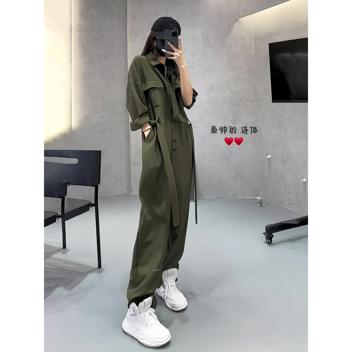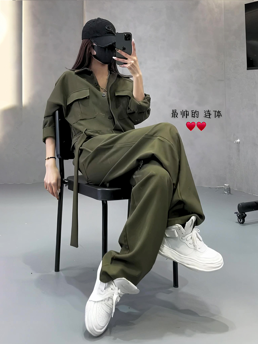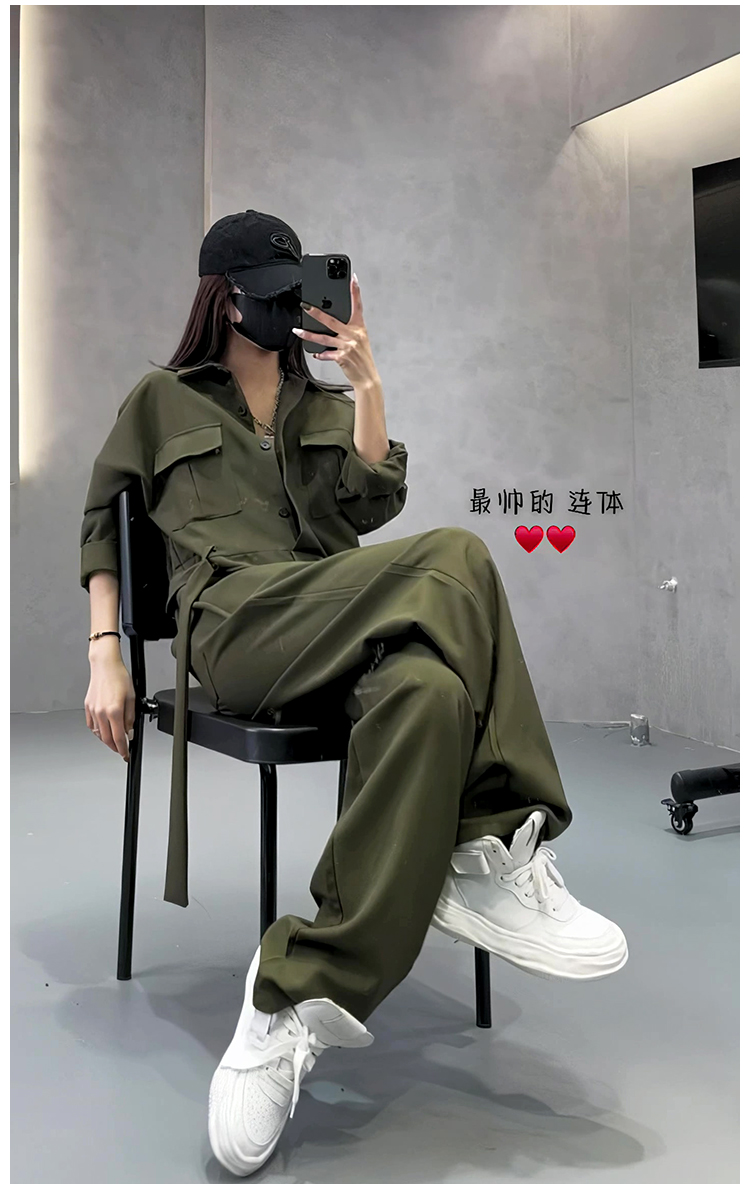 高級感工裝連身褲女2023春秋款時尚寬鬆帥氣顯高顯瘦連身衣闊腿褲