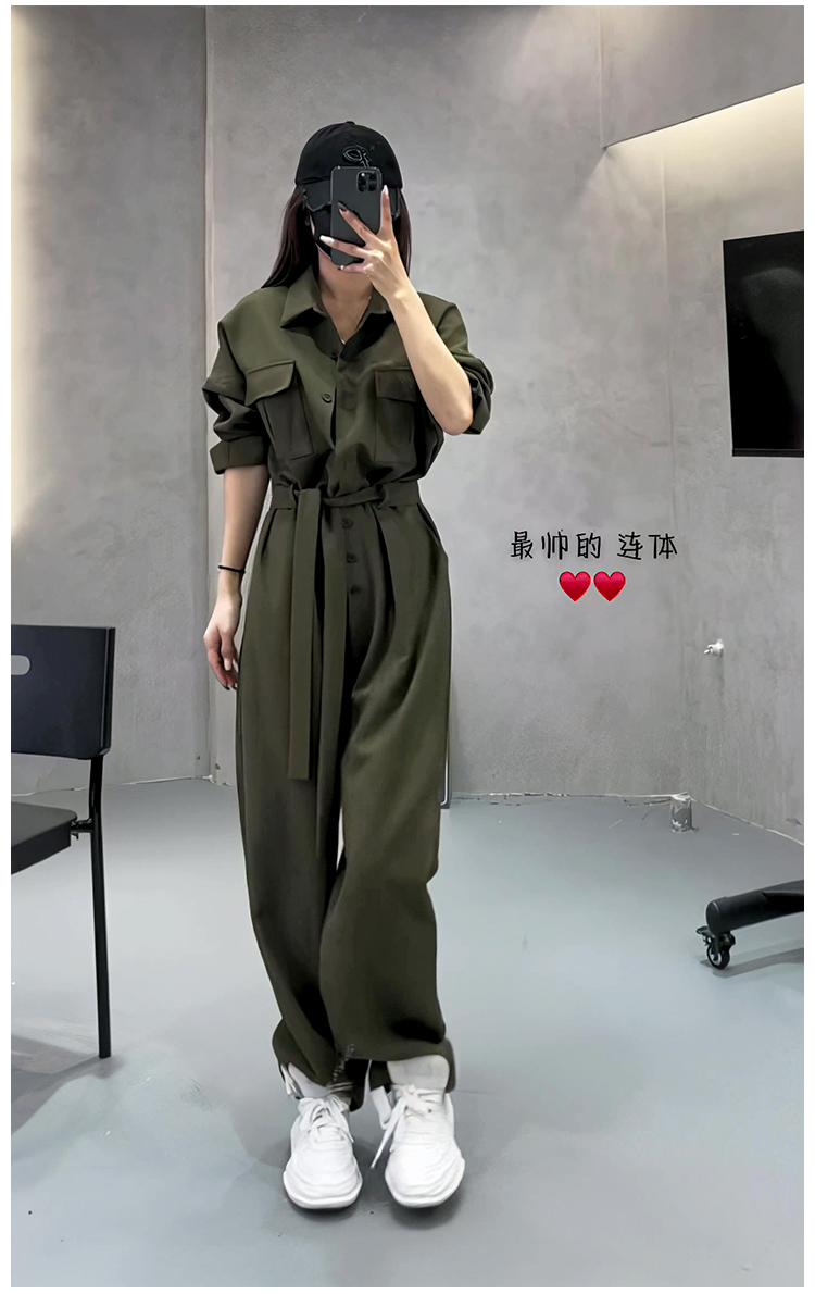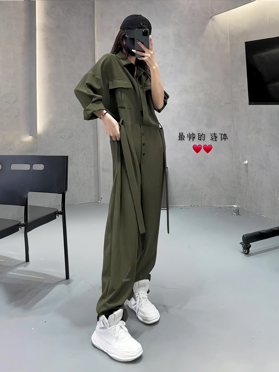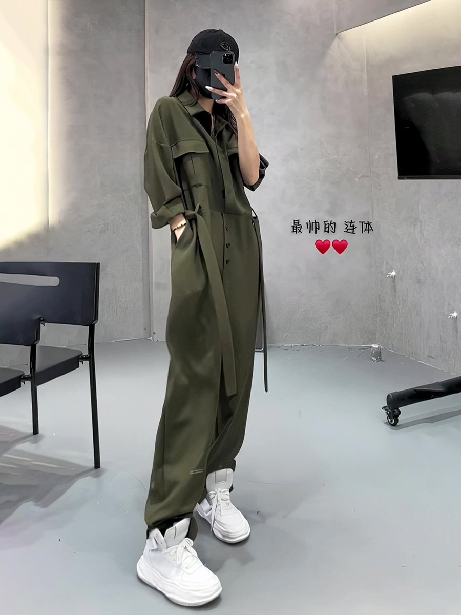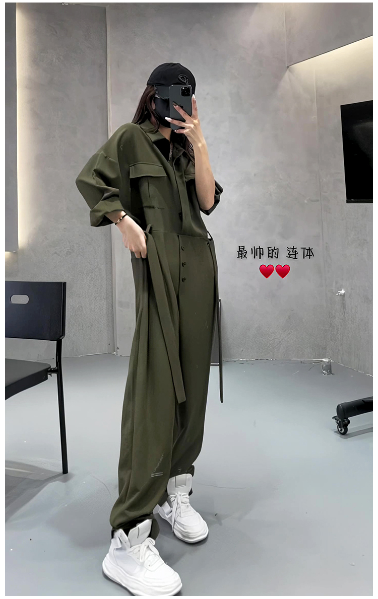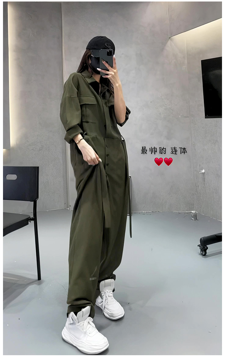 高級感工裝連身褲女2023春秋款時尚寬鬆帥氣顯高顯瘦連身衣闊腿褲