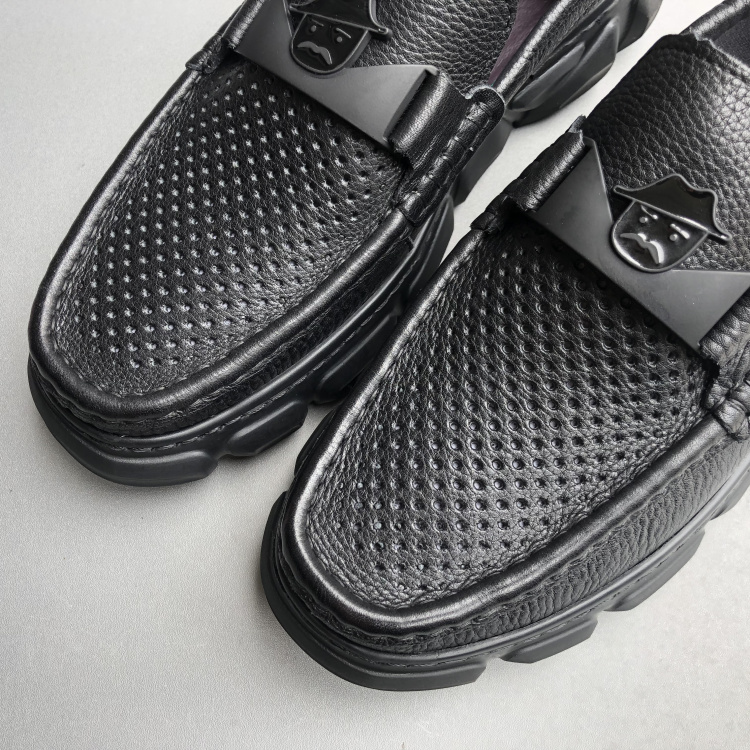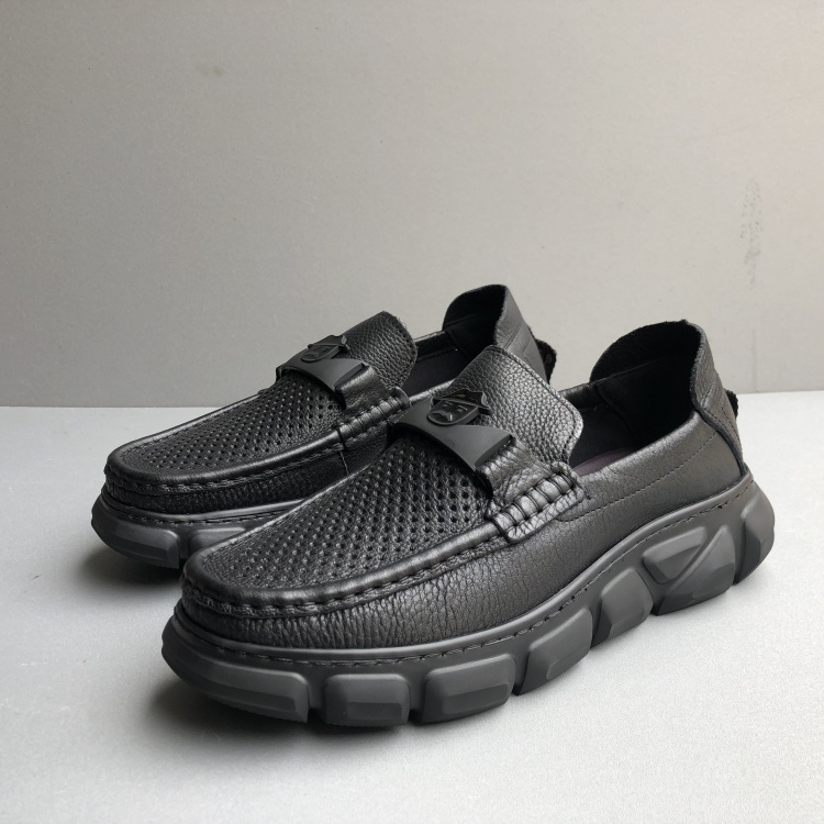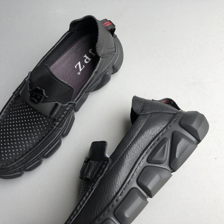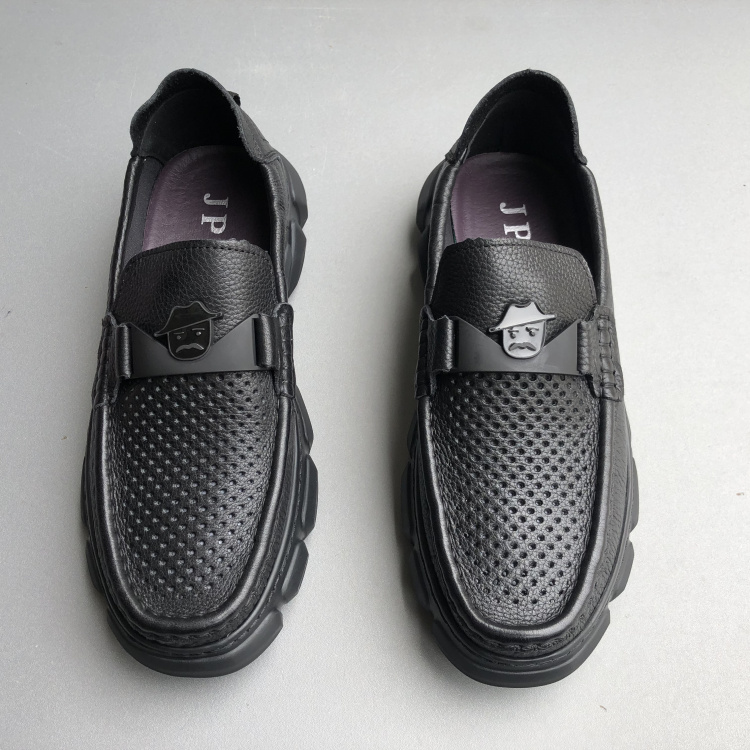 工廠直銷品牌撤櫃網眼豆豆鞋厚底百搭軟底舒適透氣牛皮懶人鞋男鞋