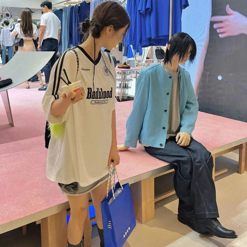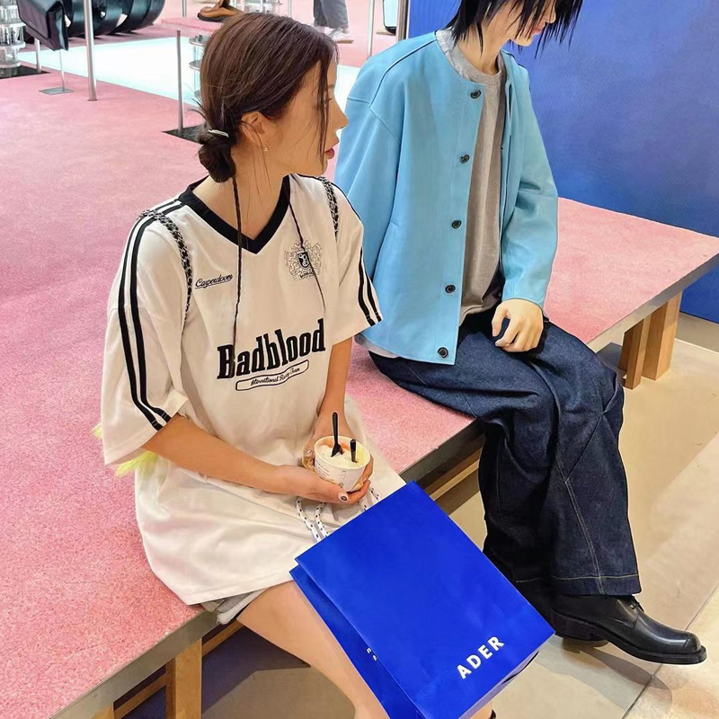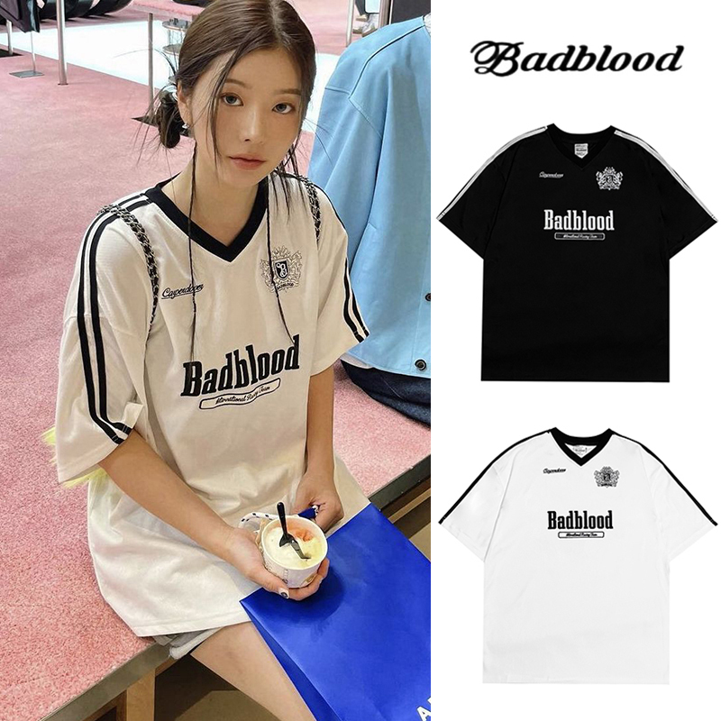 韓國代購badblood球衣運動風短袖美式復古yeri同款情侶寬鬆T恤女