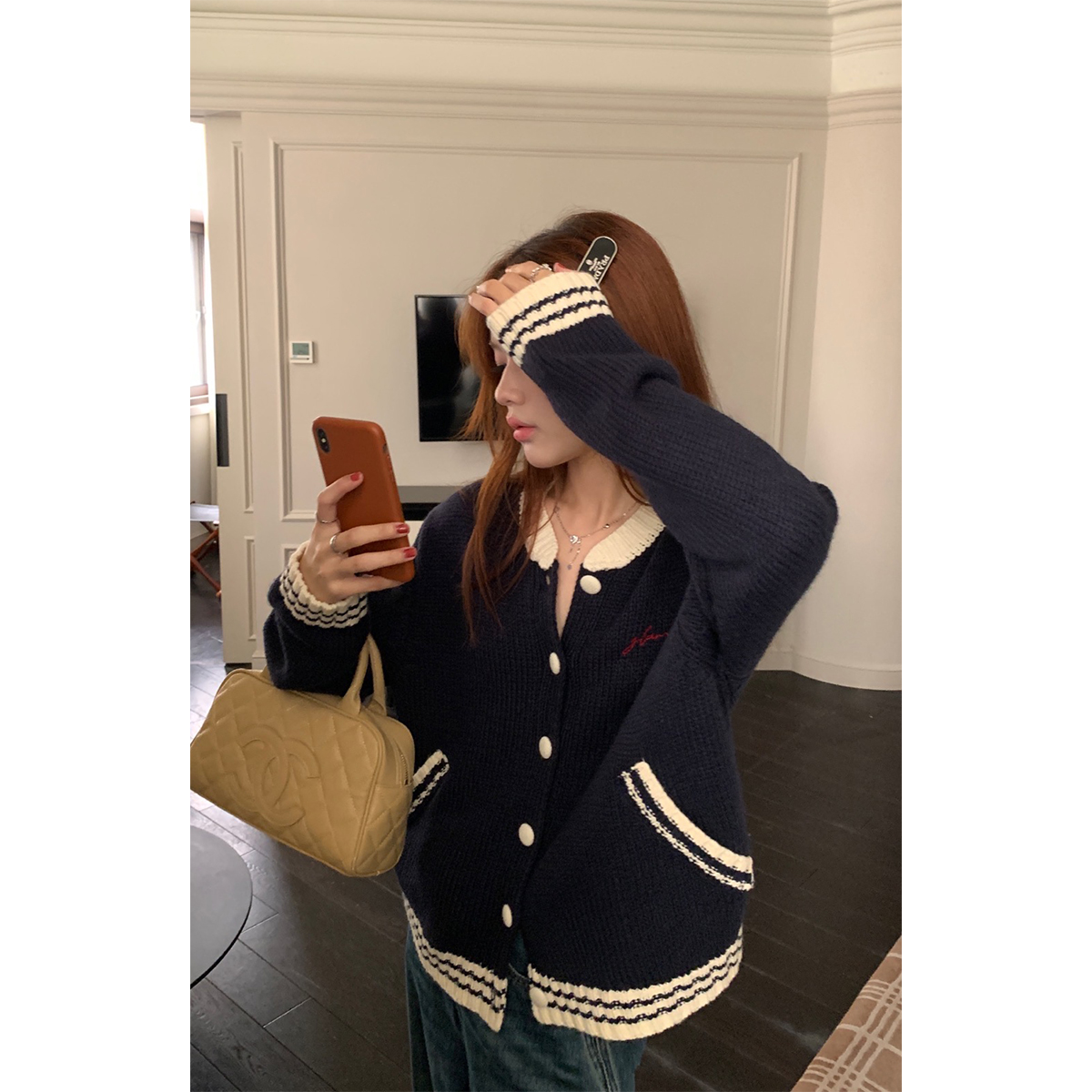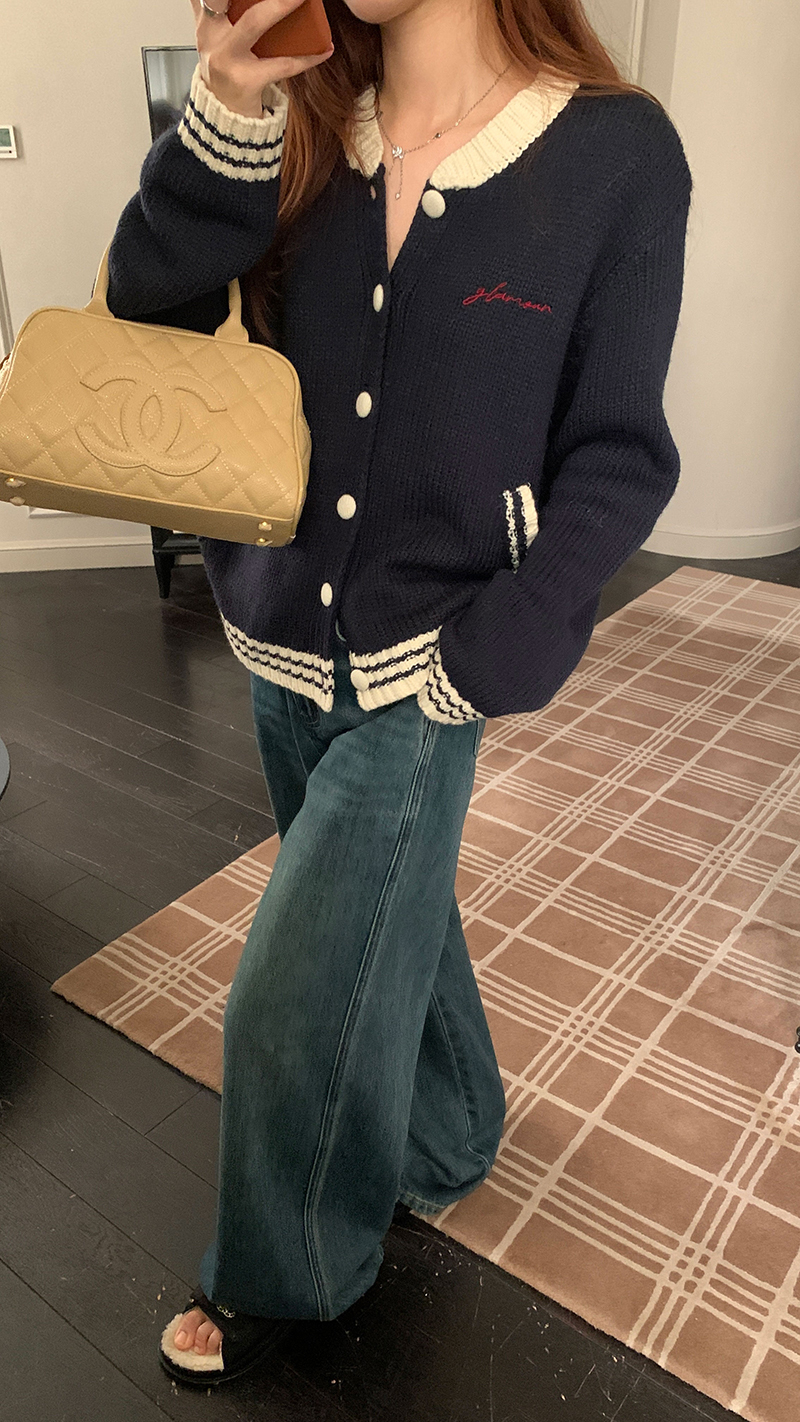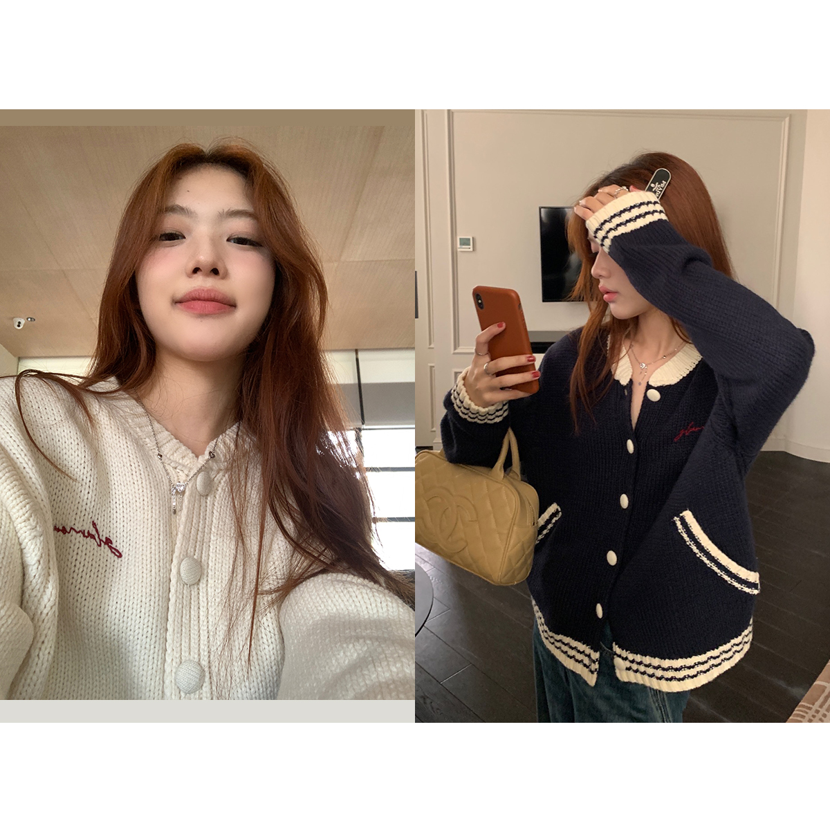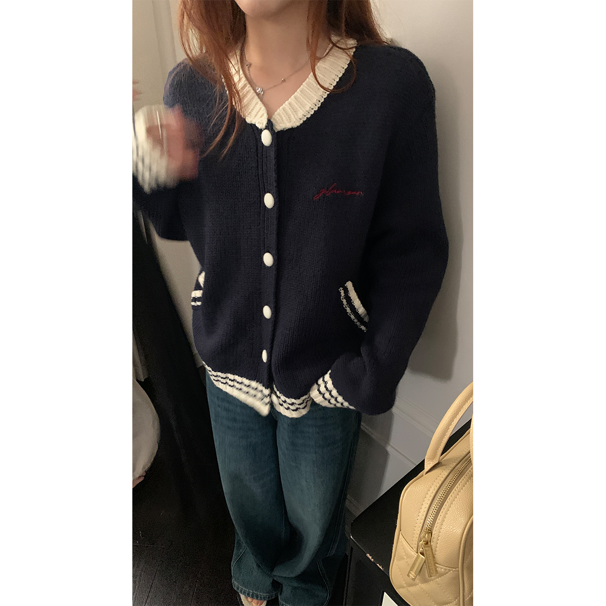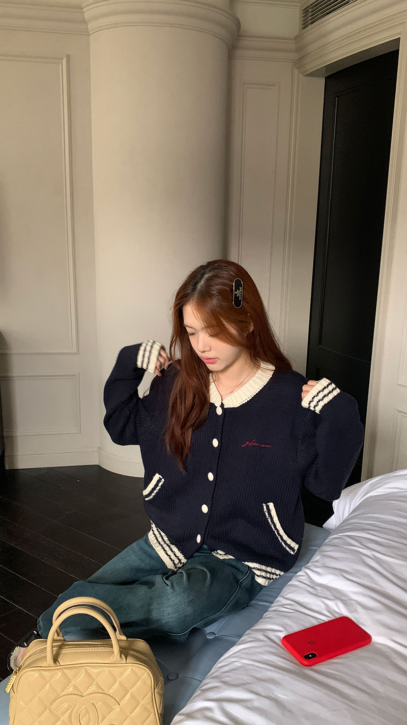 【現貨】im向 CityGirl刺繡字母vintage棒球毛衣外套女撞色邊針織