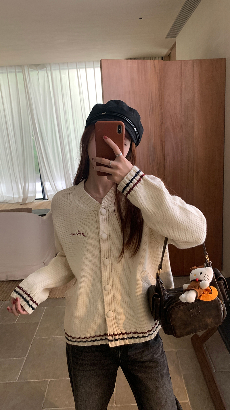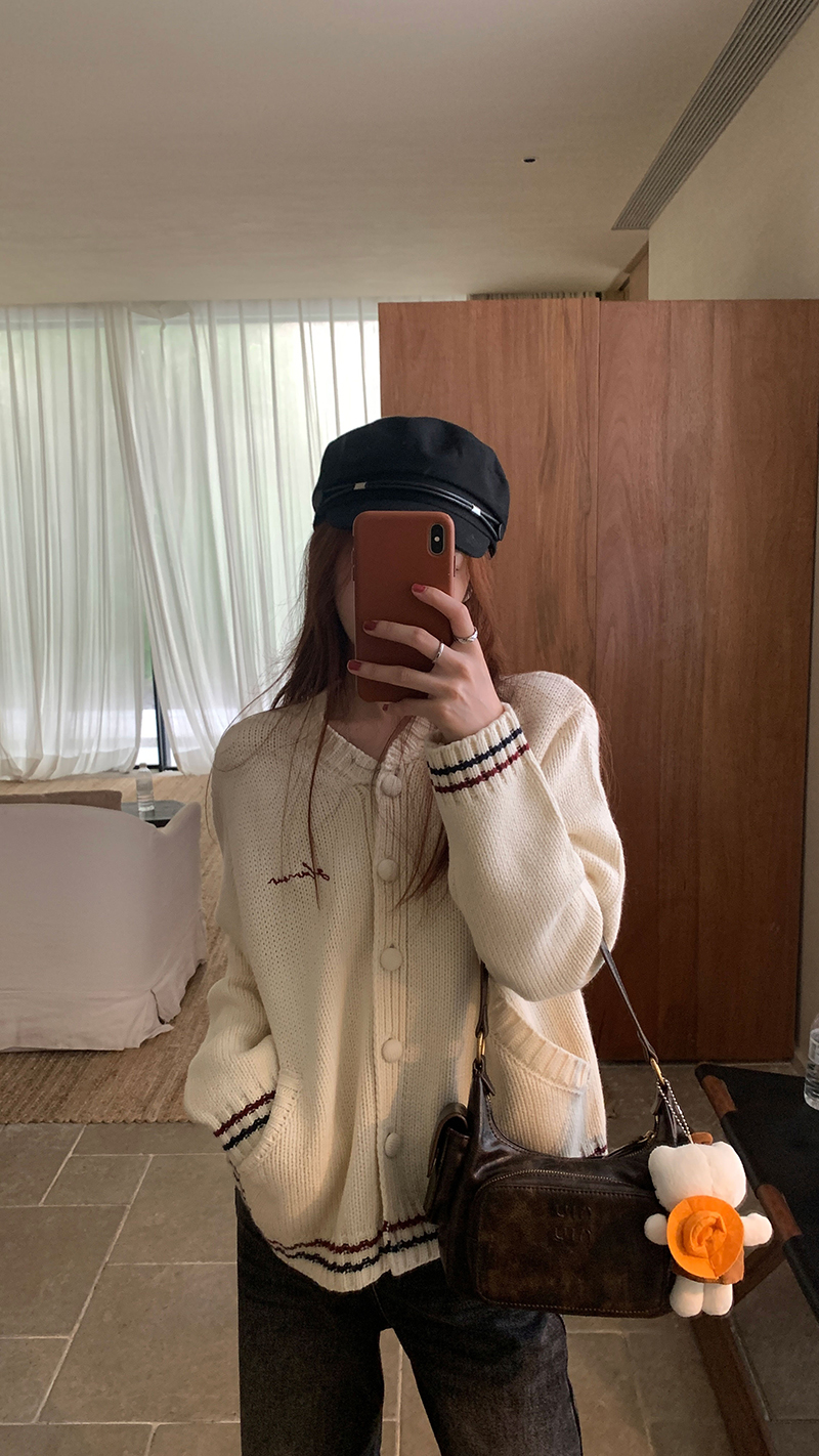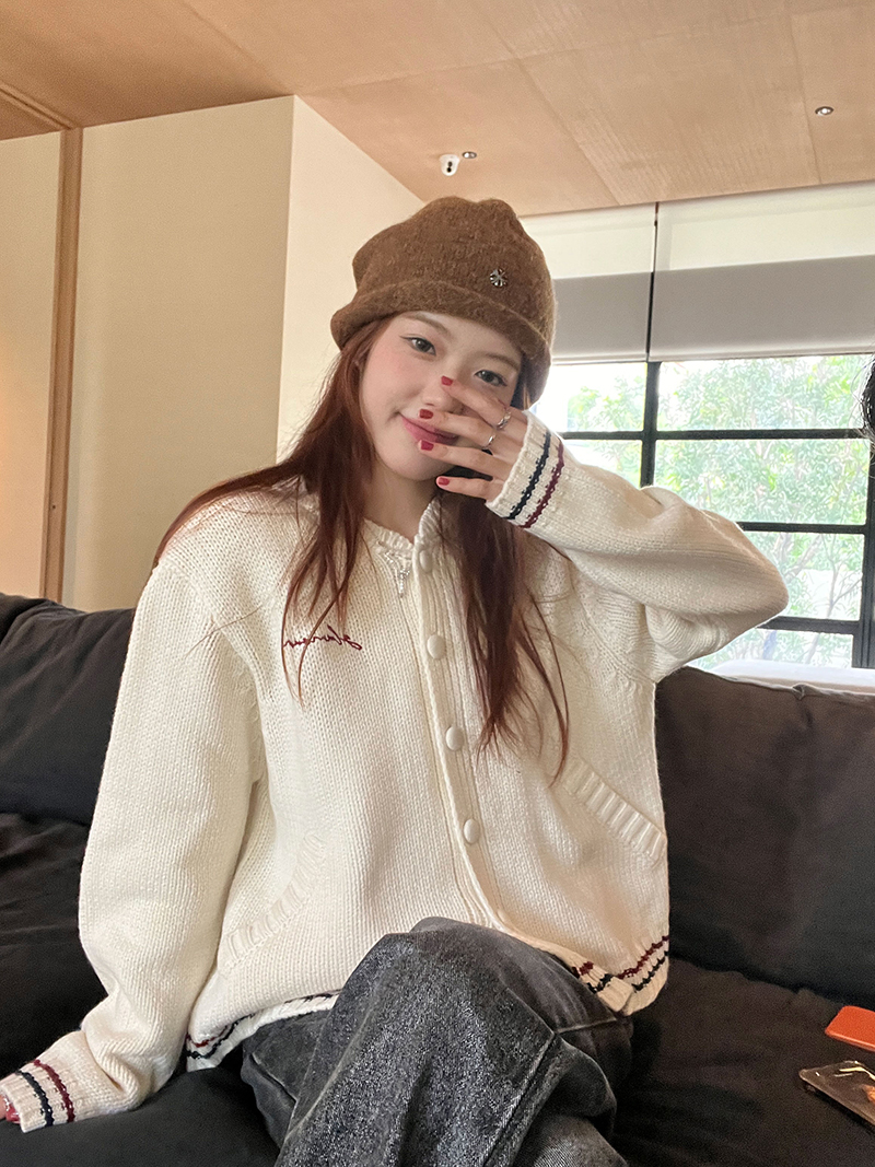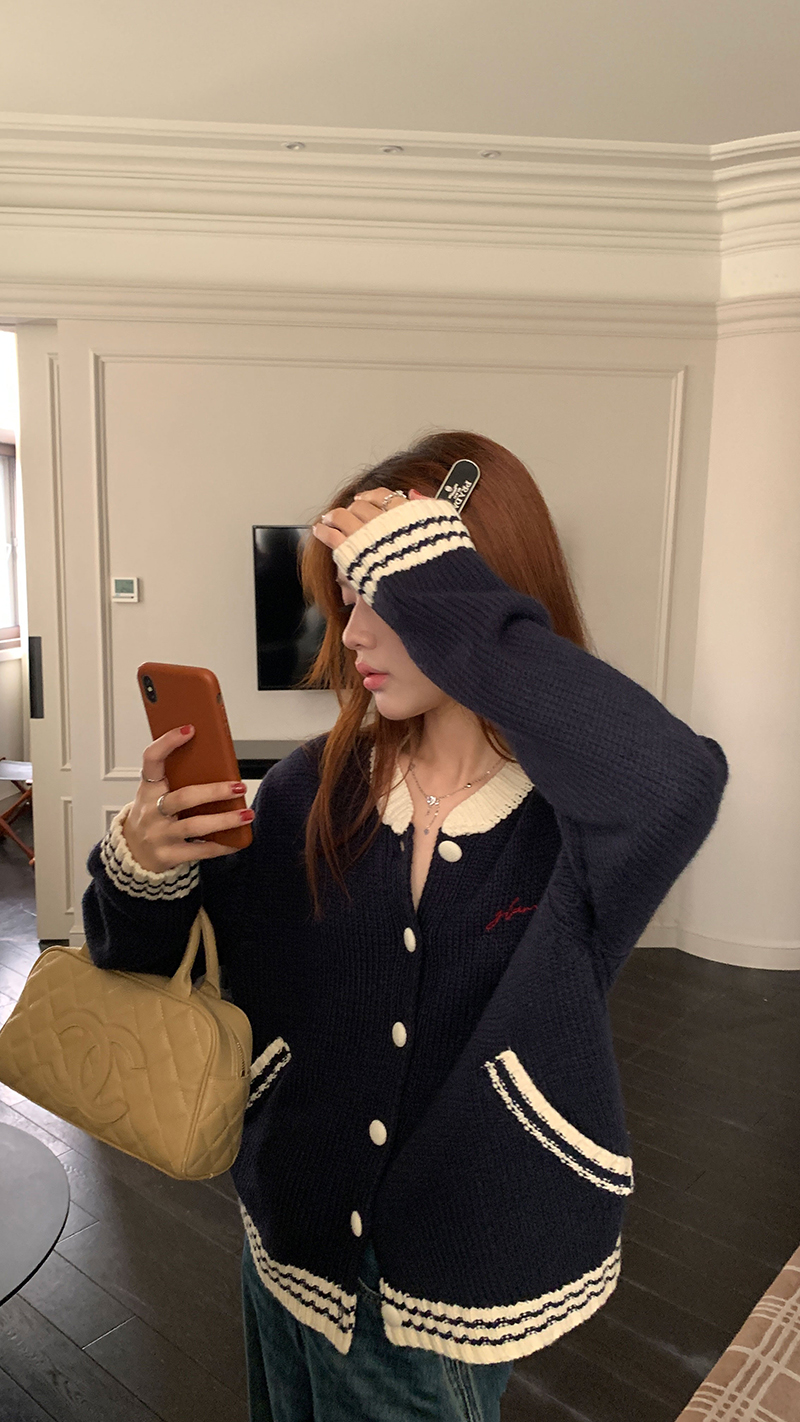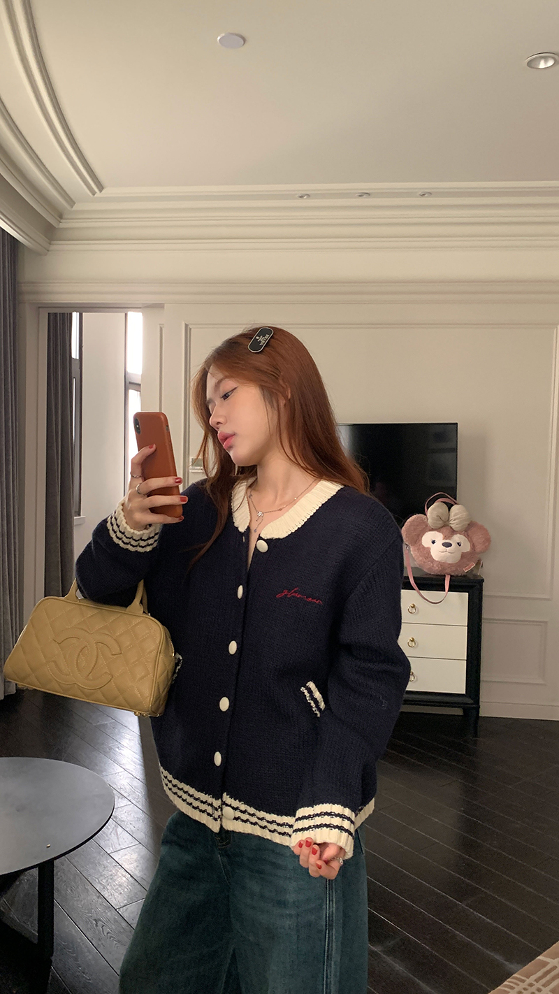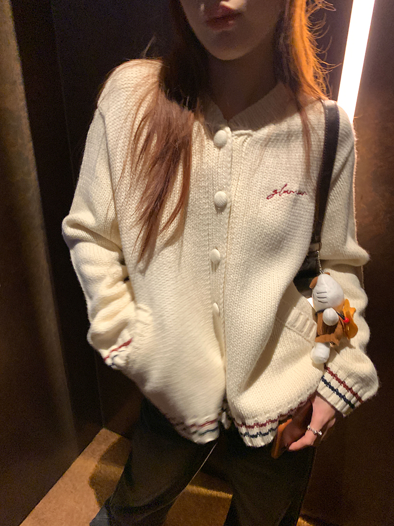 【現貨】im向 CityGirl刺繡字母vintage棒球毛衣外套女撞色邊針織