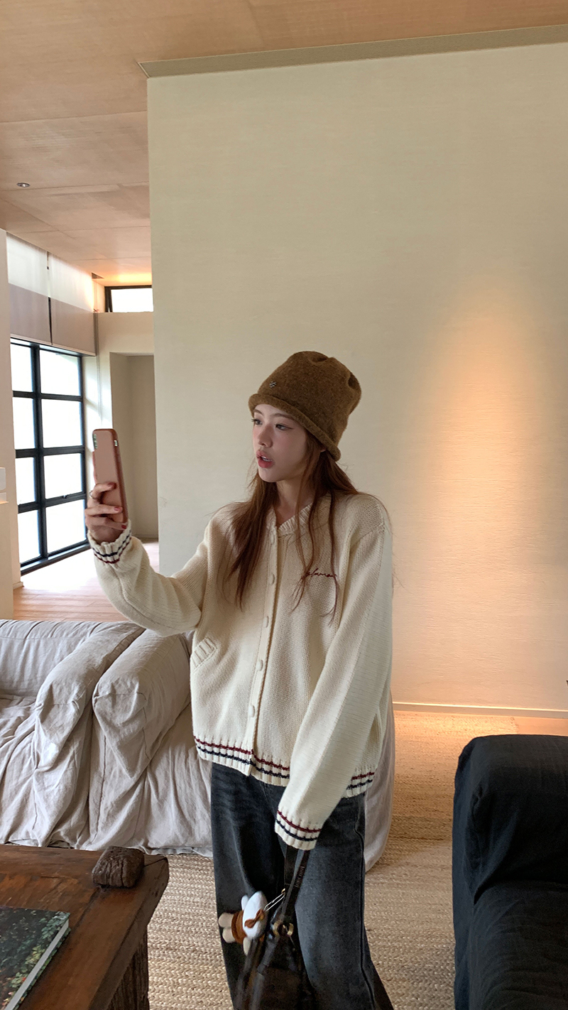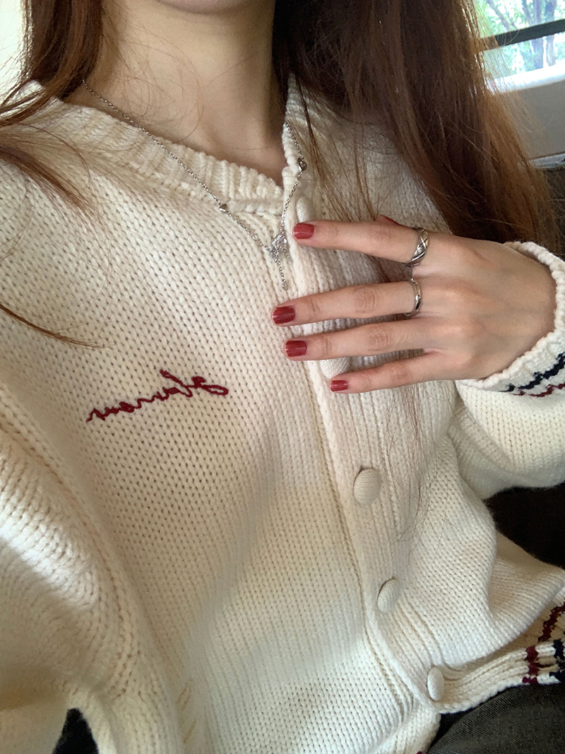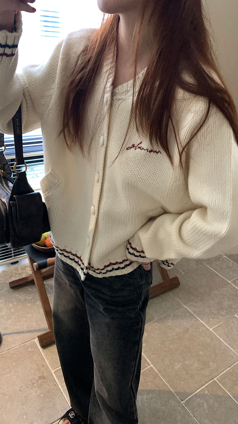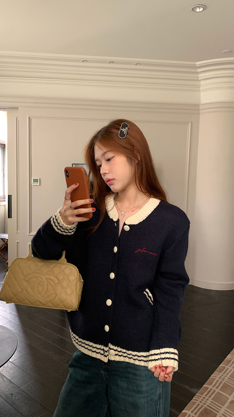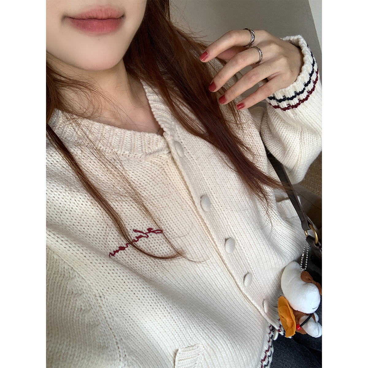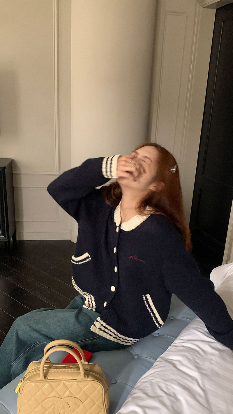 【現貨】im向 CityGirl刺繡字母vintage棒球毛衣外套女撞色邊針織