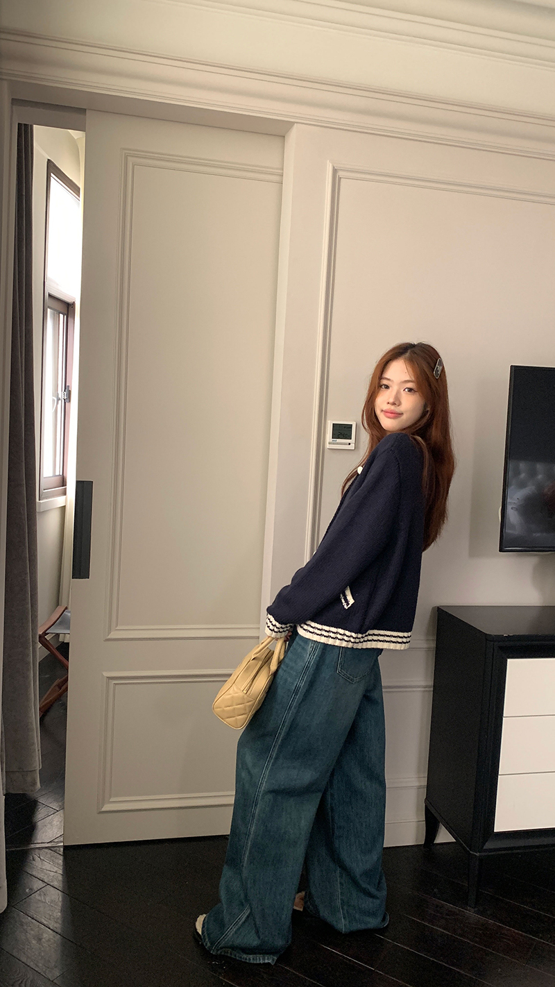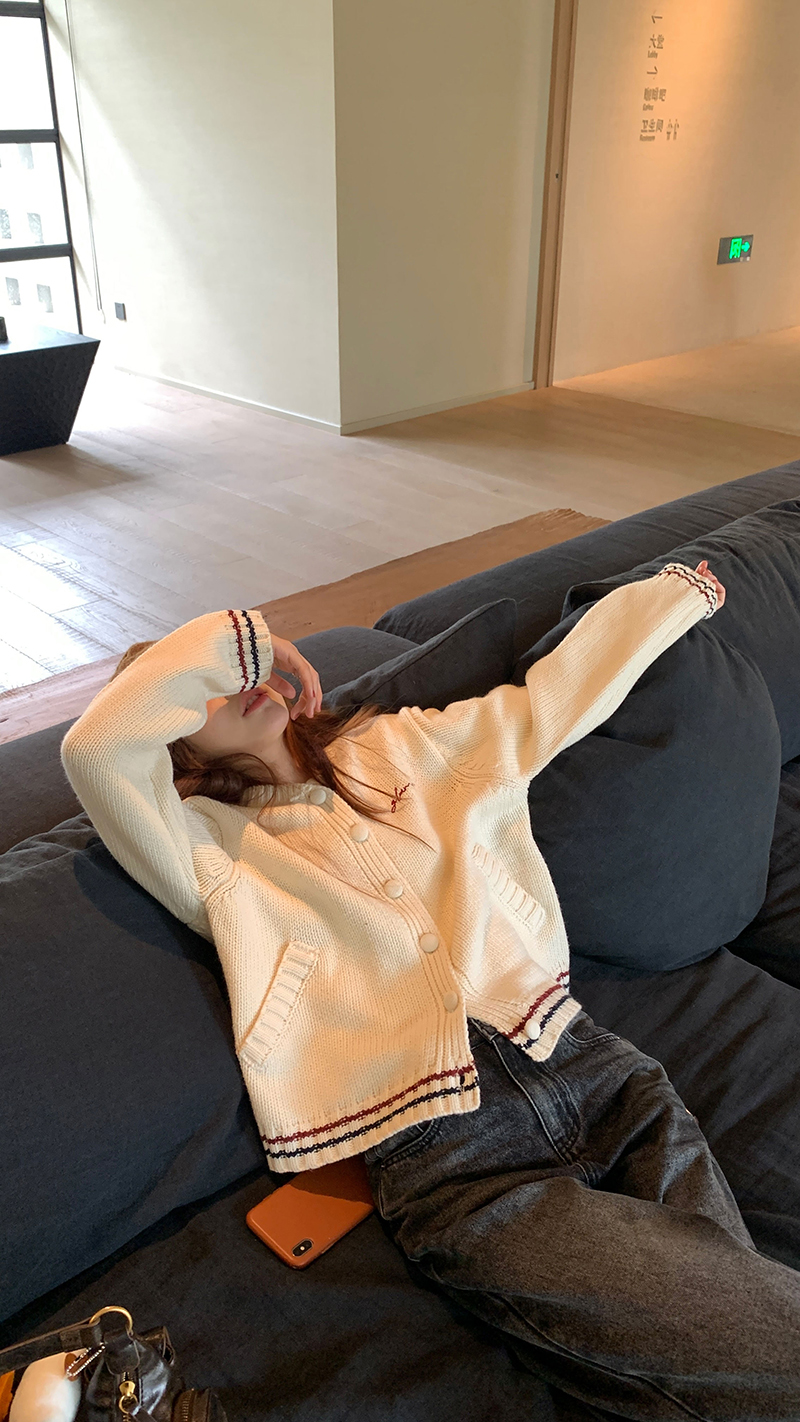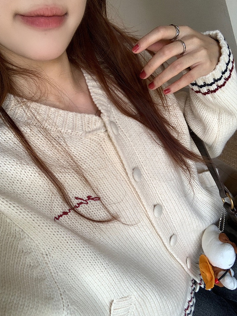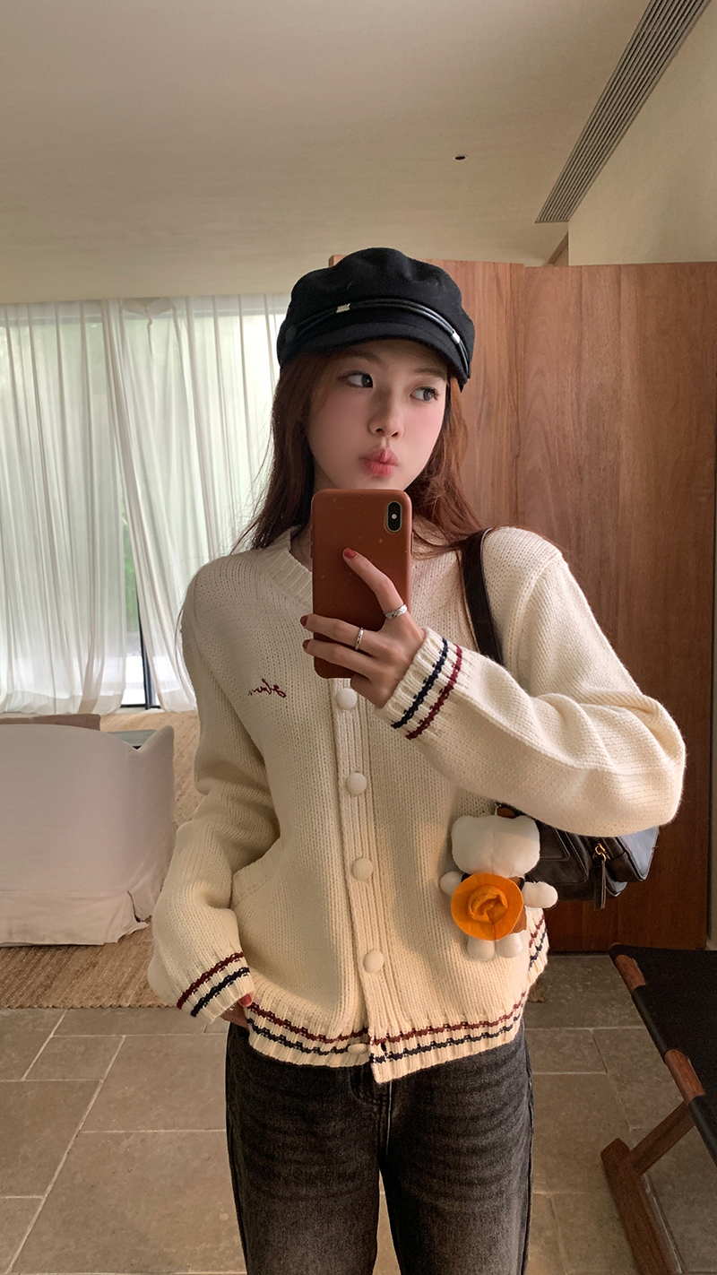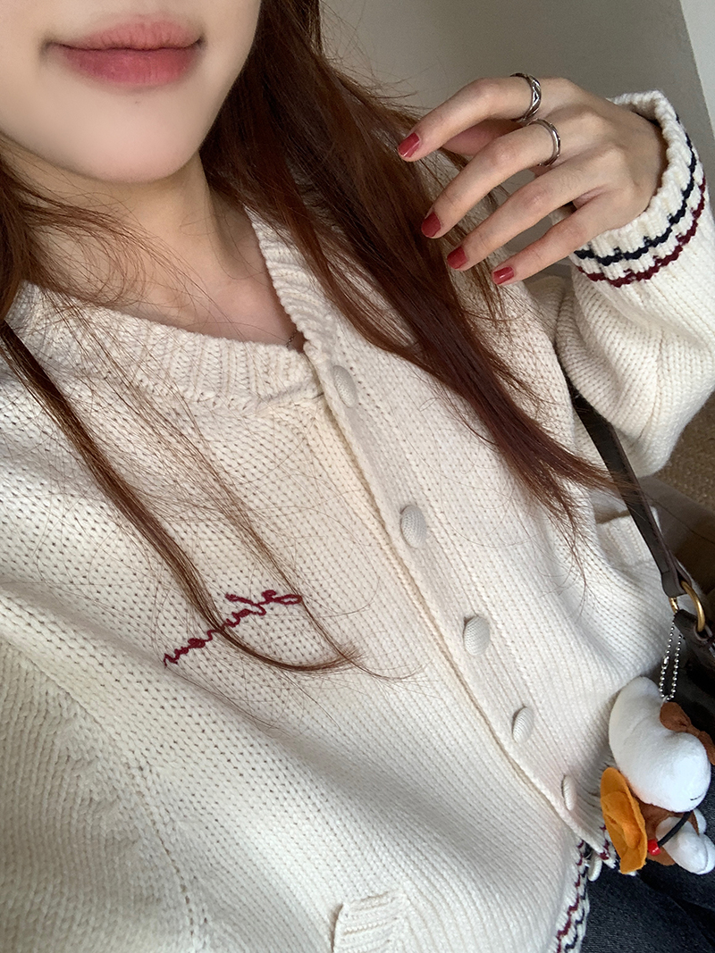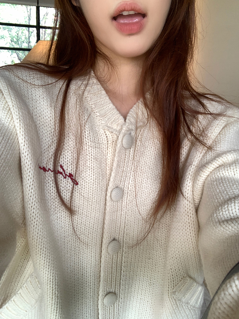 【現貨】im向 CityGirl刺繡字母vintage棒球毛衣外套女撞色邊針織