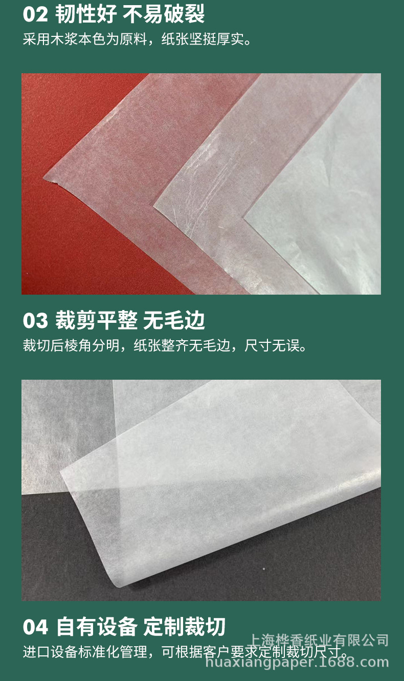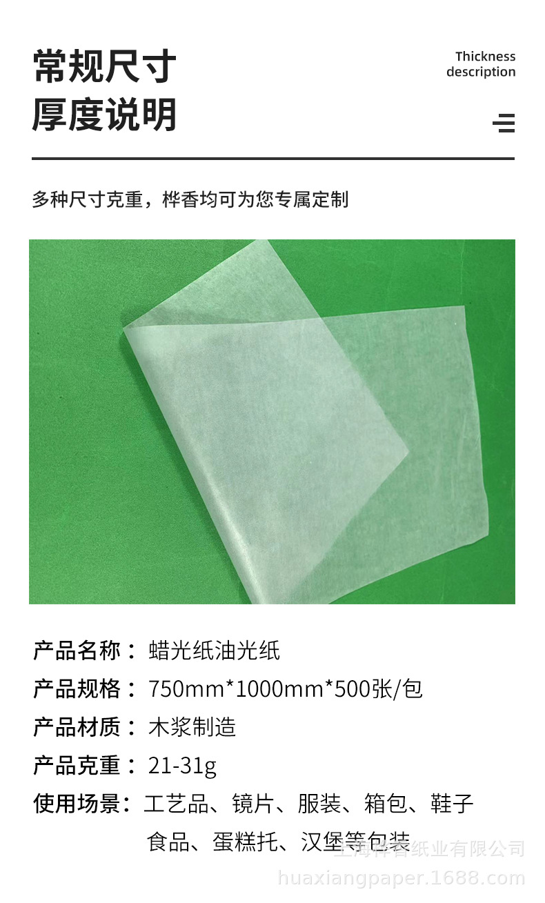 蜡光纸服装包装纸21g半透明纸31g格拉辛尺寸裁切食品级防潮油光纸