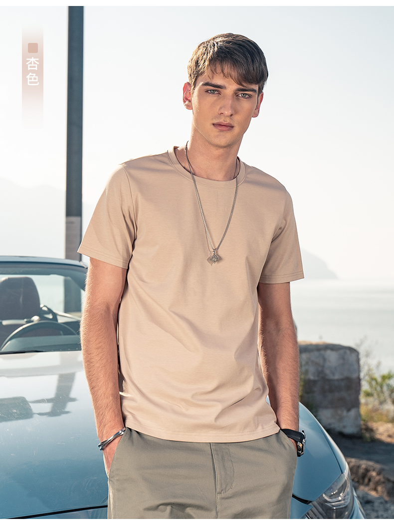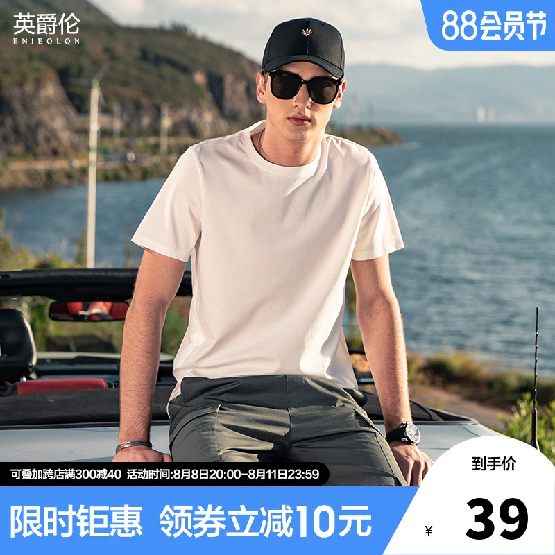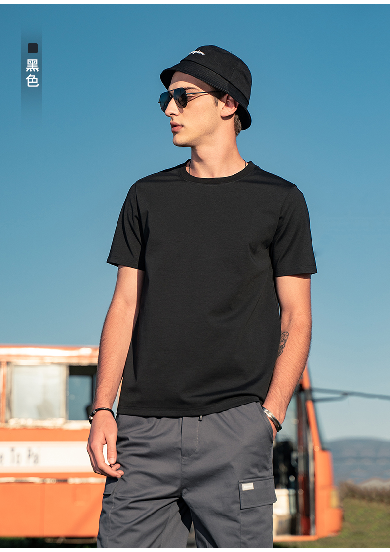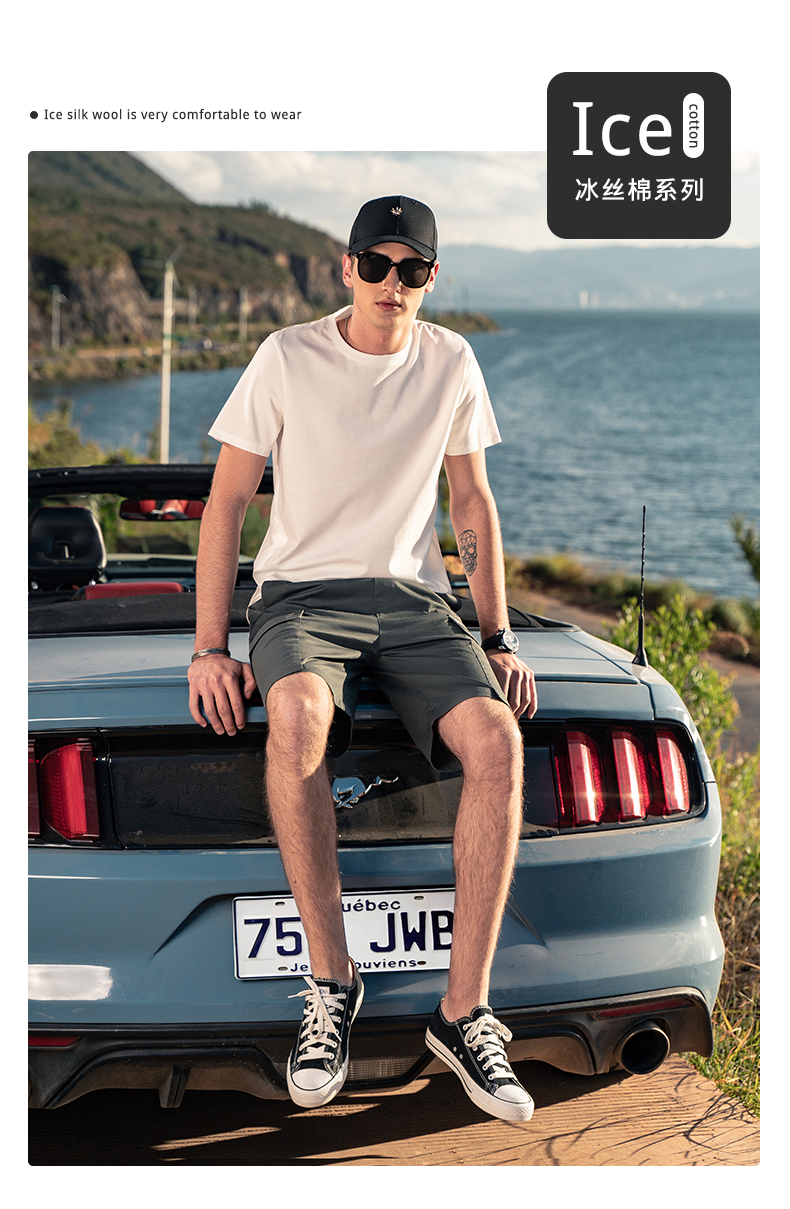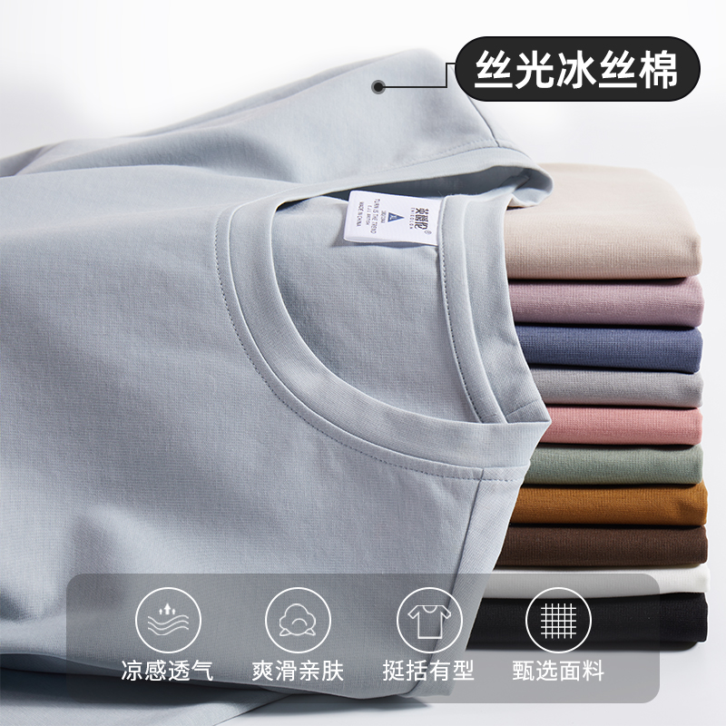 冰絲棉 純色短袖T恤男款白色涼感半袖夏季衣服男士T恤純白打底衫