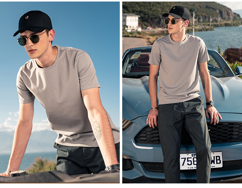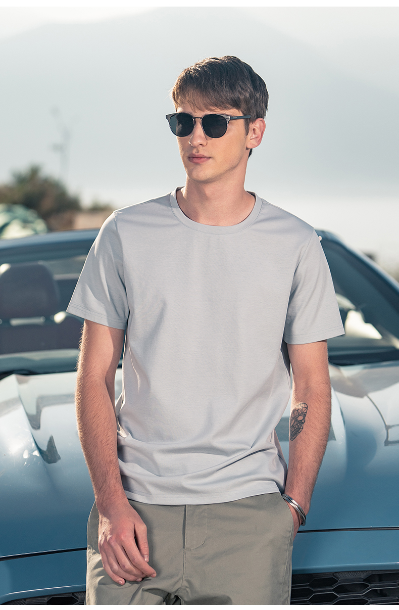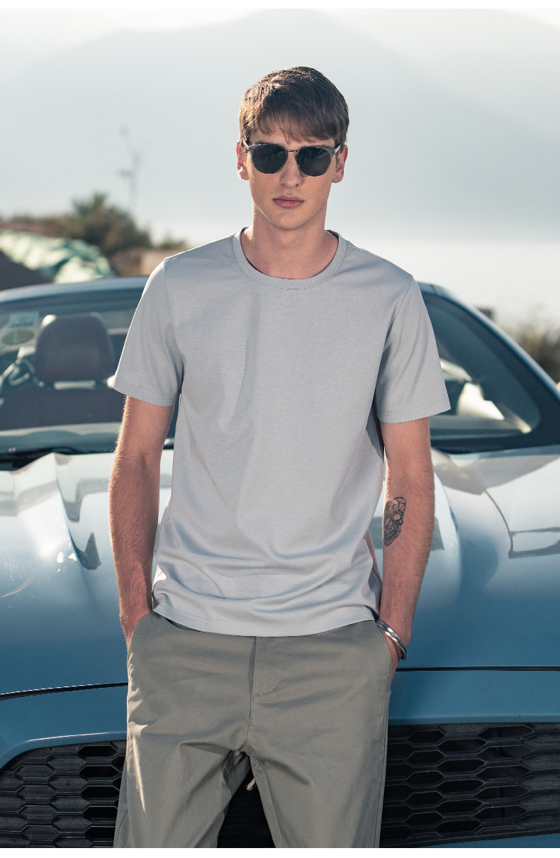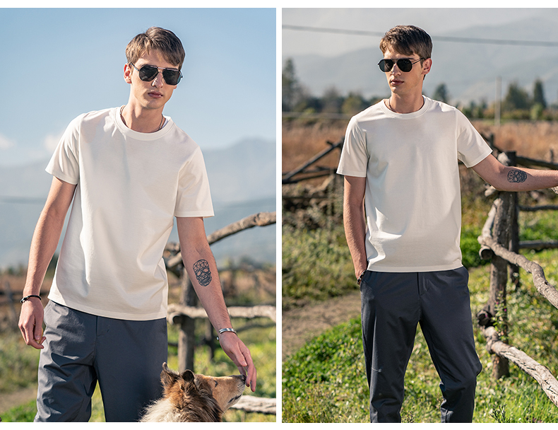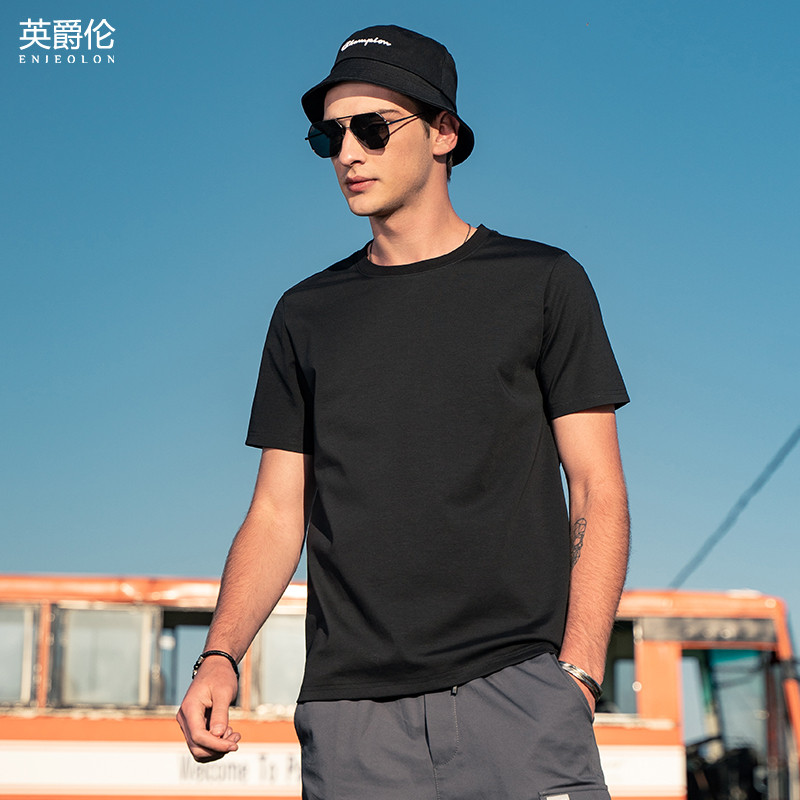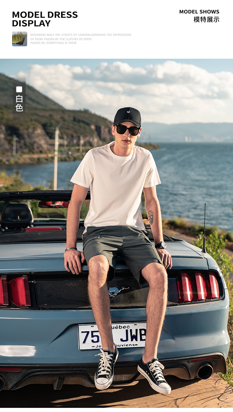 冰絲棉 純色短袖T恤男款白色涼感半袖夏季衣服男士T恤純白打底衫