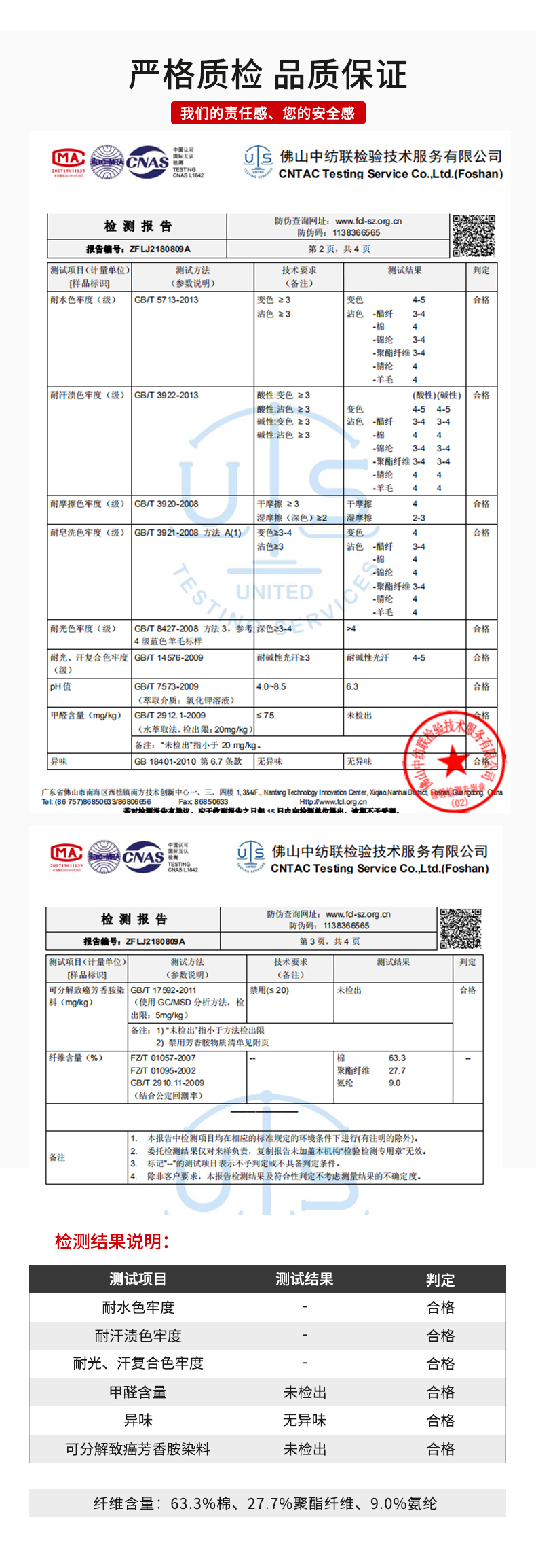 材質成分 棉62.3% 聚酯纖維29.4% 聚氨酯彈性纖維(氨綸)8.3%