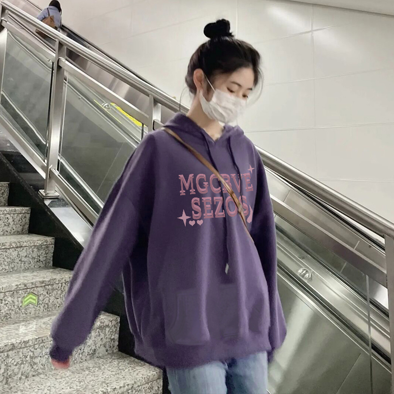 美式復古連帽香芋紫色蝴蝶結衛衣加絨女春秋oversize潮牌甜酷上衣