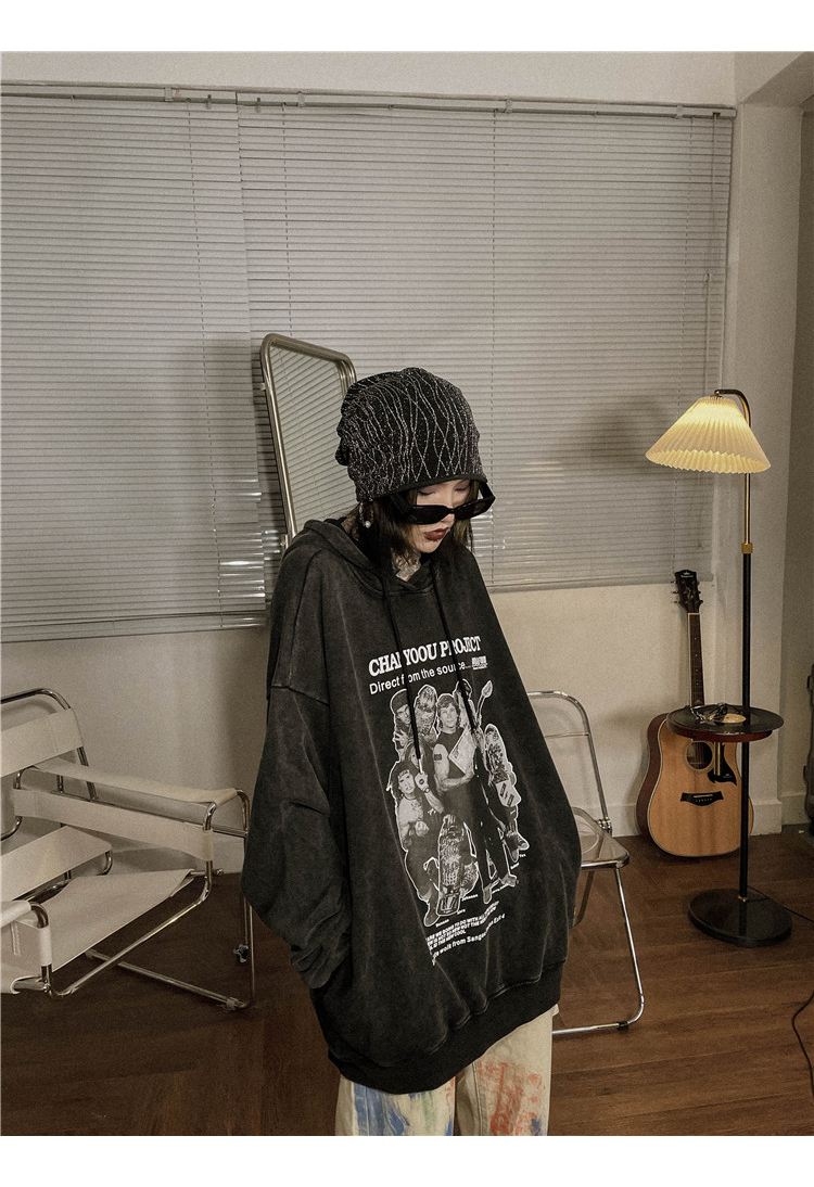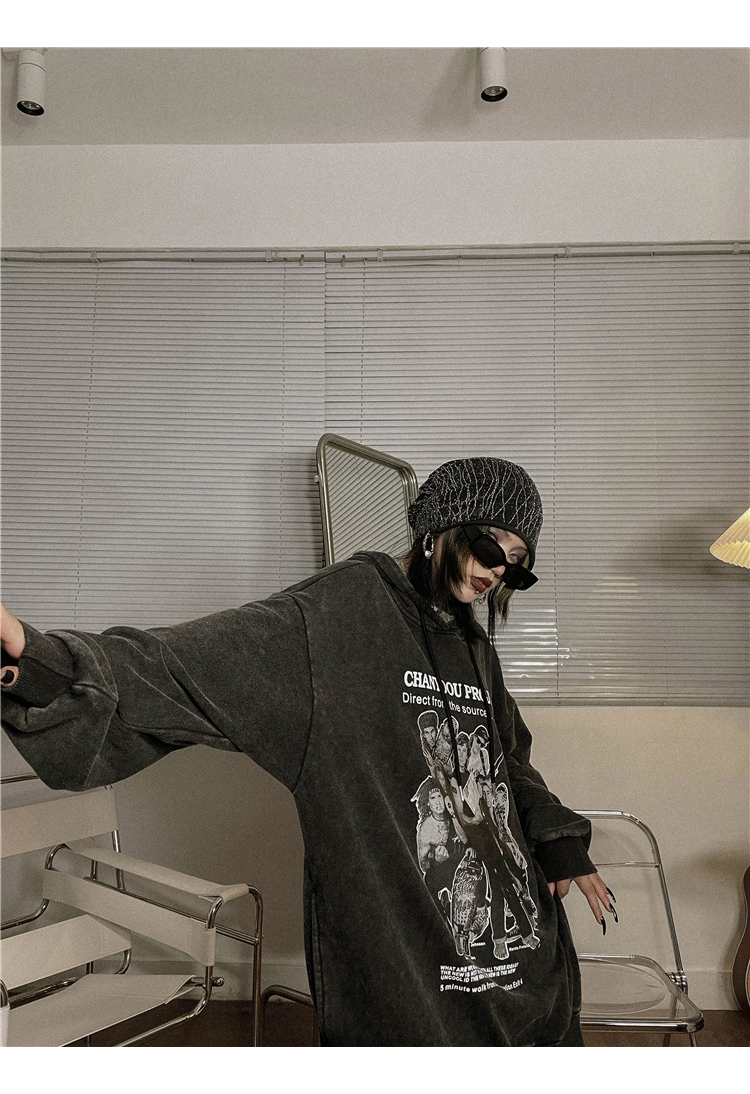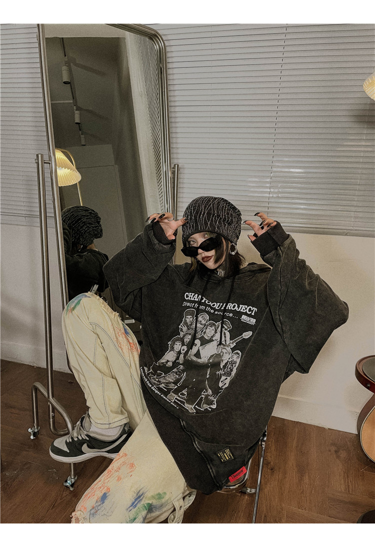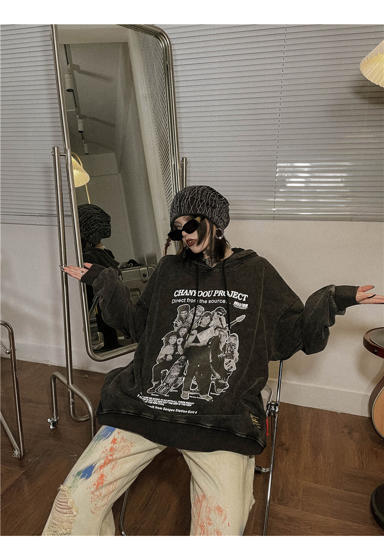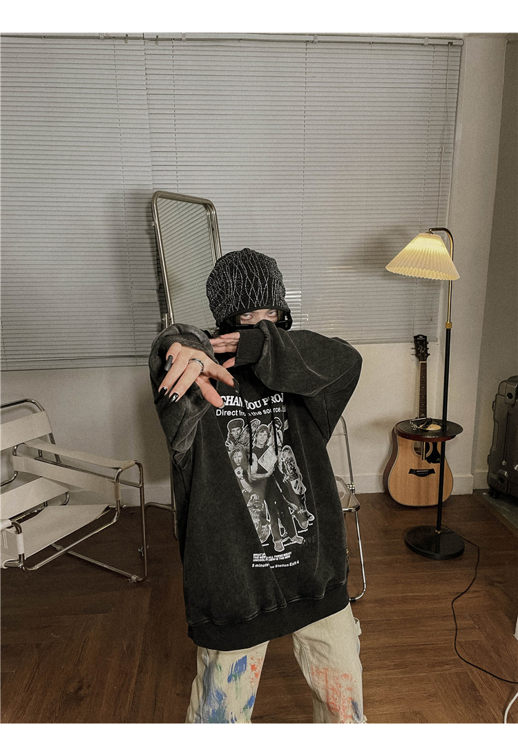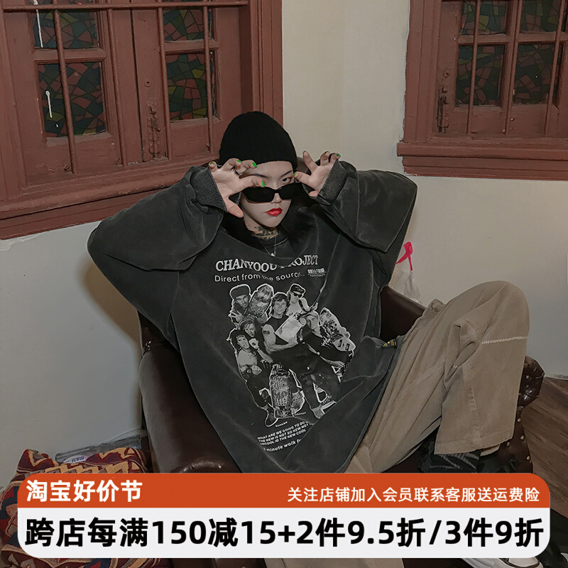 migu美式復古圓領無性別衛衣oversize小眾慵懶風男女加絨寬鬆連帽