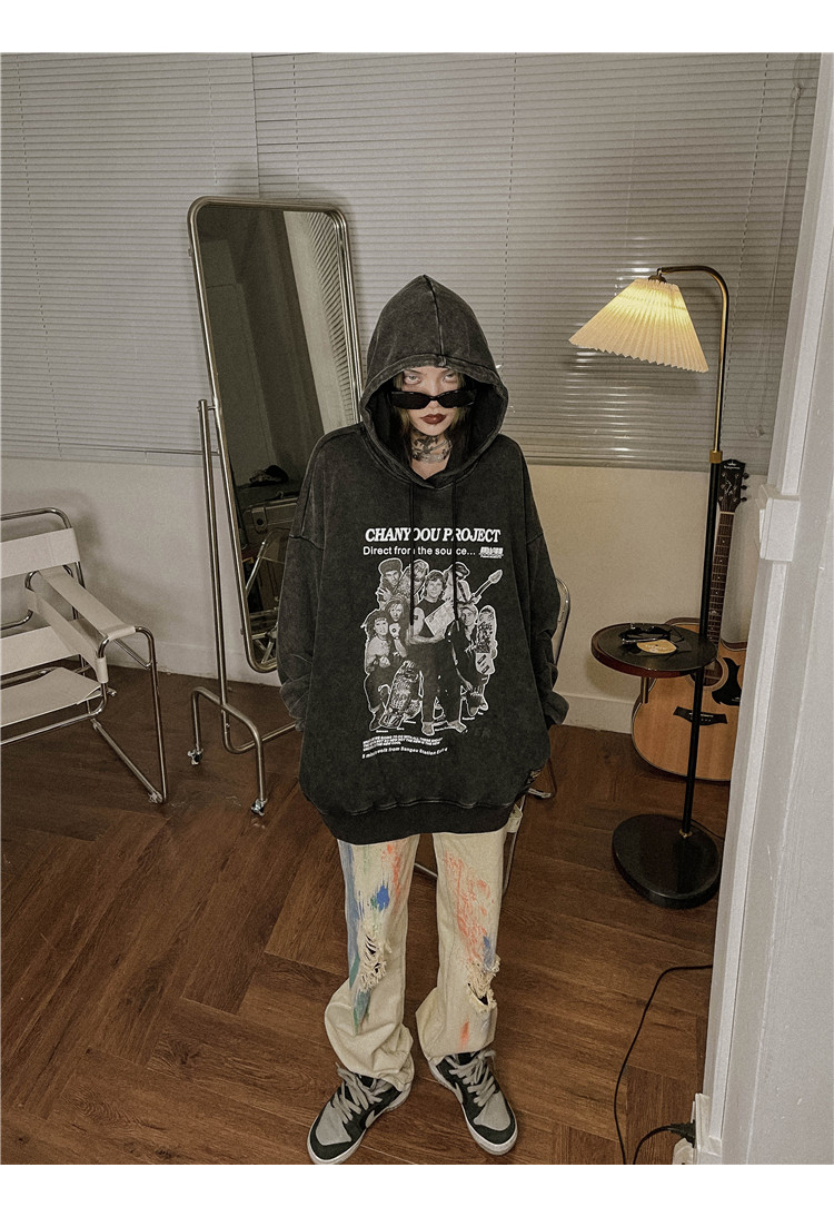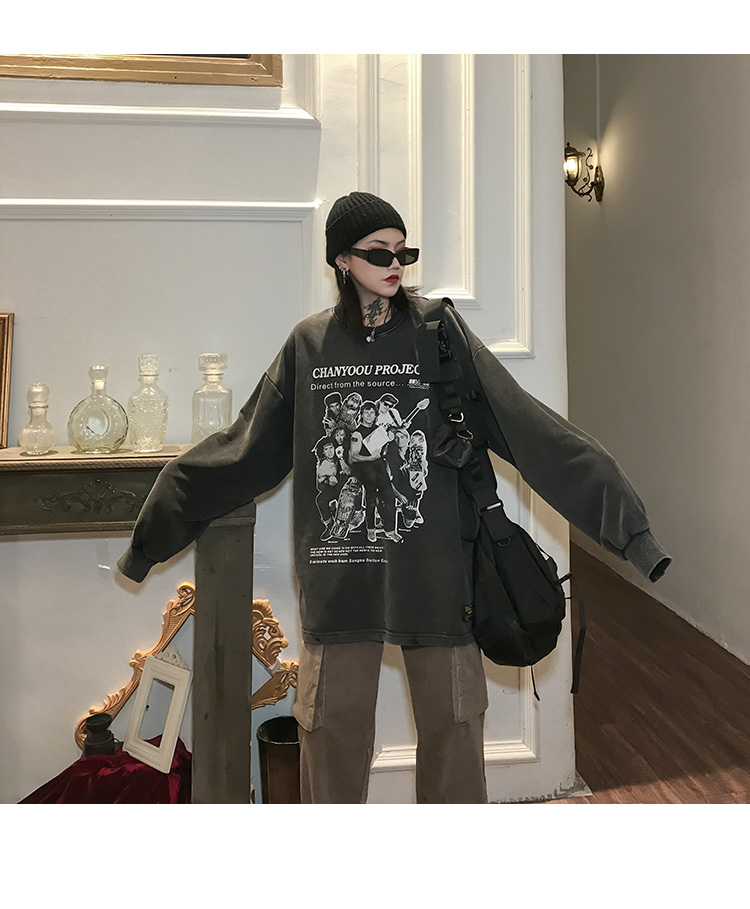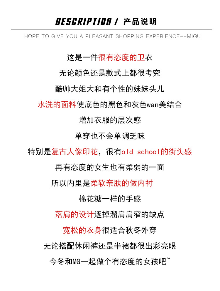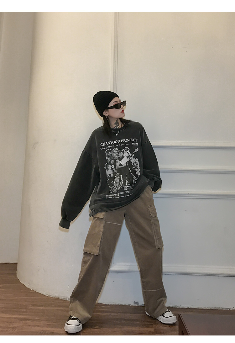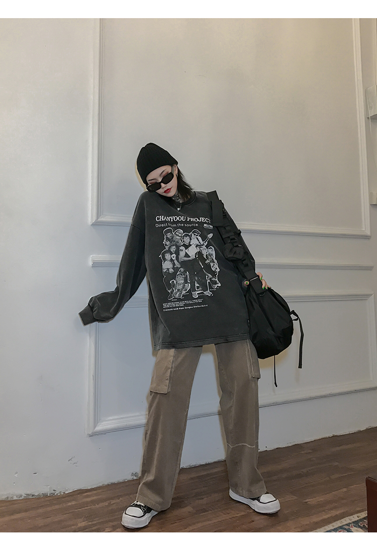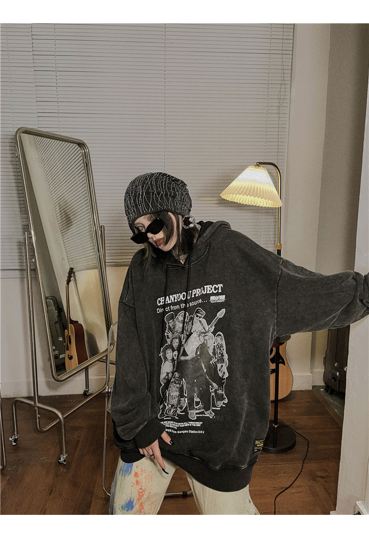 migu美式復古圓領無性別衛衣oversize小眾慵懶風男女加絨寬鬆連帽