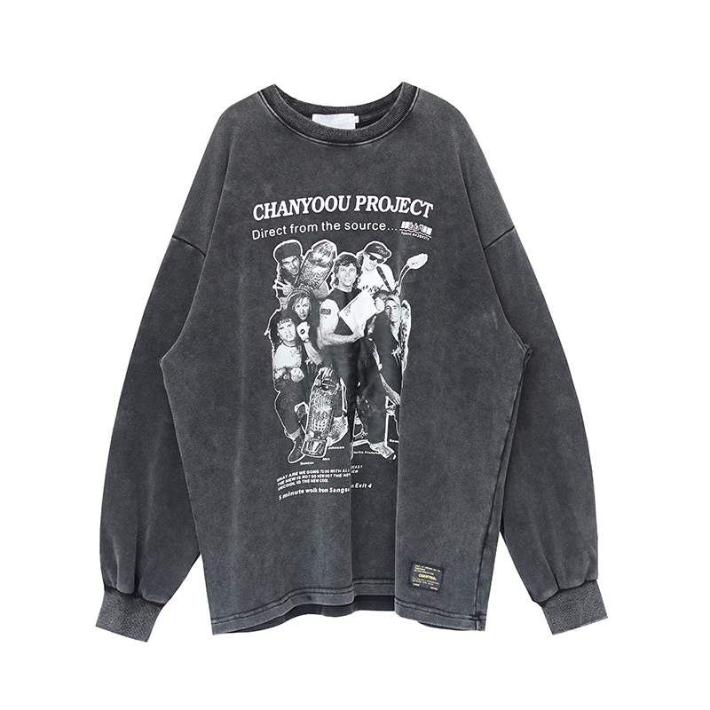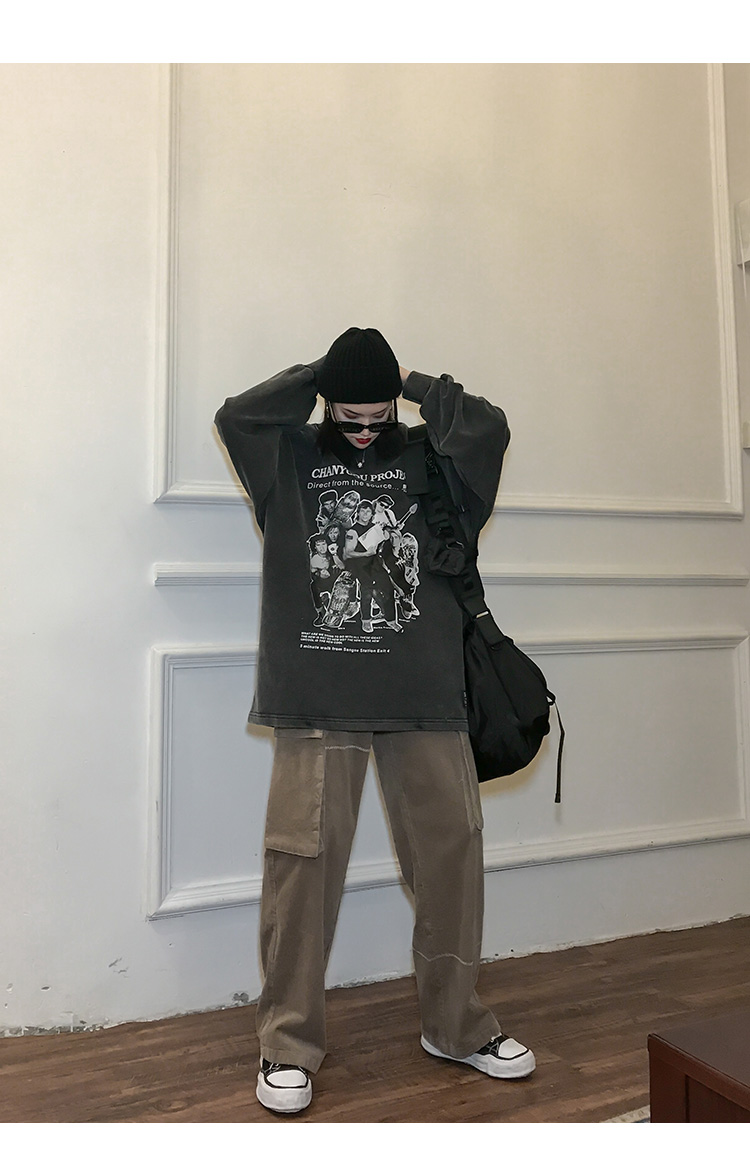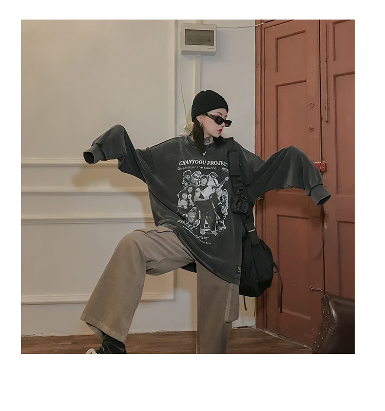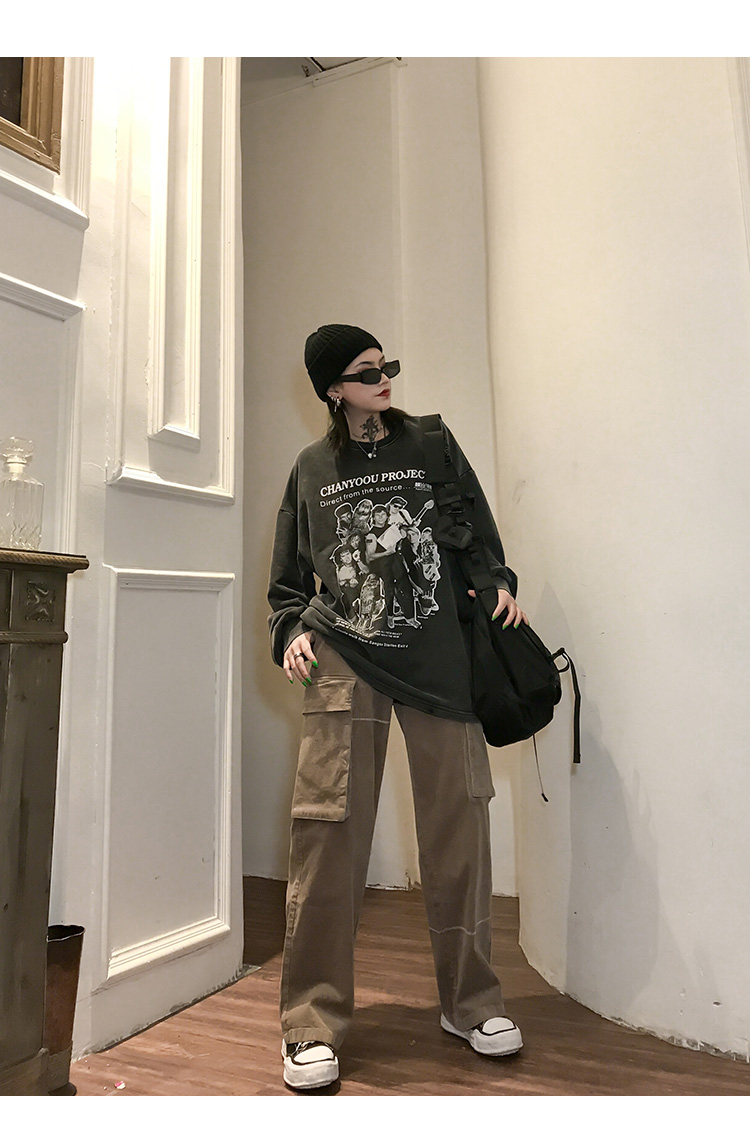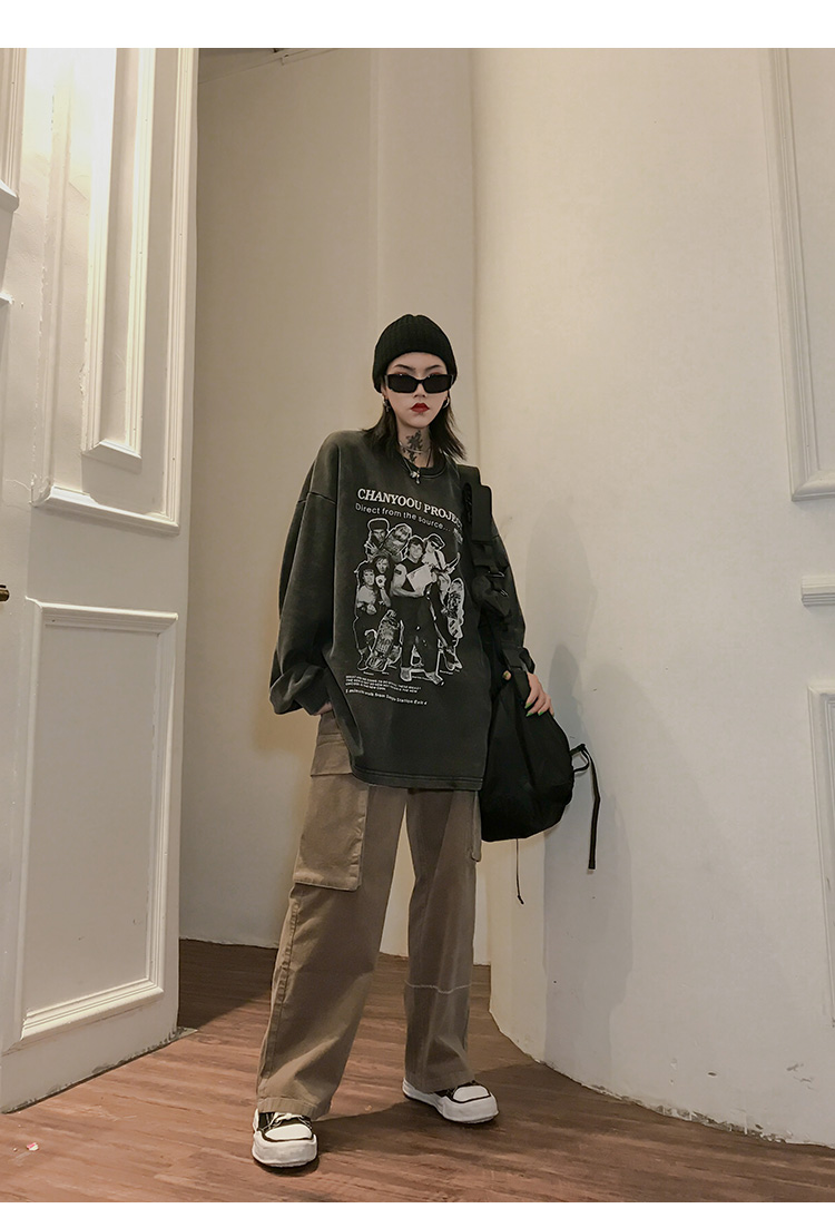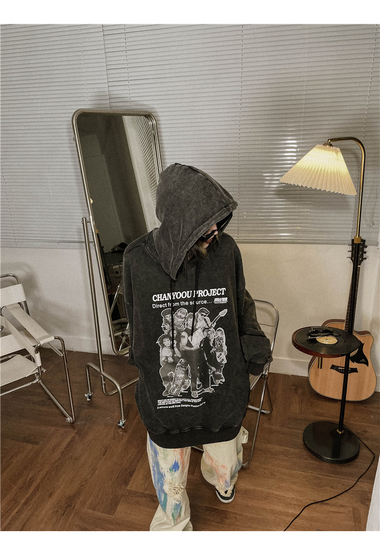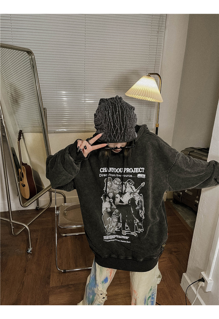 migu美式復古圓領無性別衛衣oversize小眾慵懶風男女加絨寬鬆連帽