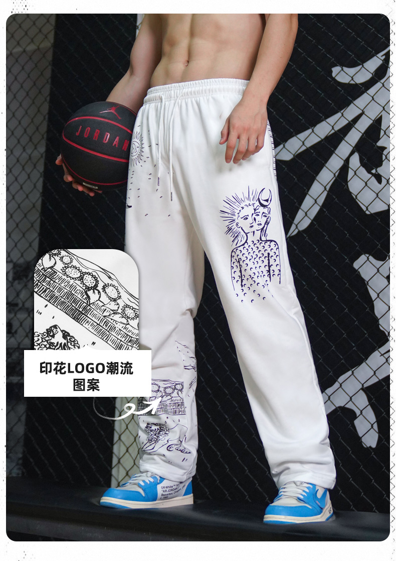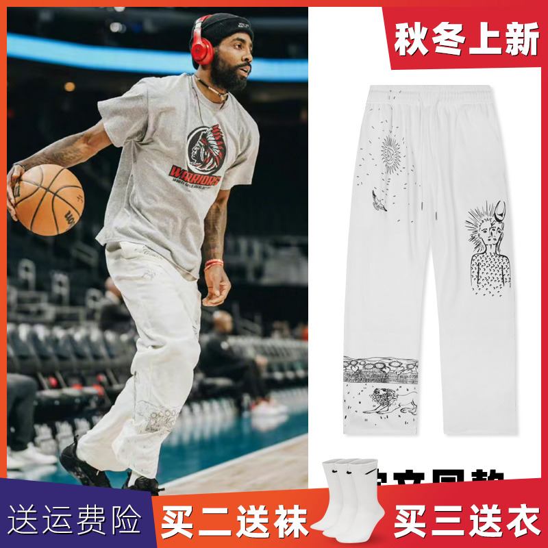 herkaiandi歐文個人品牌印第安納風美式籃球長褲秋季直筒運動厚棉褲