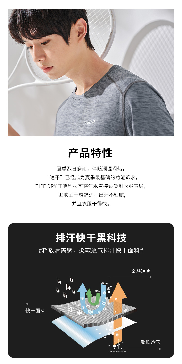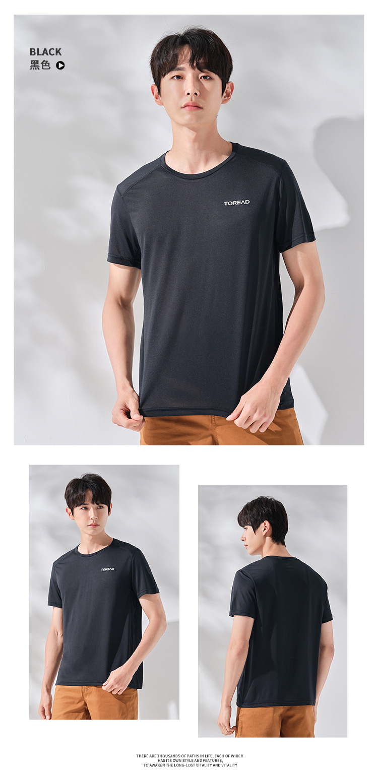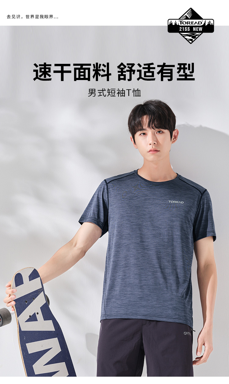 探路者速乾T恤男短袖夏季戶外男士運動速乾T恤快乾透氣寬鬆速乾衣