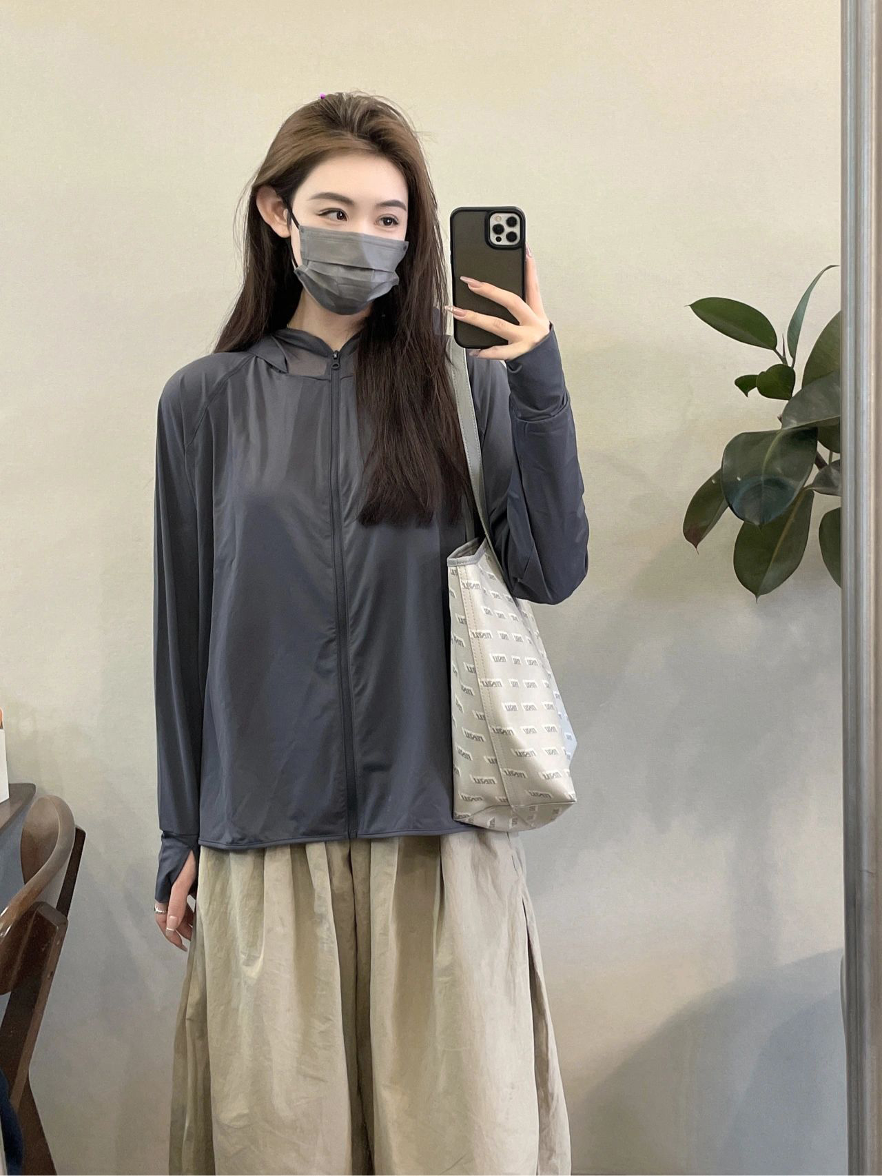 冰絲開衫防曬衣女款夏2023新款寬鬆薄外套透氣涼感抗UV防曬服