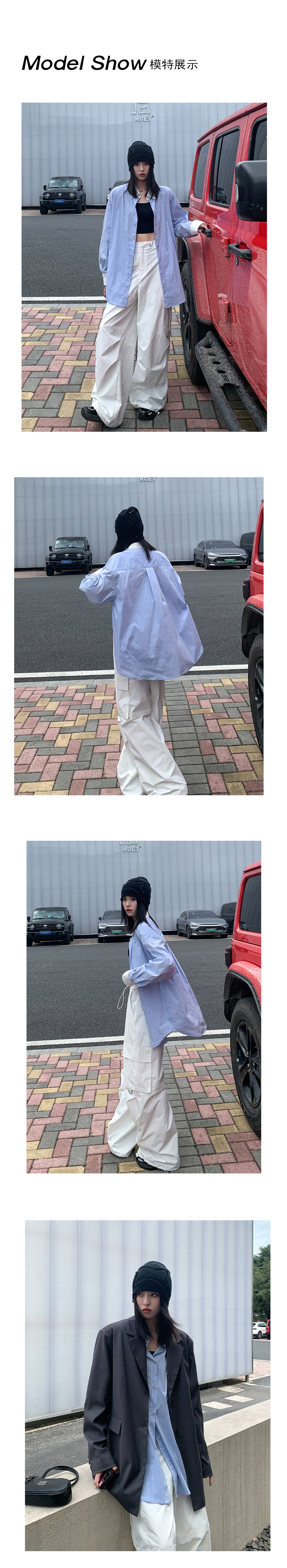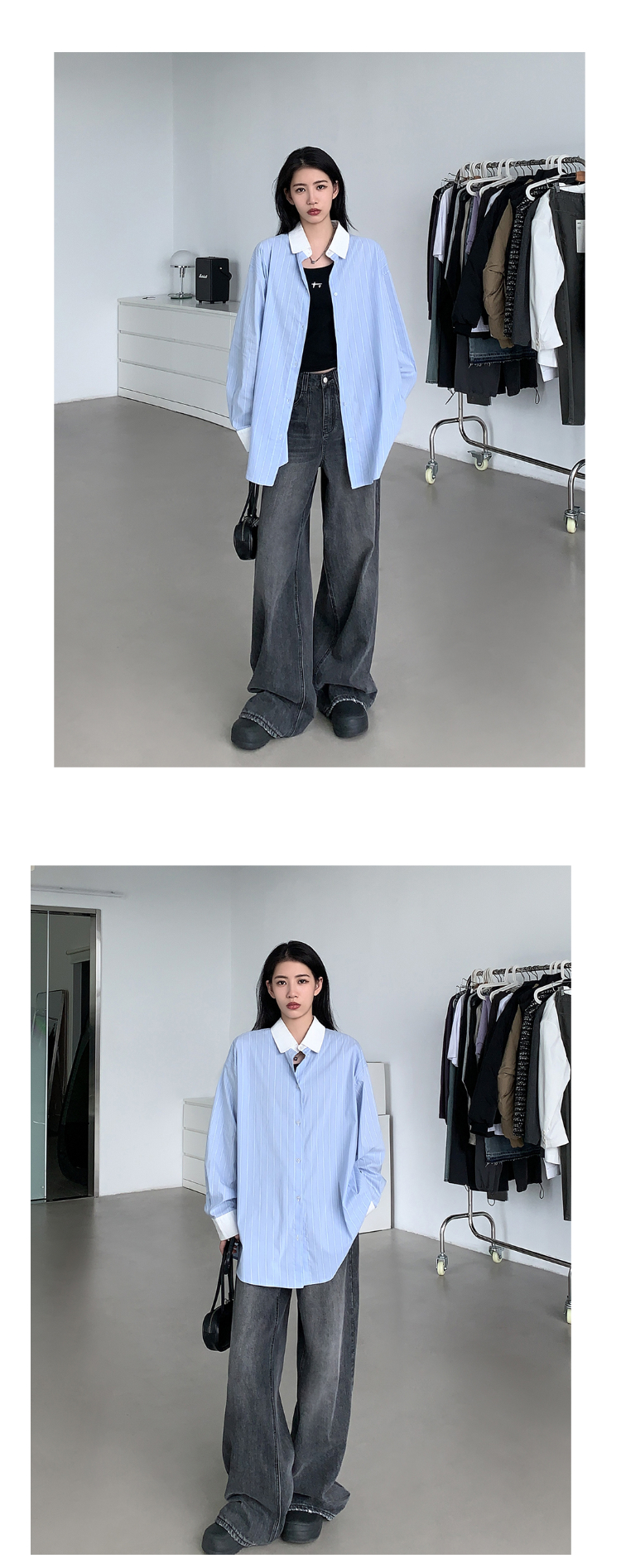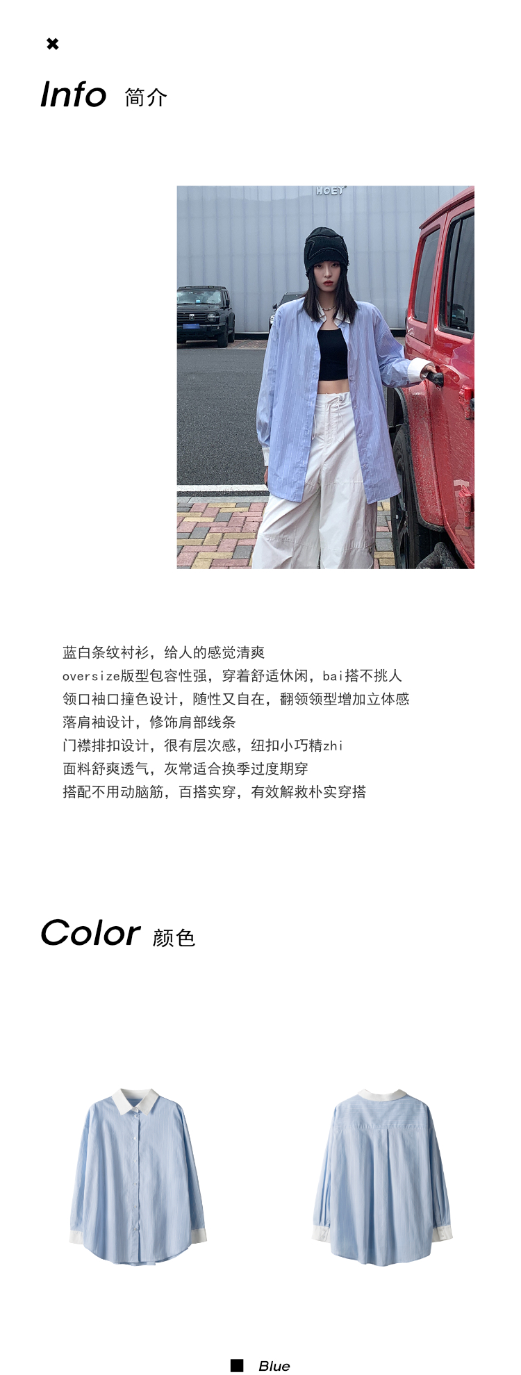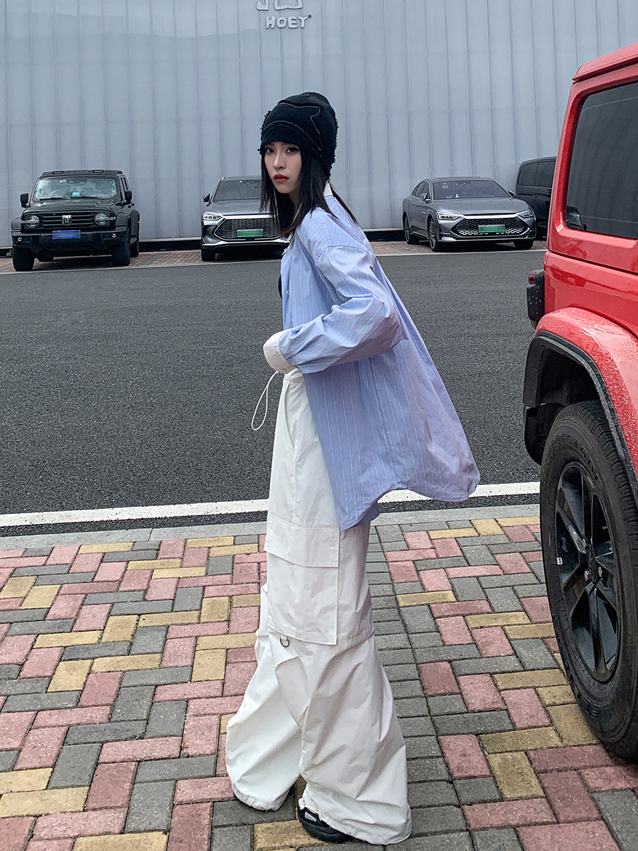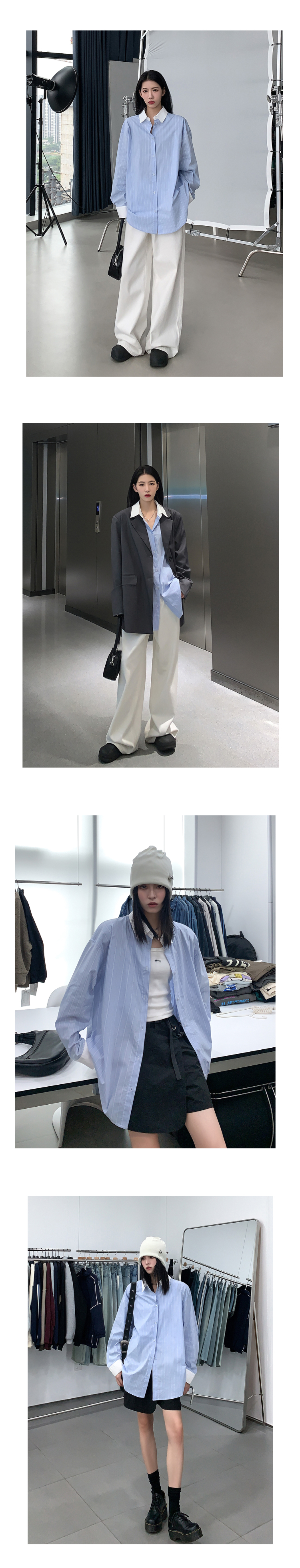SIXI四喜家秋季 有腔調的撞色領條紋襯衫女慵懶內搭疊穿長袖襯衫
