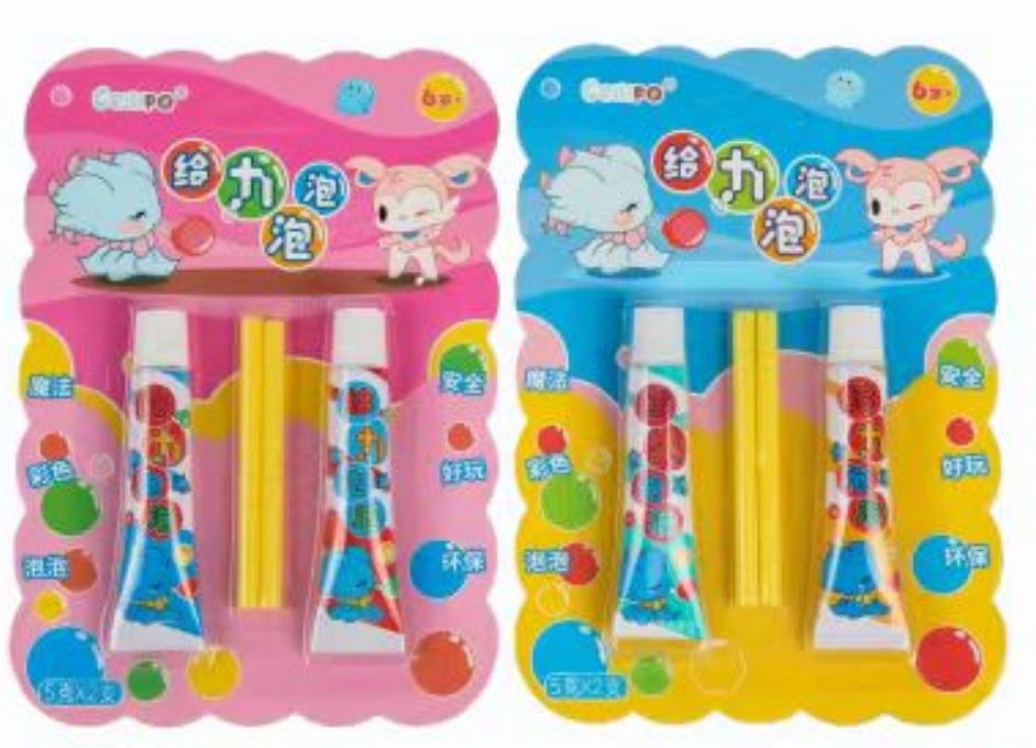 颜色 9克散装(颜色随机),5克2支吸卡装(颜色随机),5克3支吸卡装(颜色随机),10克1支+2支泡泡水吸卡装,7克20支桶装(颜色随机)