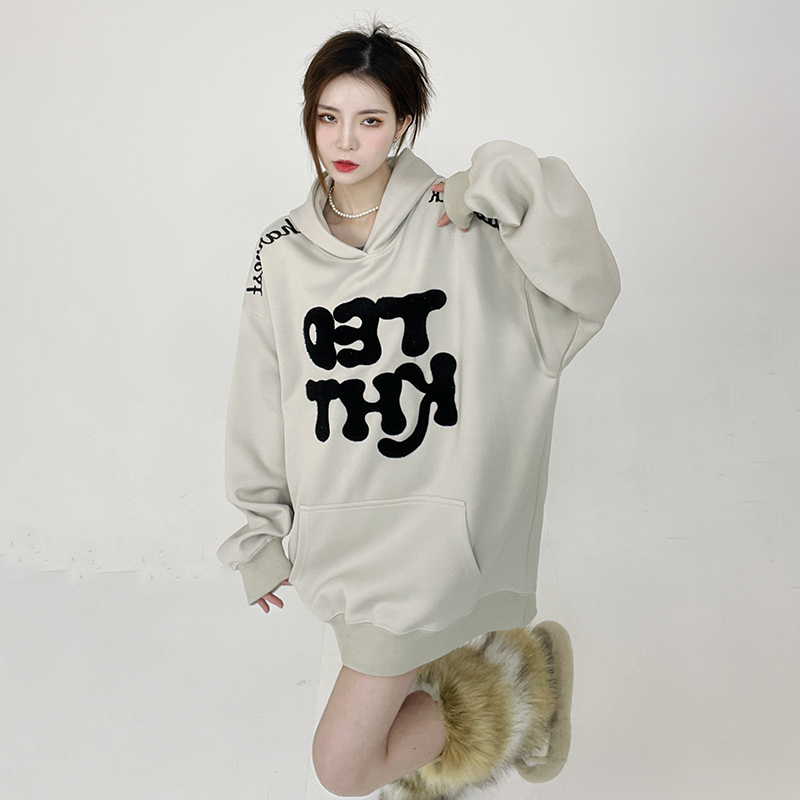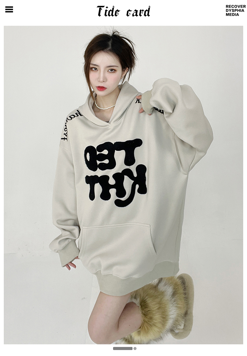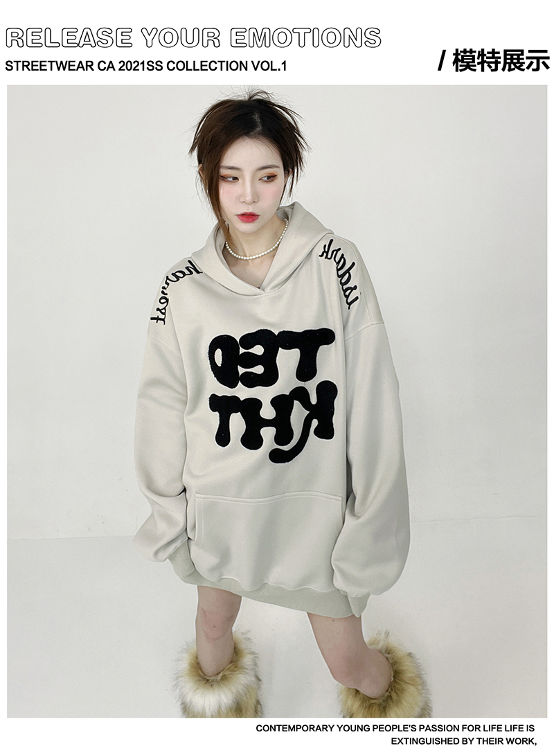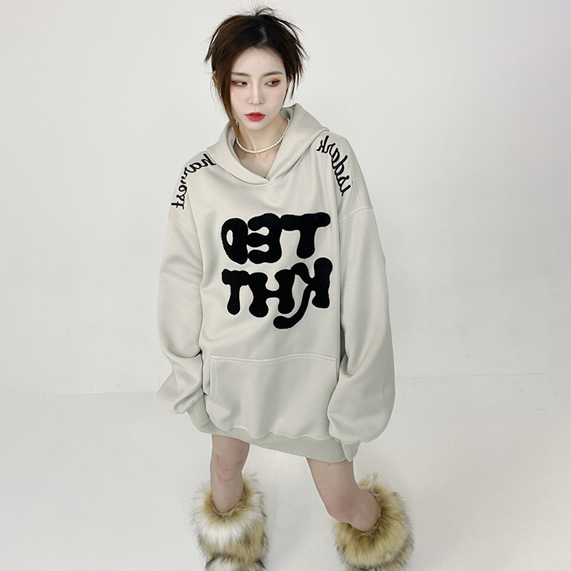 姝姬2023年春秋vintage美式復古加絨連帽運動衫開衫女oversize外套