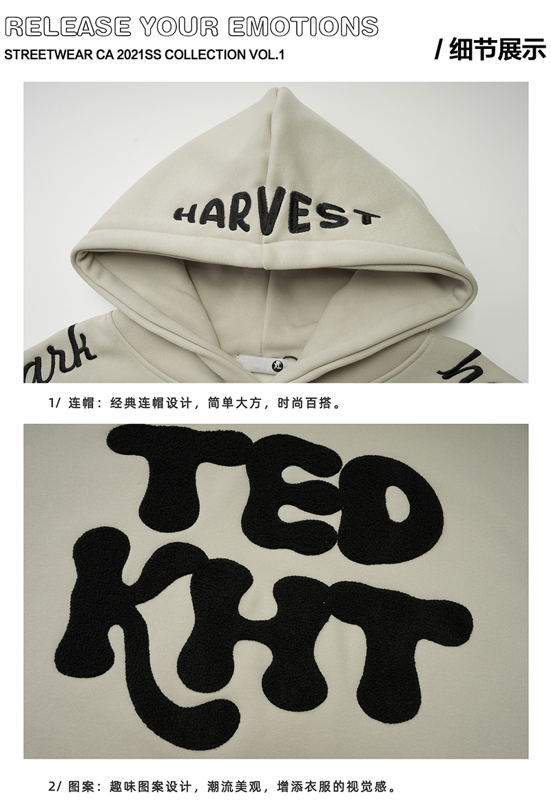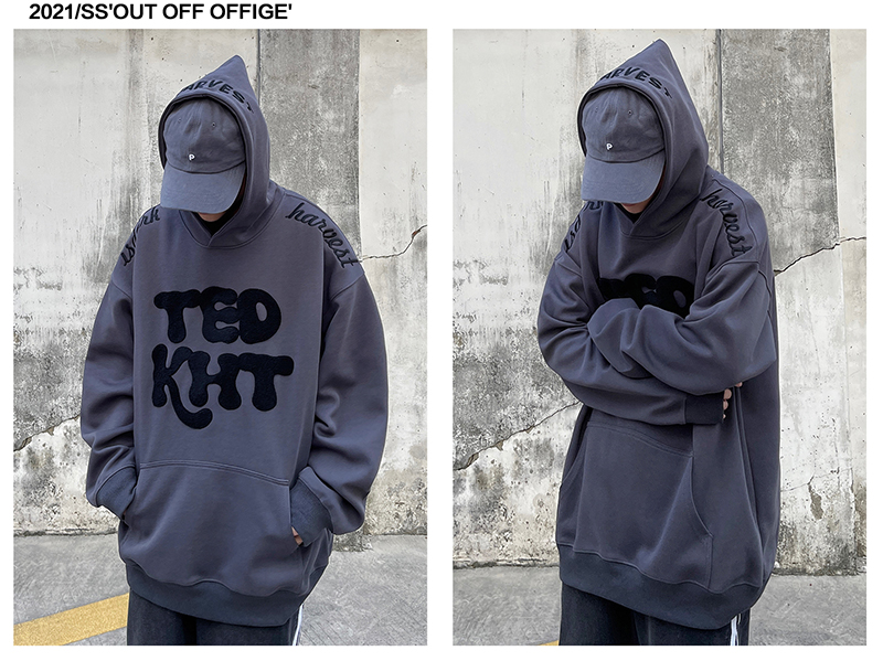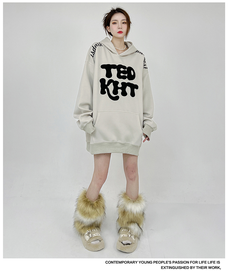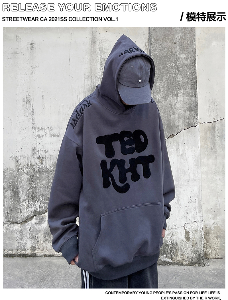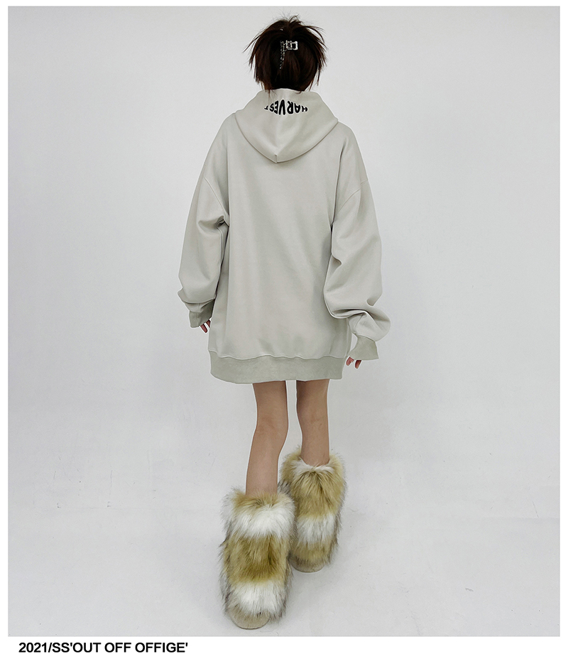 姝姬2023年春秋vintage美式復古加絨連帽運動衫開衫女oversize外套