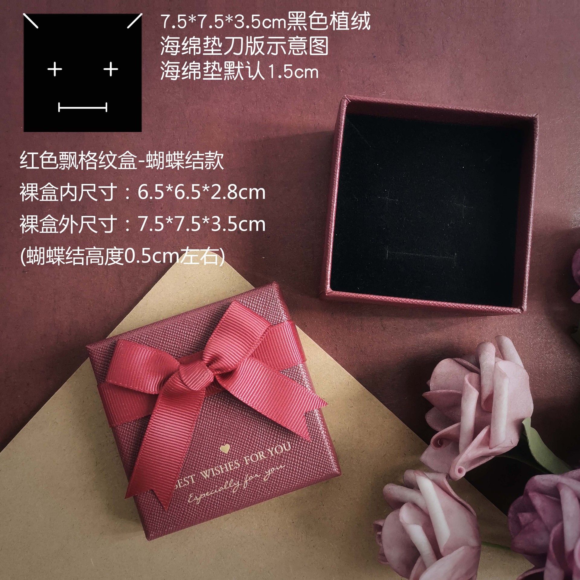 颜色 7.5*7.5*3.5红色-蝴蝶结款,7.5*7.5*3.5红色-礼结款,9.5*9.5*3.5红色-蝴蝶结款,10*10*3.5红色-蝴蝶结款,10*10*3.5红色-光面烫金款,9cm防氧化pe包装盒 可搭配10*10的盒子,11*6*13光面红色小竖袋无印花,贴纸1张8枚,定制logo联系客服