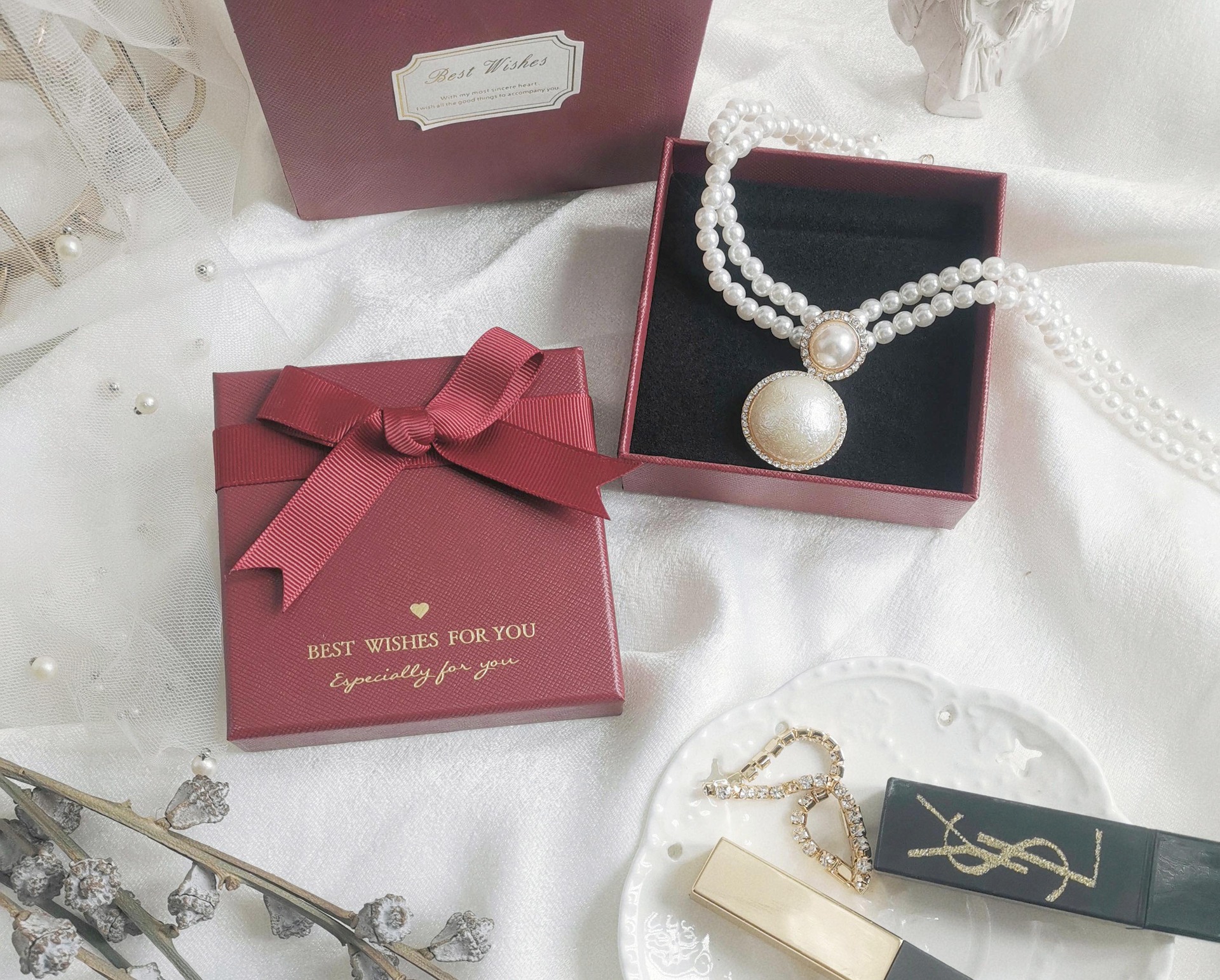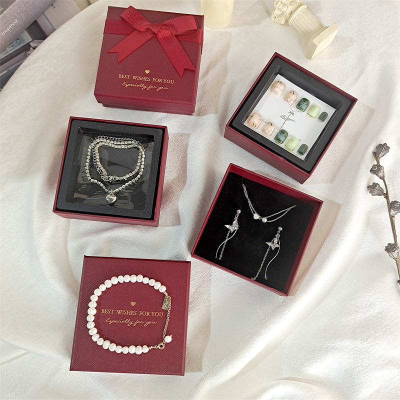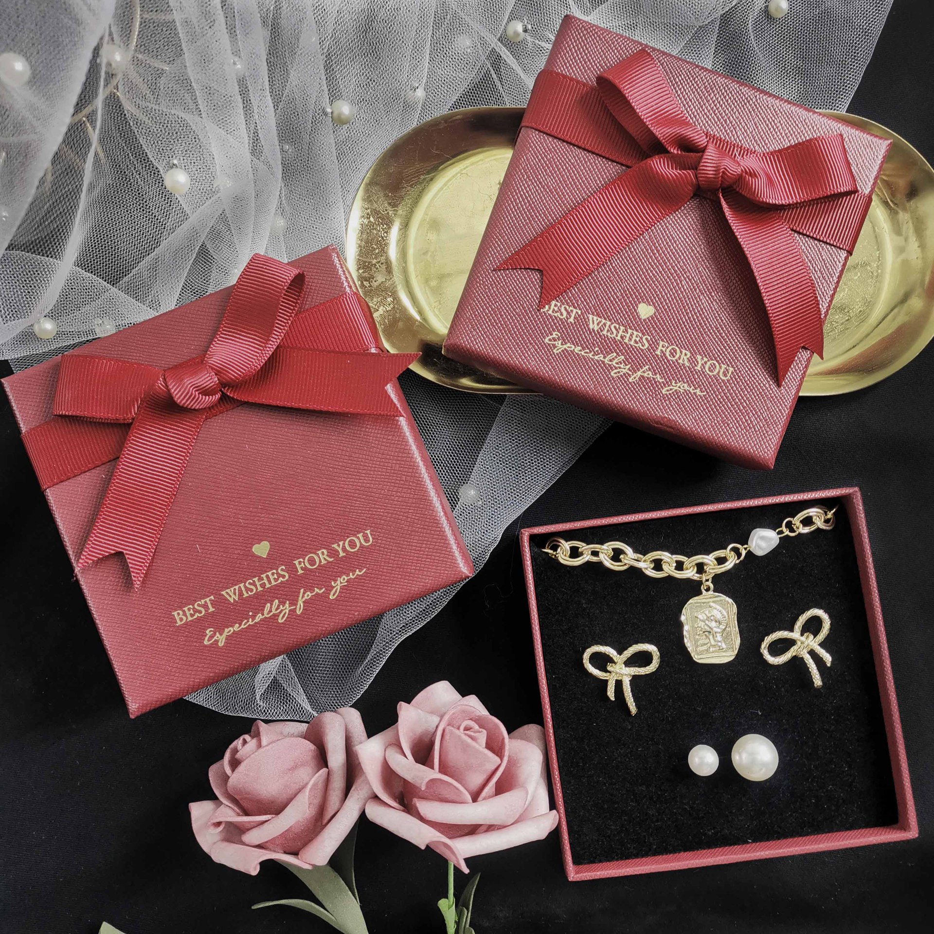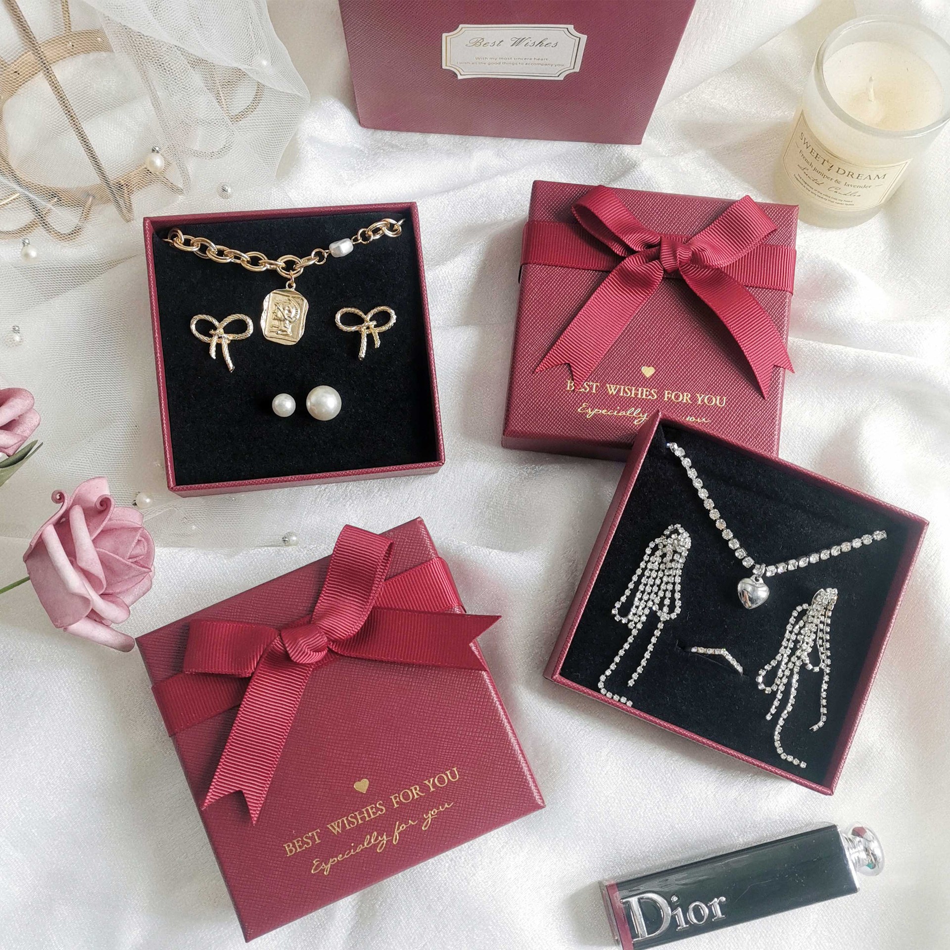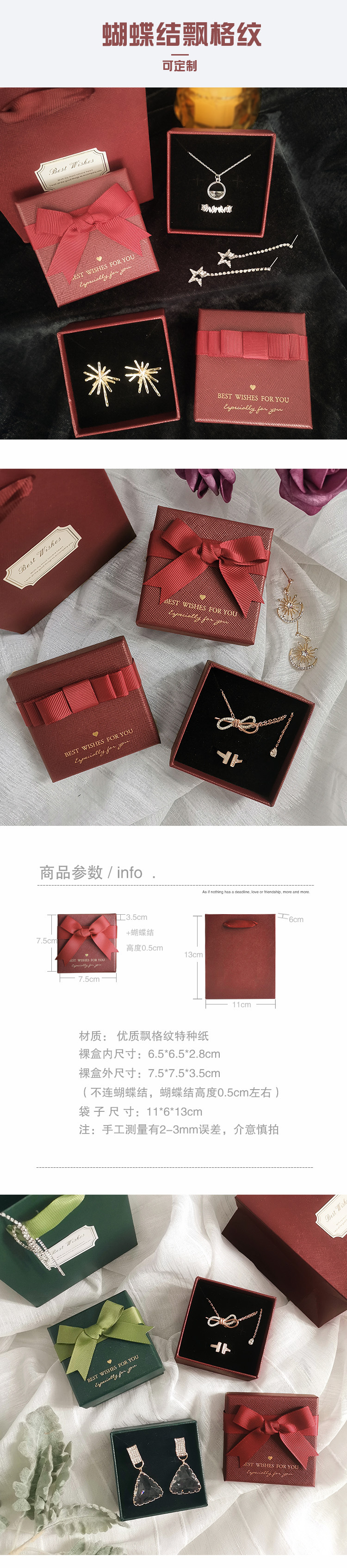 现货品质酒红蝴蝶结首饰盒项链戒指盒创意款饰品手链包装盒耳饰盒