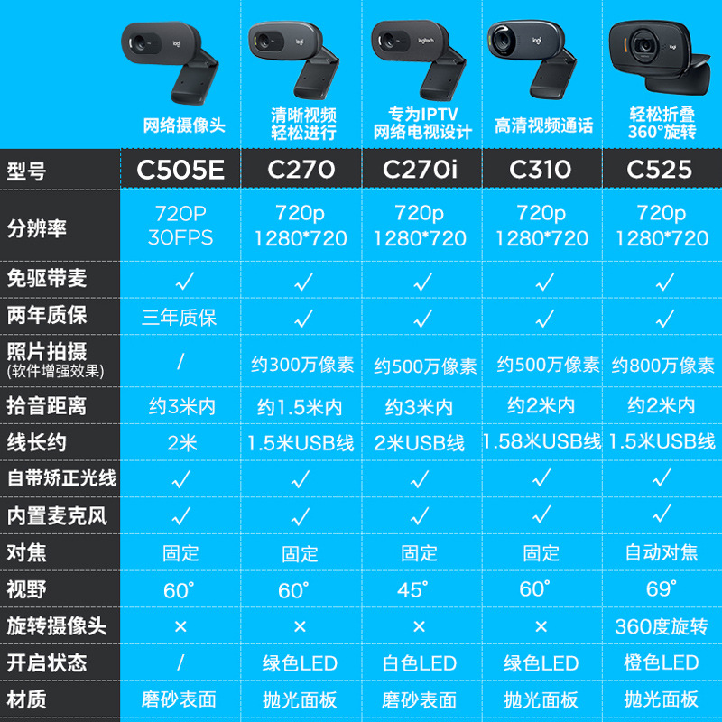 批发罗技C270网络直播USB摄像头会议电脑网课摄像头模组webcam