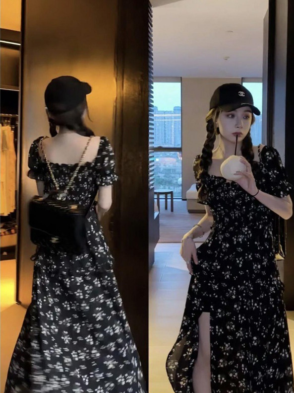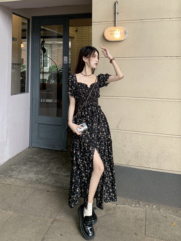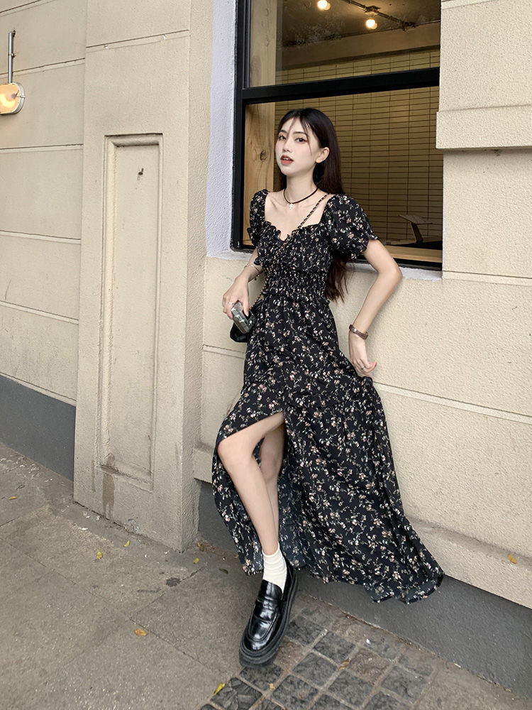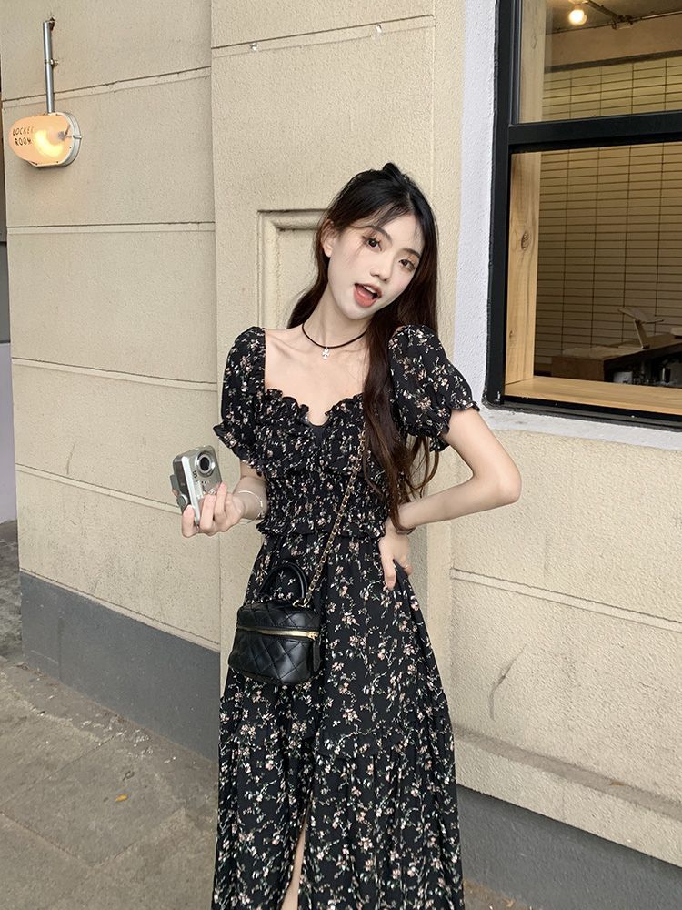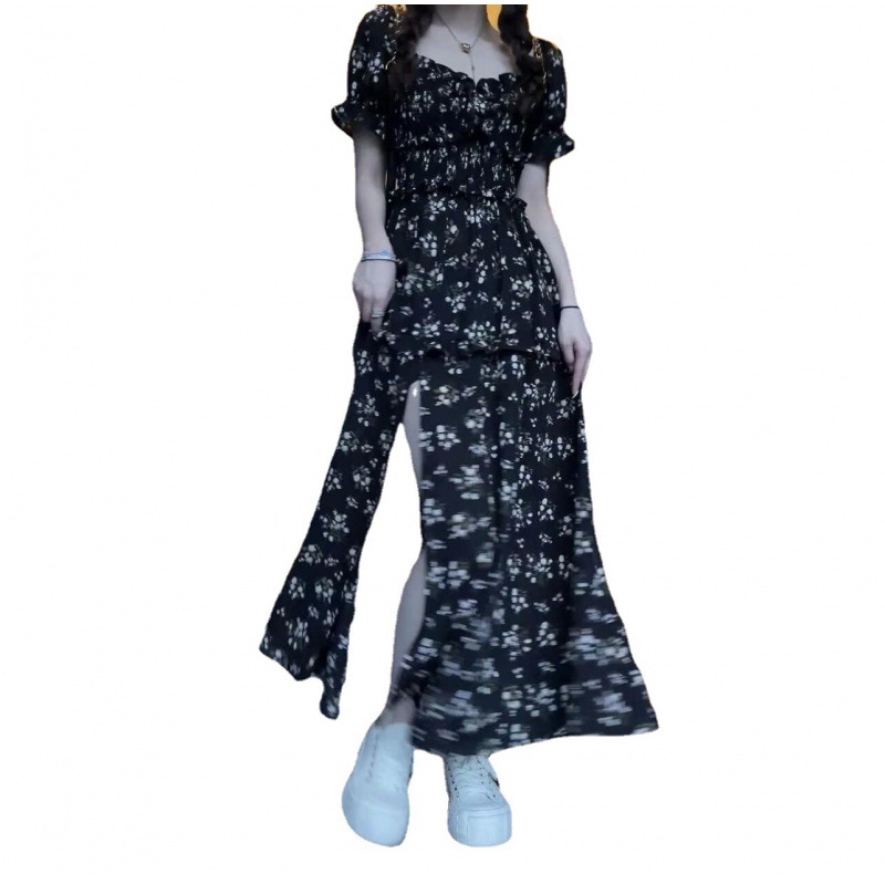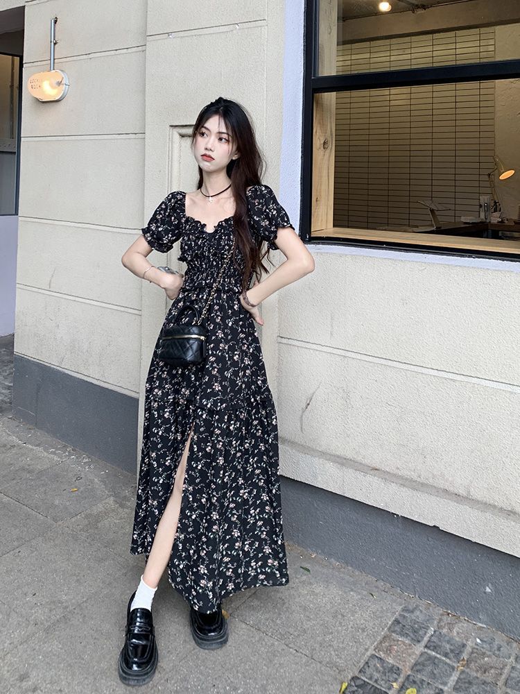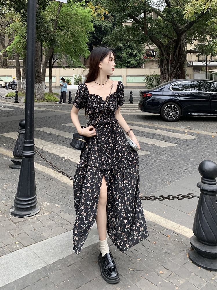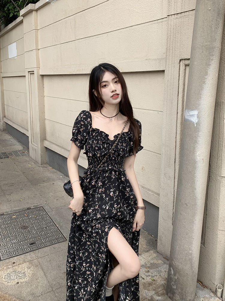 伊莎曼 SS /春天仙女裙收腰显瘦碎花开衩法式连衣裙