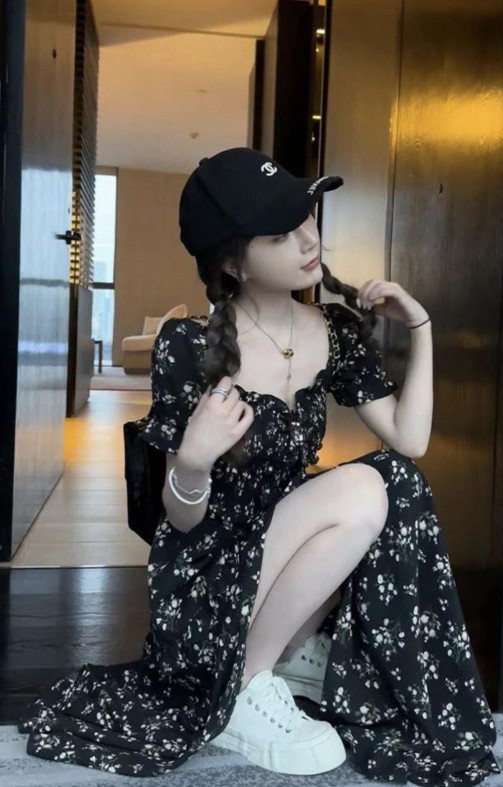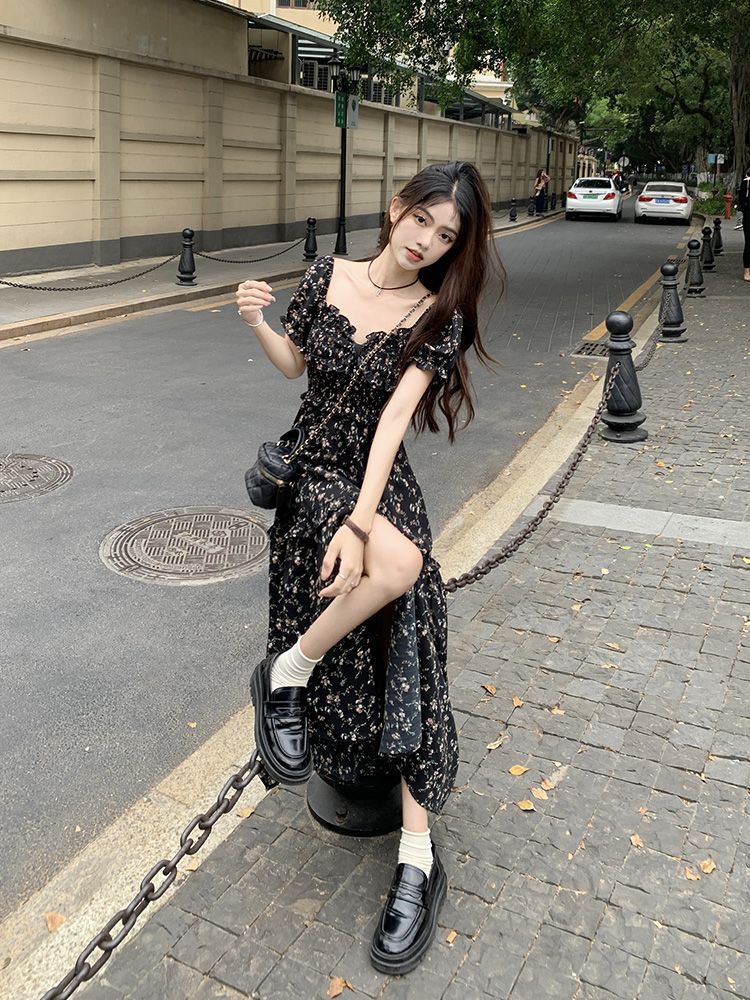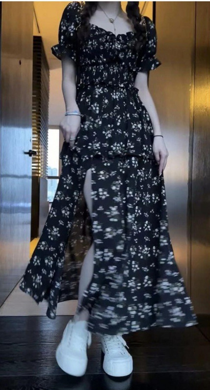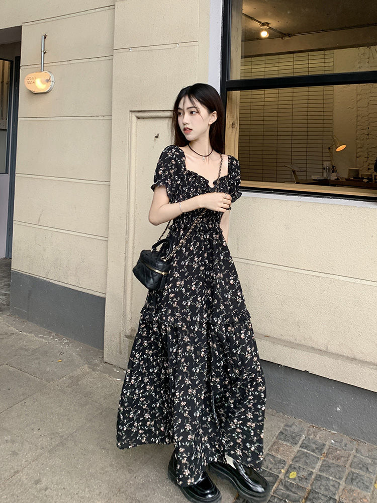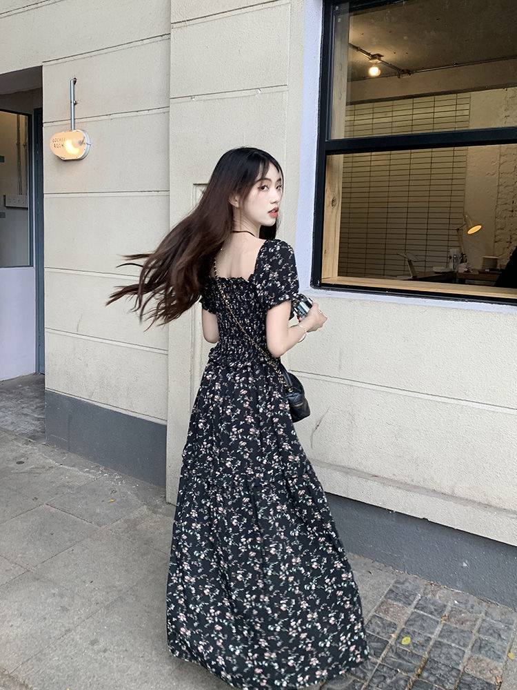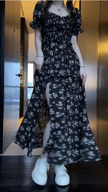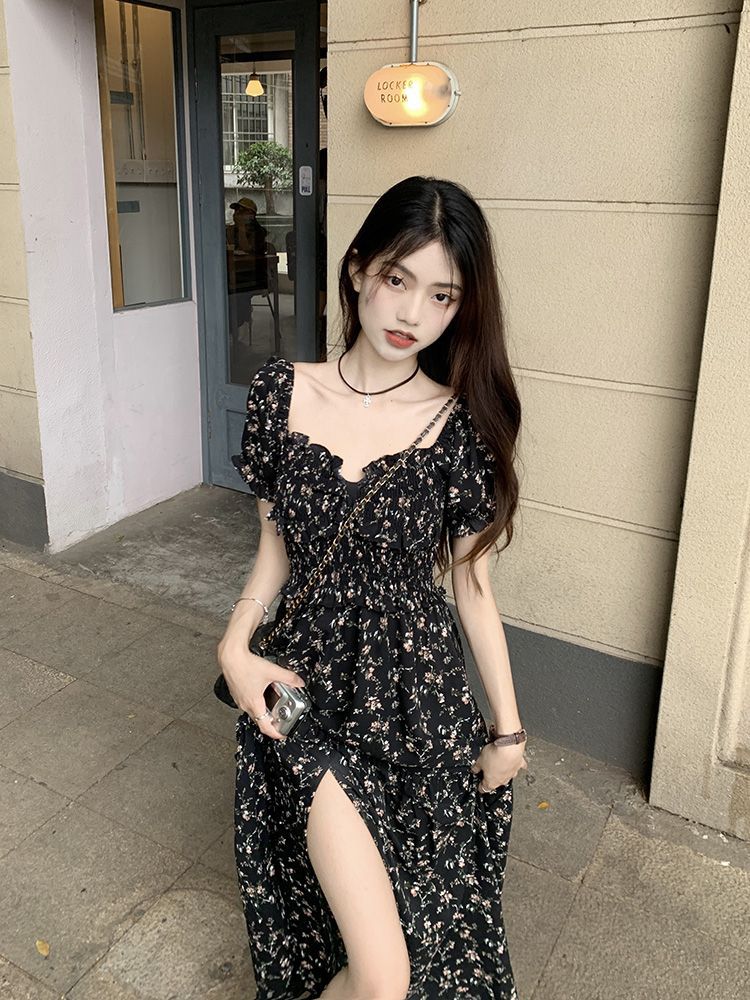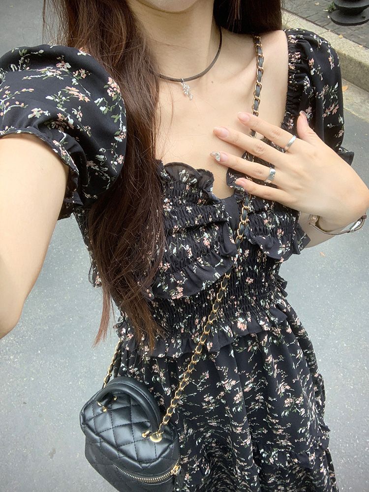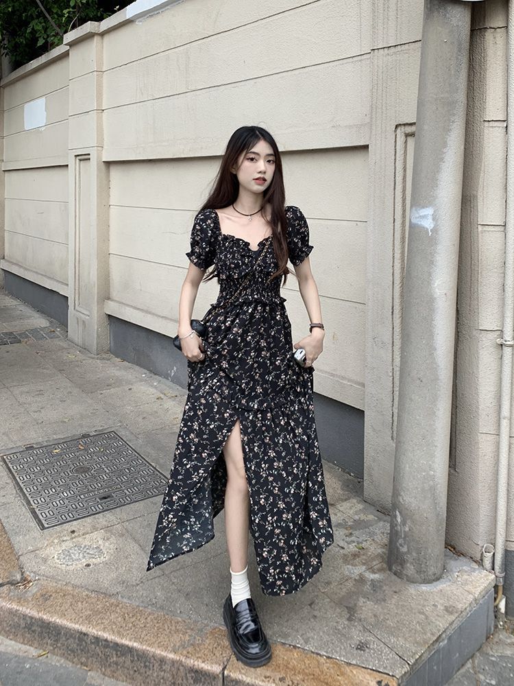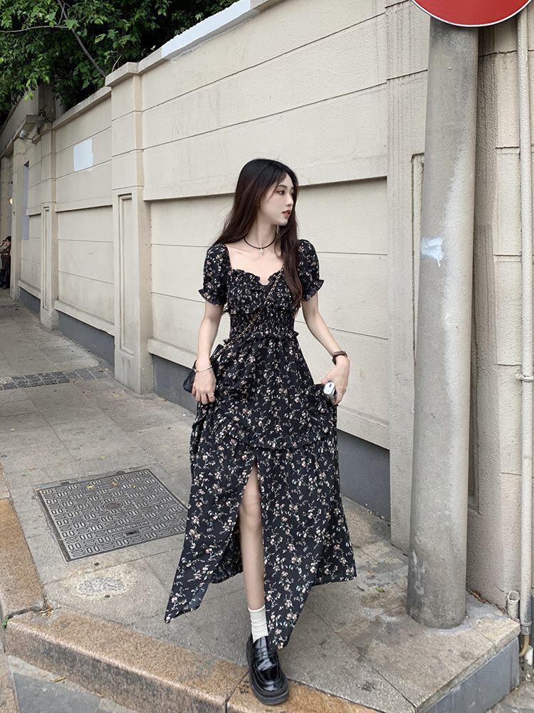 伊莎曼 SS /春天仙女裙收腰显瘦碎花开衩法式连衣裙