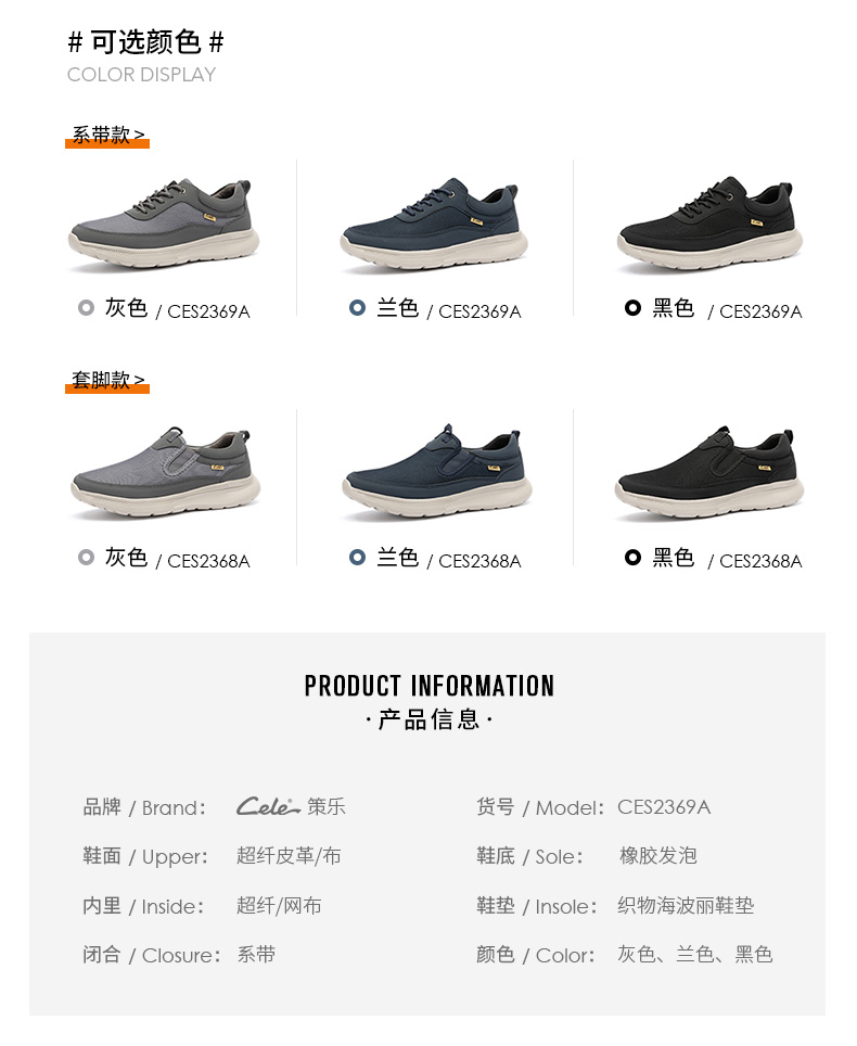 Cele策樂日常運動休閒鞋男鞋秋季透氣戶外軟底舒適出行旅遊跑步鞋