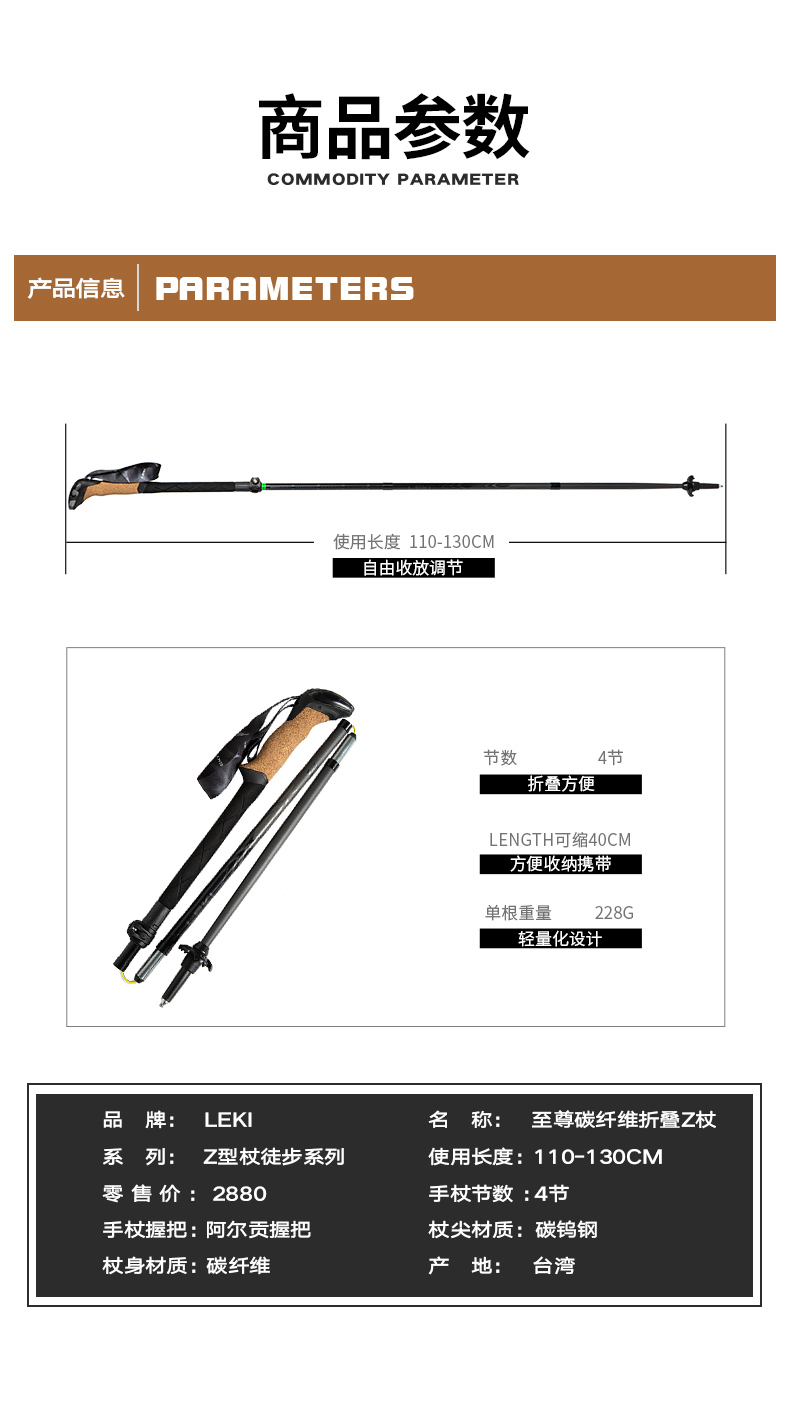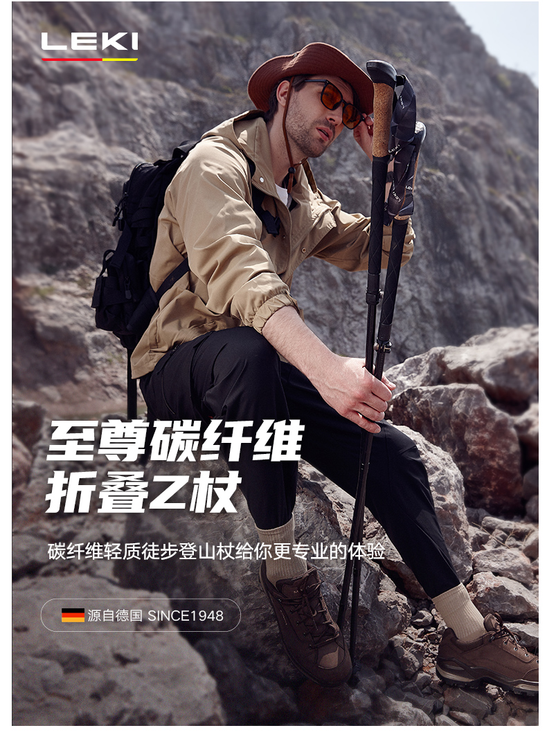 [德國LEKI斷貨款]戶外徒步登山杖超輕伸縮外鎖至尊碳纖維摺疊Z杖