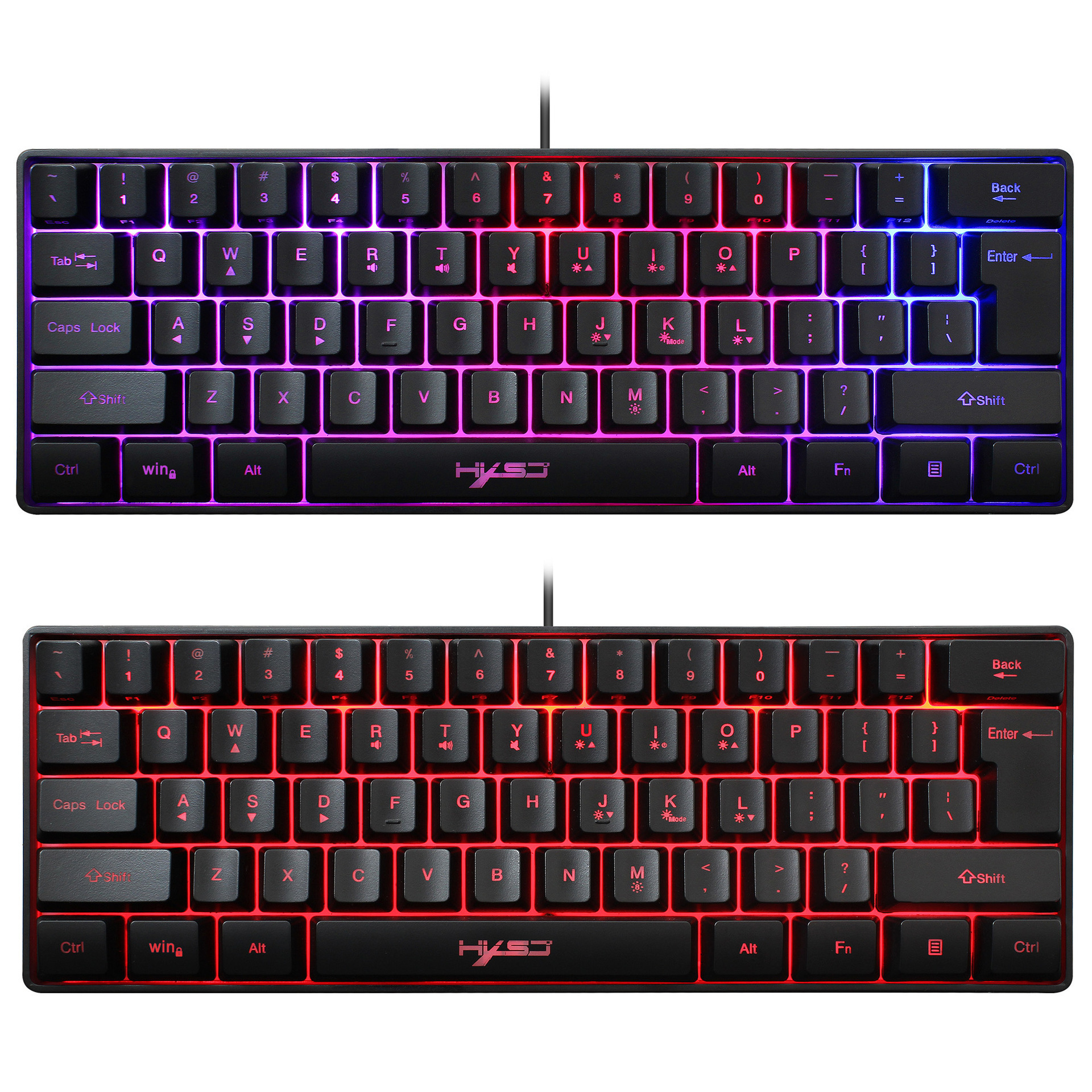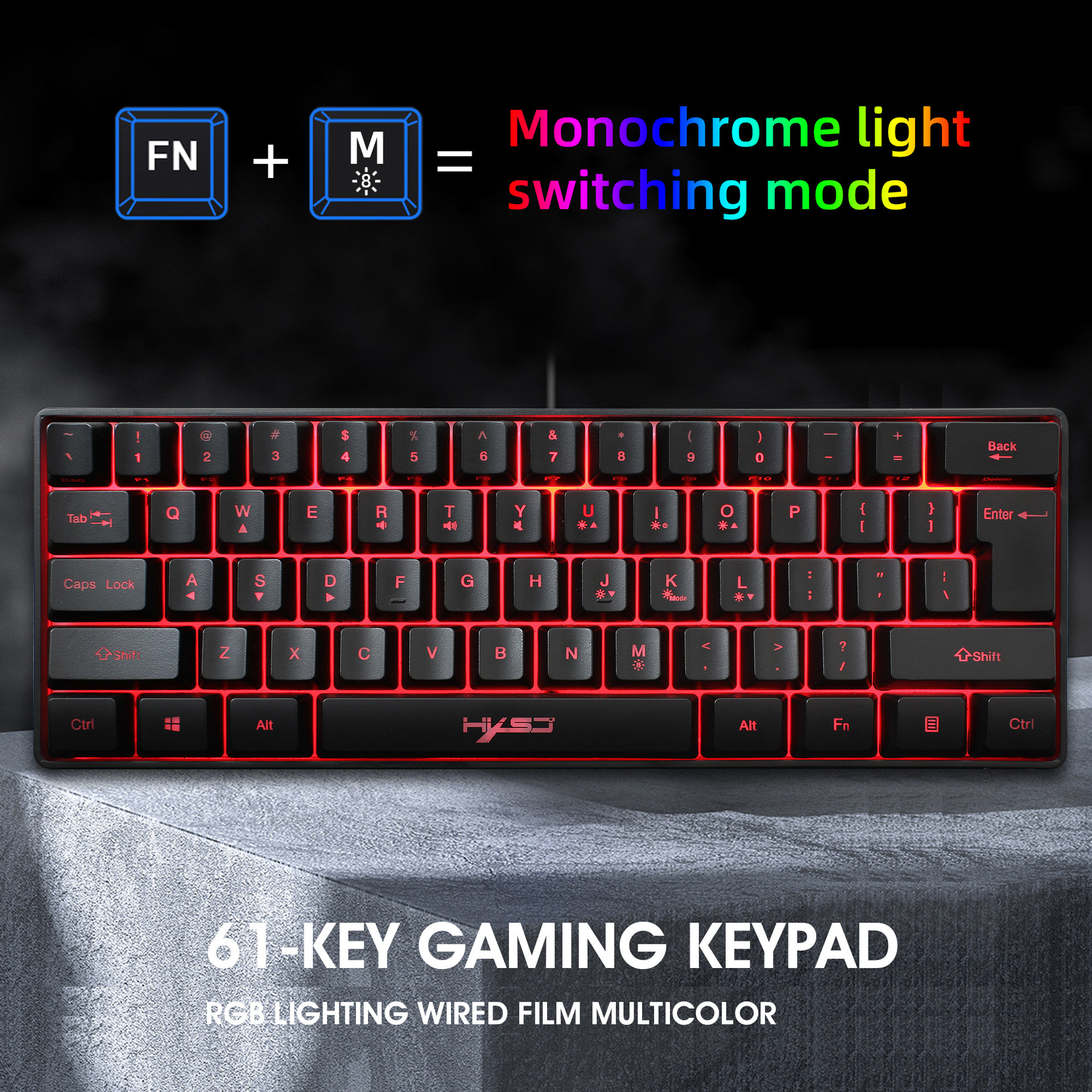 新HXSJ 61键游戏薄膜键盘RGB灯光迷你键盘多种快捷键组合工厂现货