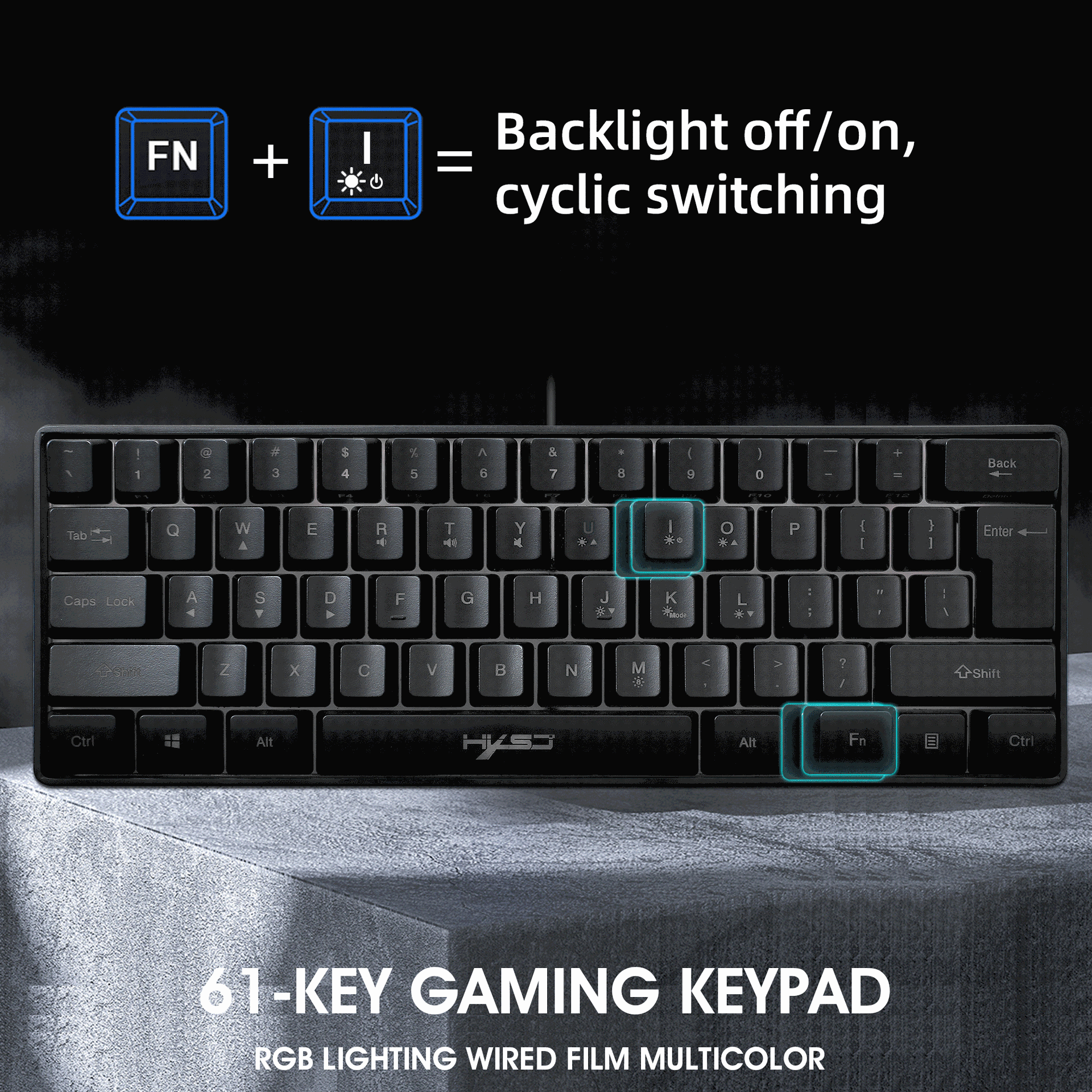 FN+ I: Backlight off/on, cyclic switching;