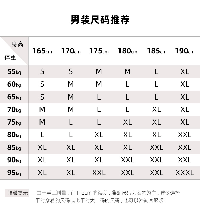 尺碼 165/S 170/M 175/L 180/XL 185/XXL 190/XXXL