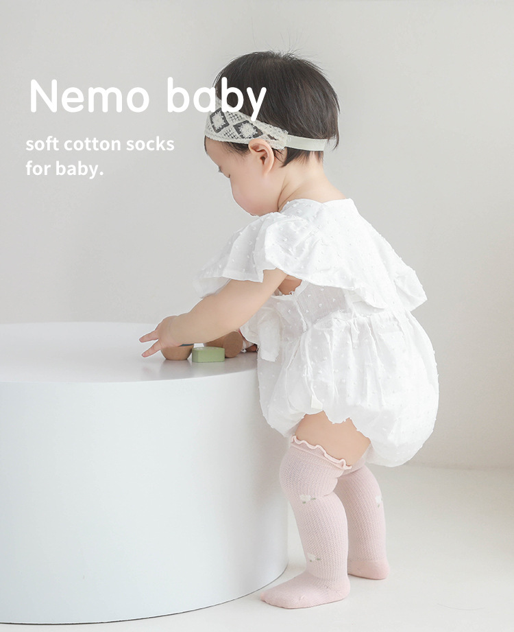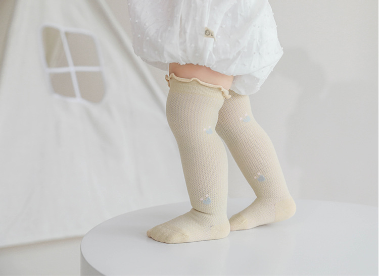 新生儿宝宝防蚊袜薄款网眼高筒袜松口无骨婴儿袜子女童花边长筒袜