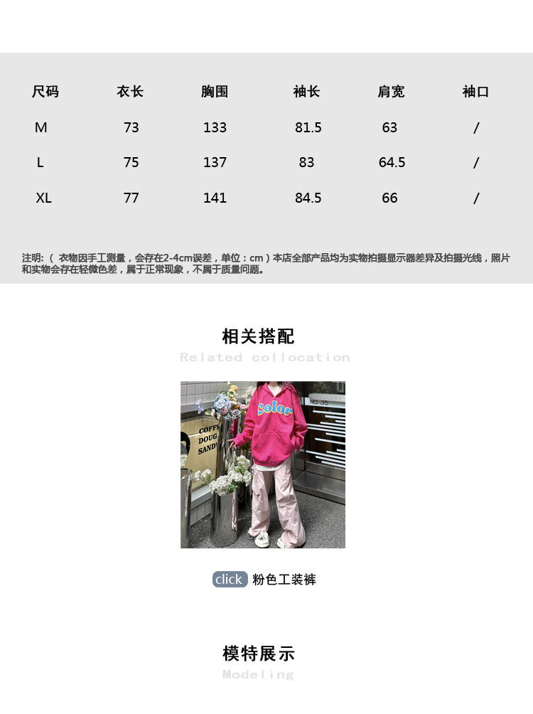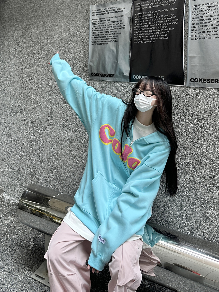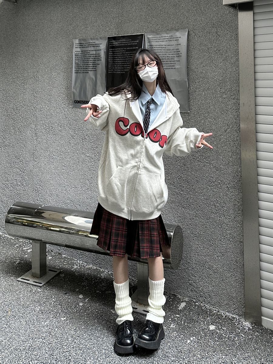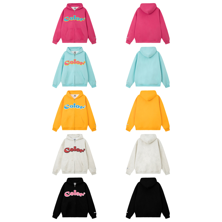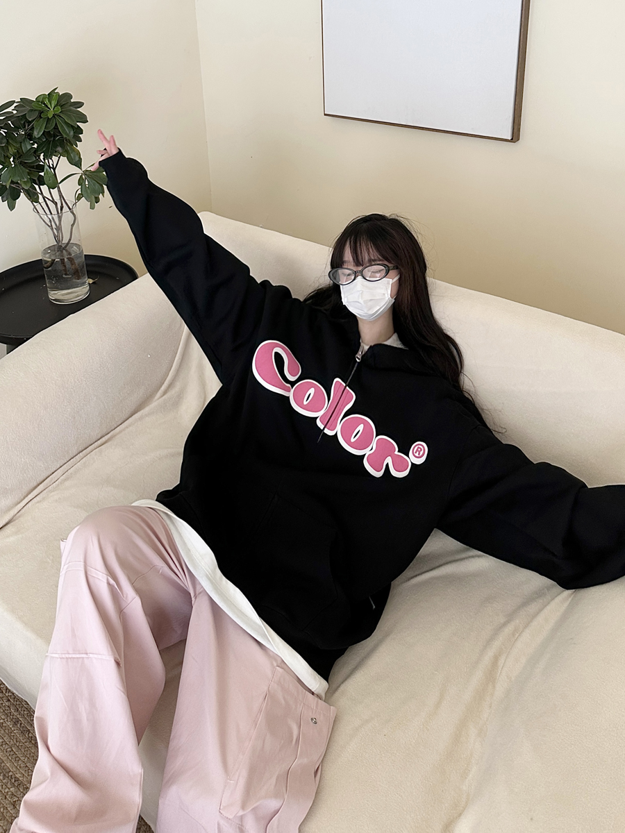 咖哩人秋美式復古彩色高街連帽運動衫外套開衫多巴胺男女學生百搭