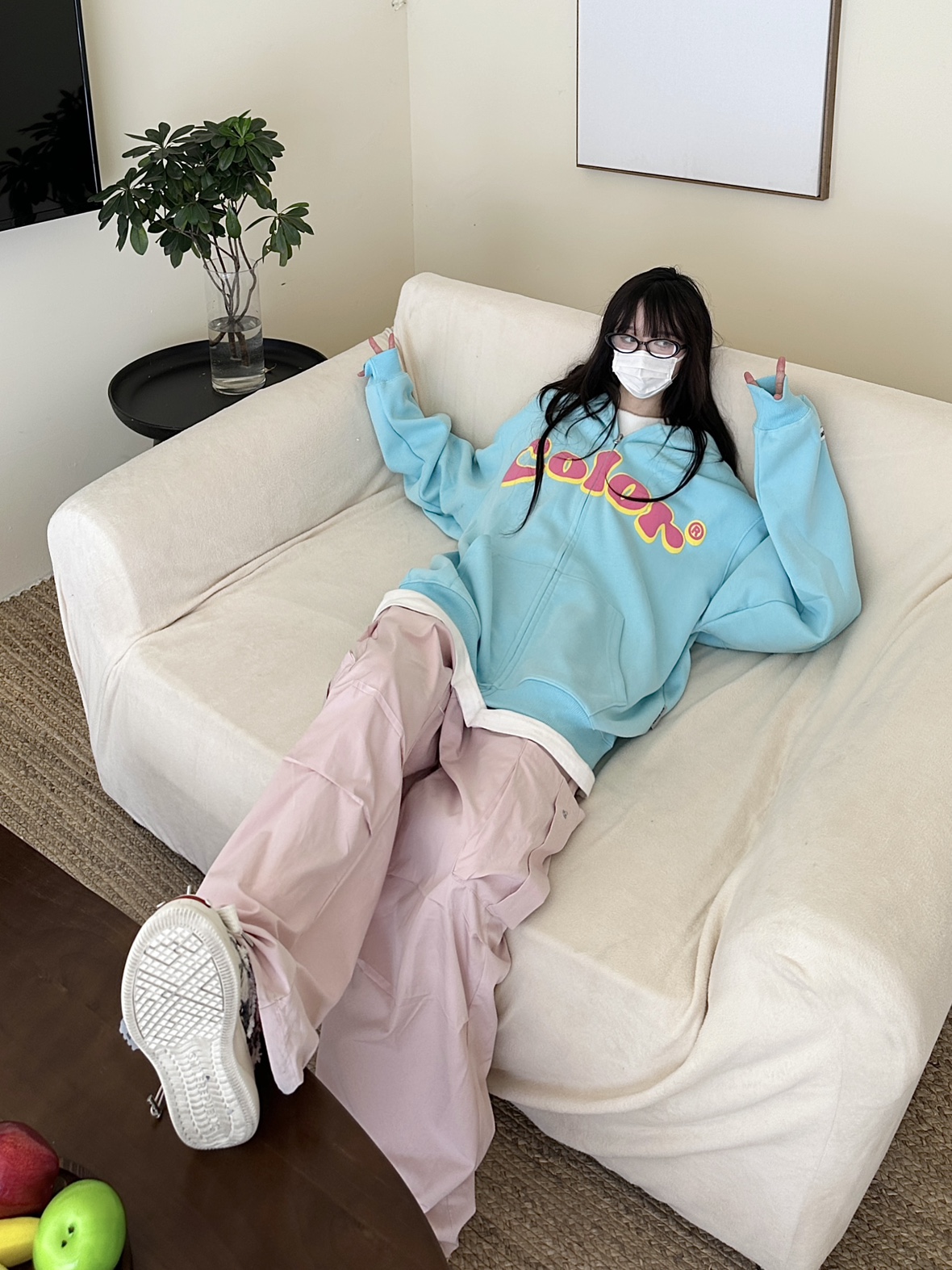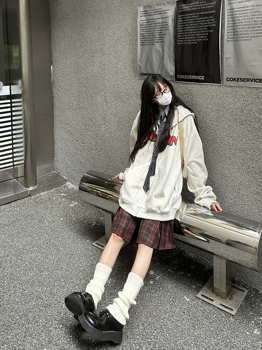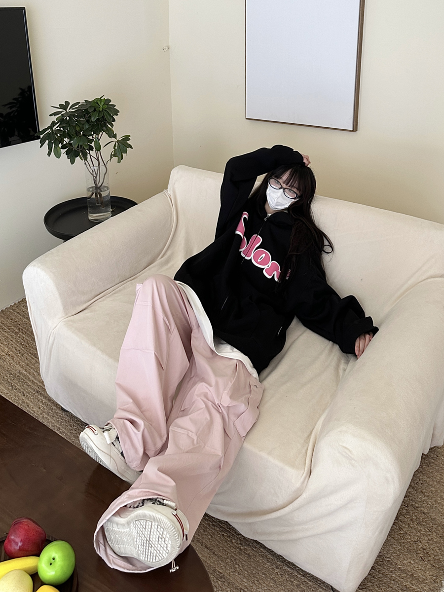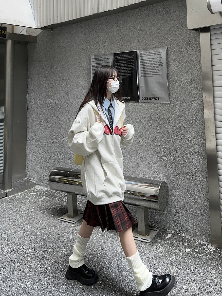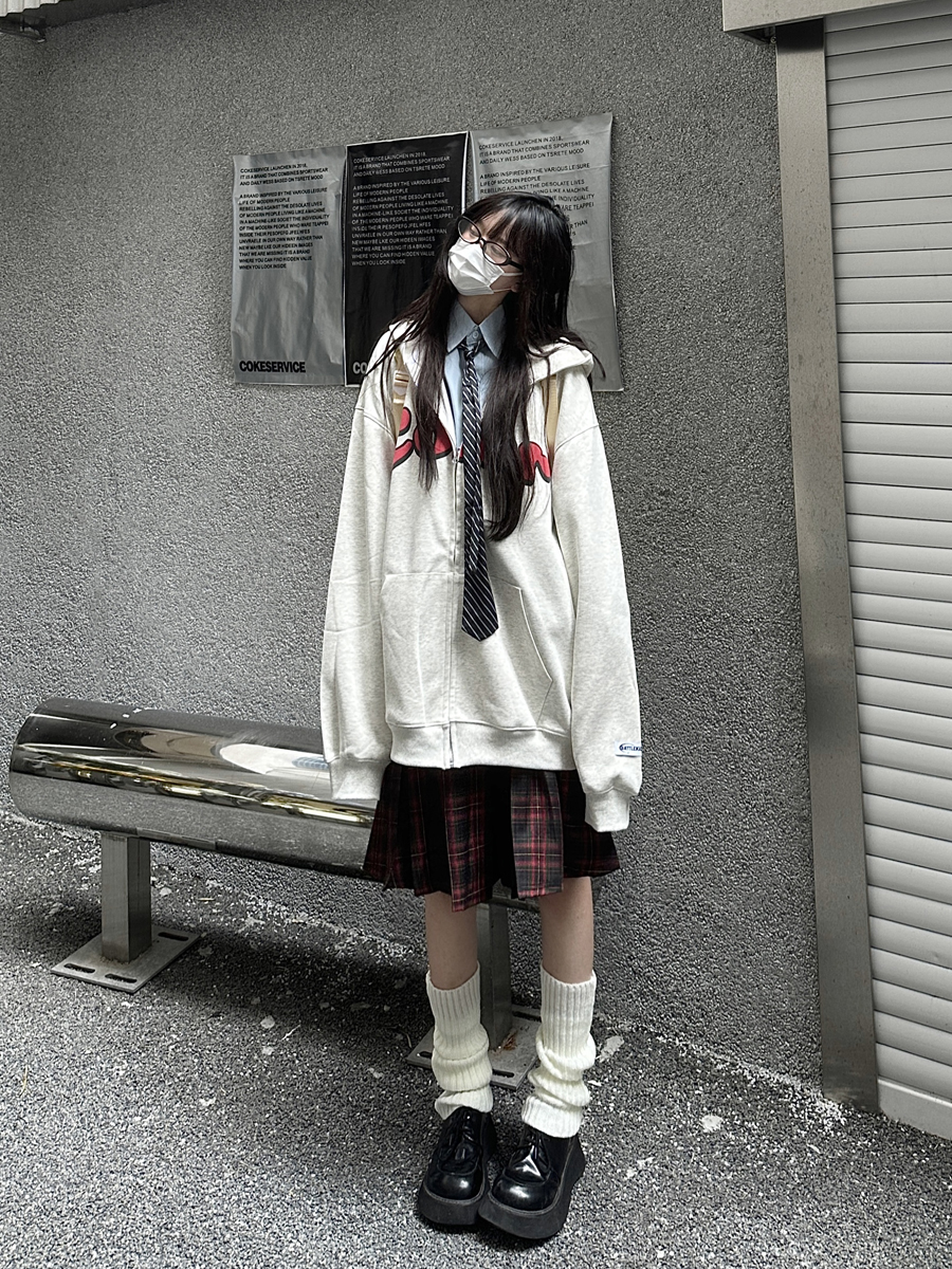 咖哩人秋美式復古彩色高街連帽運動衫外套開衫多巴胺男女學生百搭