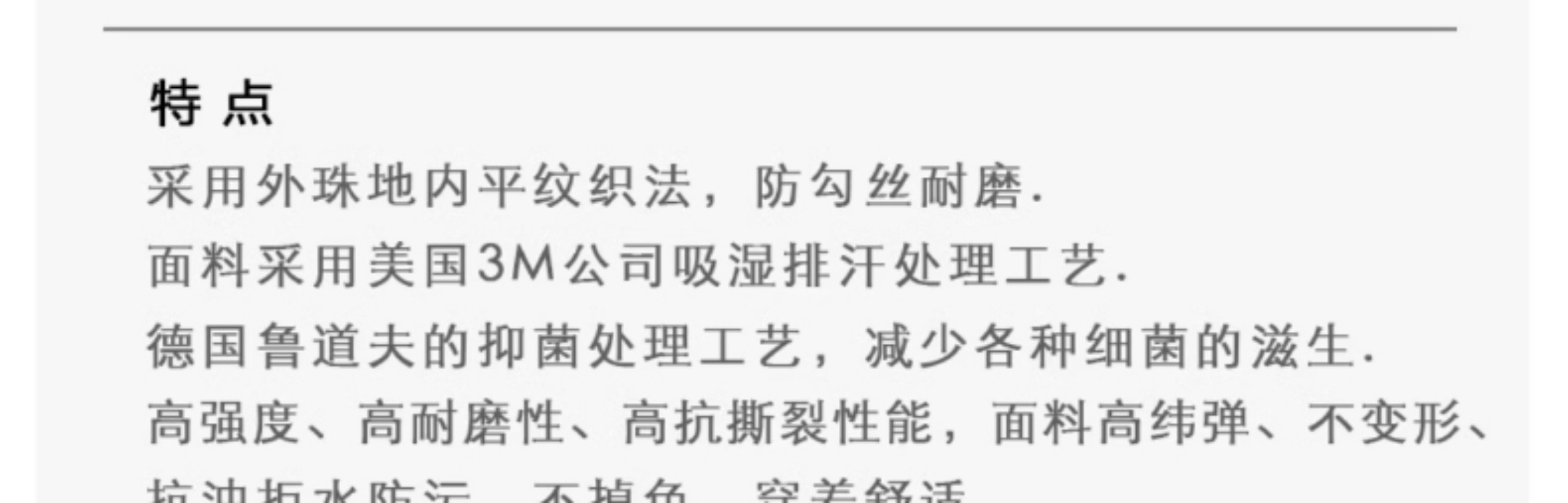 主要功能 透氣,耐磨,速乾,吸汗