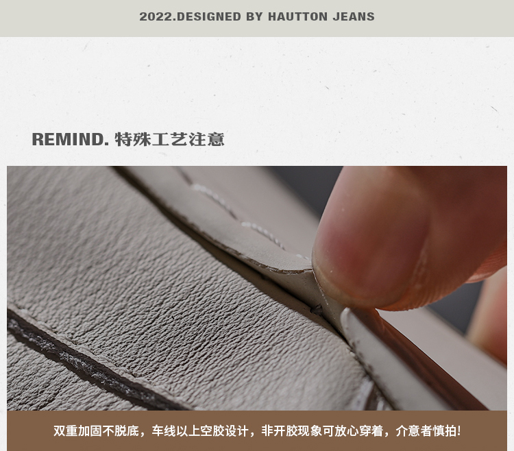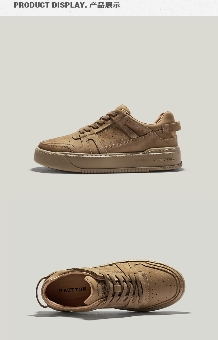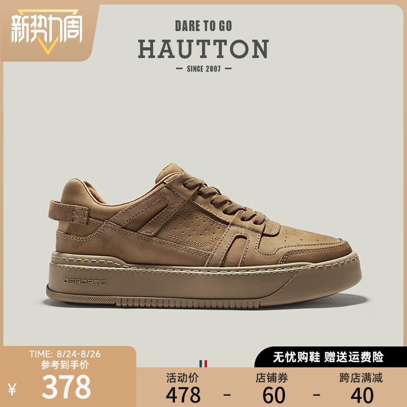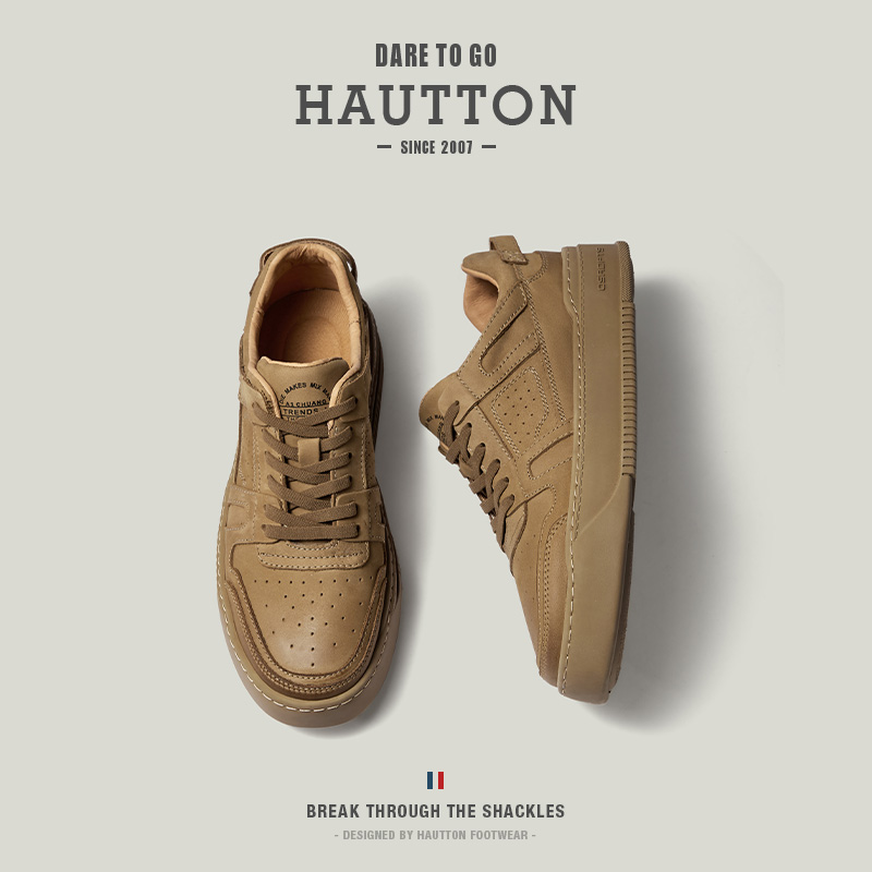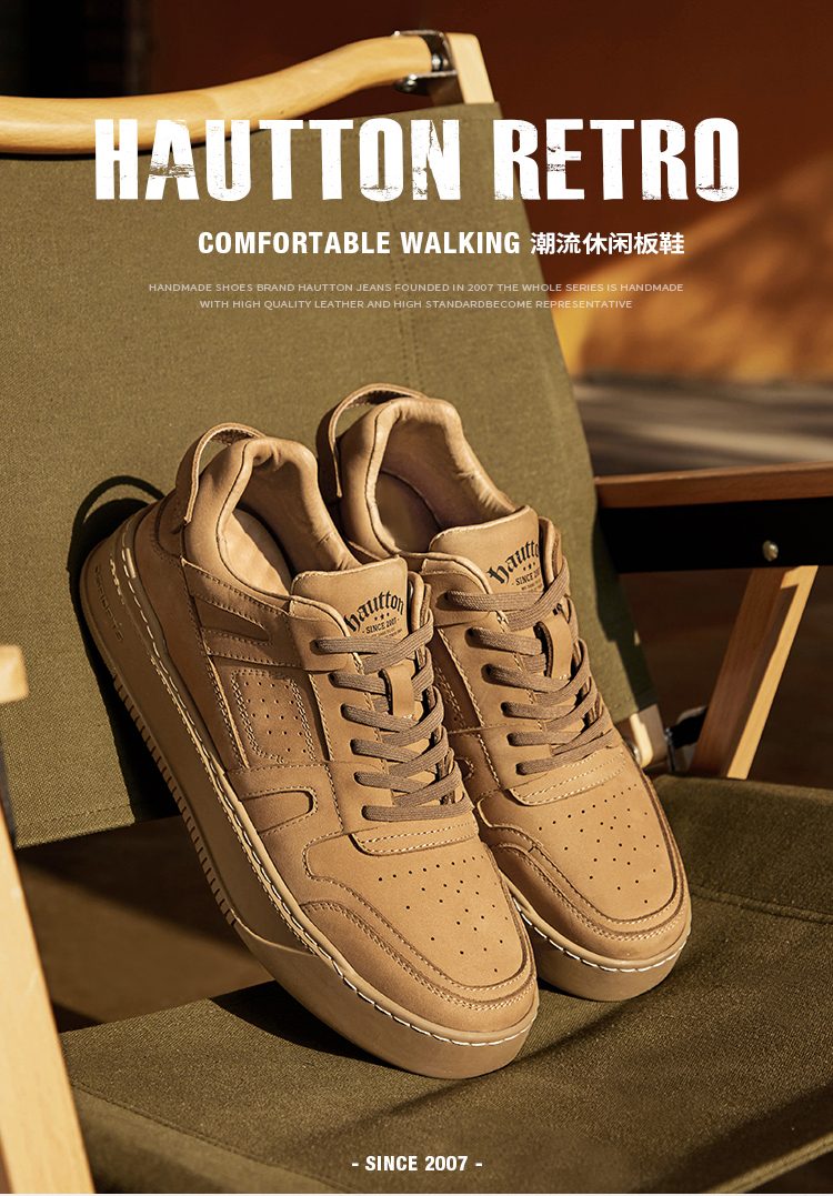 HauttonJeans復古真皮板鞋男士潮鞋夏季新款厚底男鞋工裝休閒鞋子