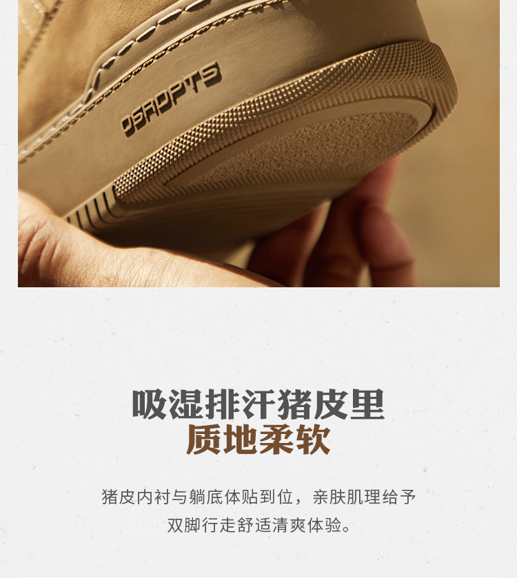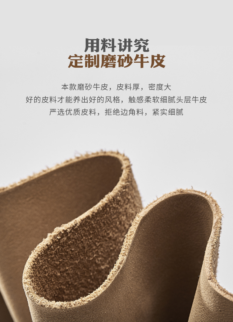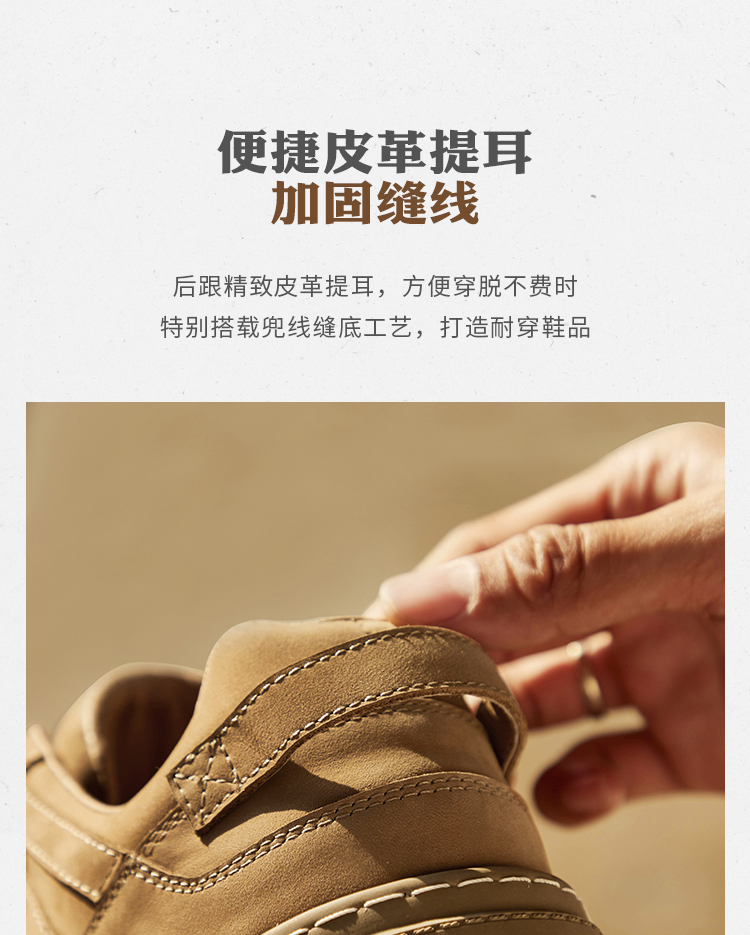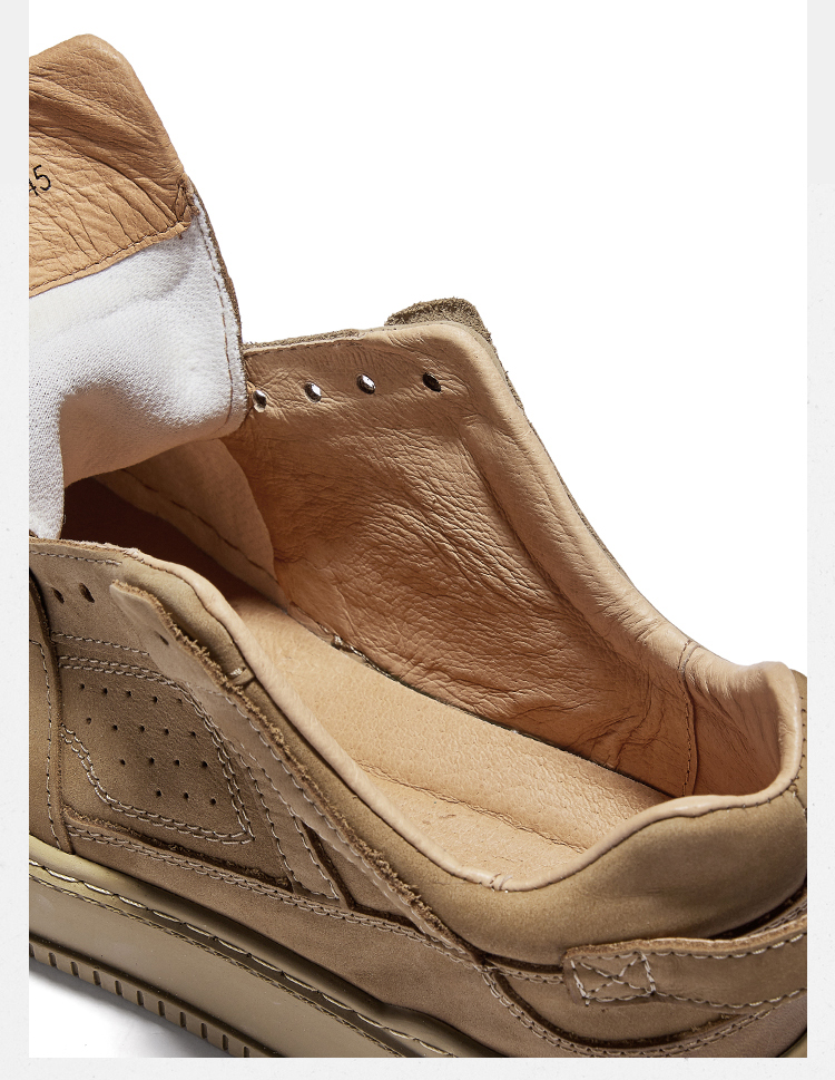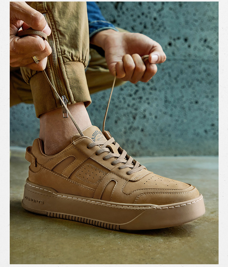 HauttonJeans復古真皮板鞋男士潮鞋夏季新款厚底男鞋工裝休閒鞋子