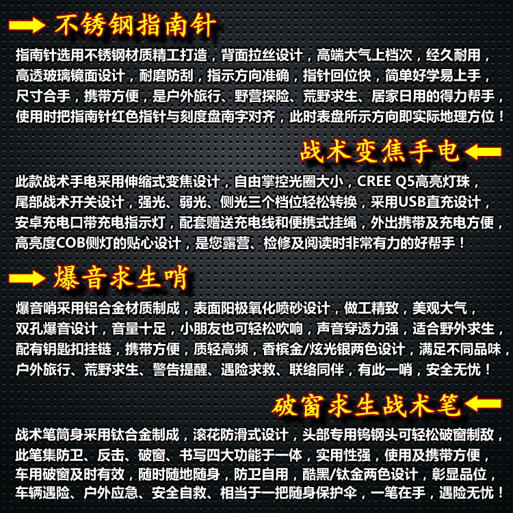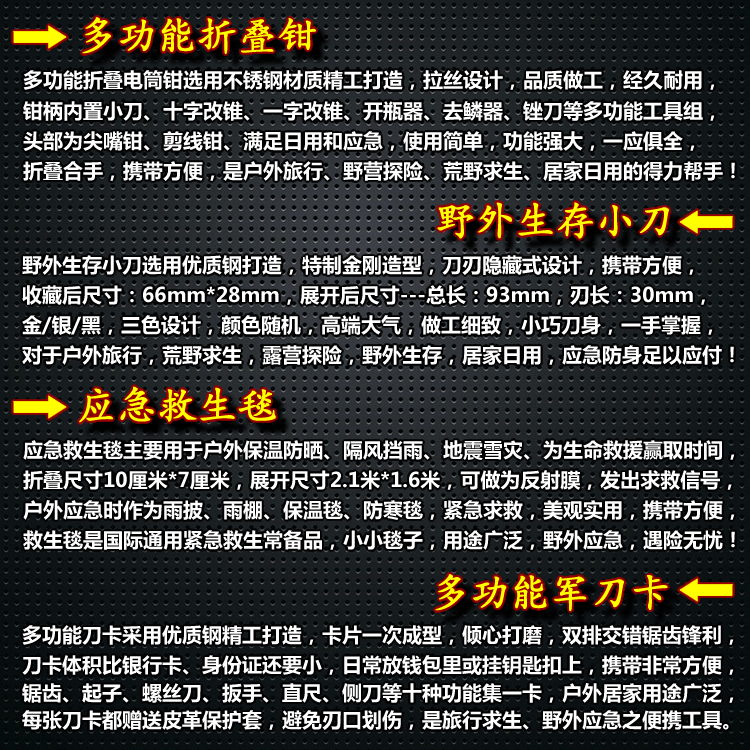 顏色分類 基礎版求生寶盒(小號·6件套),女神版求生寶盒(中號·8件套),男人版求生寶盒(大號·12件套)