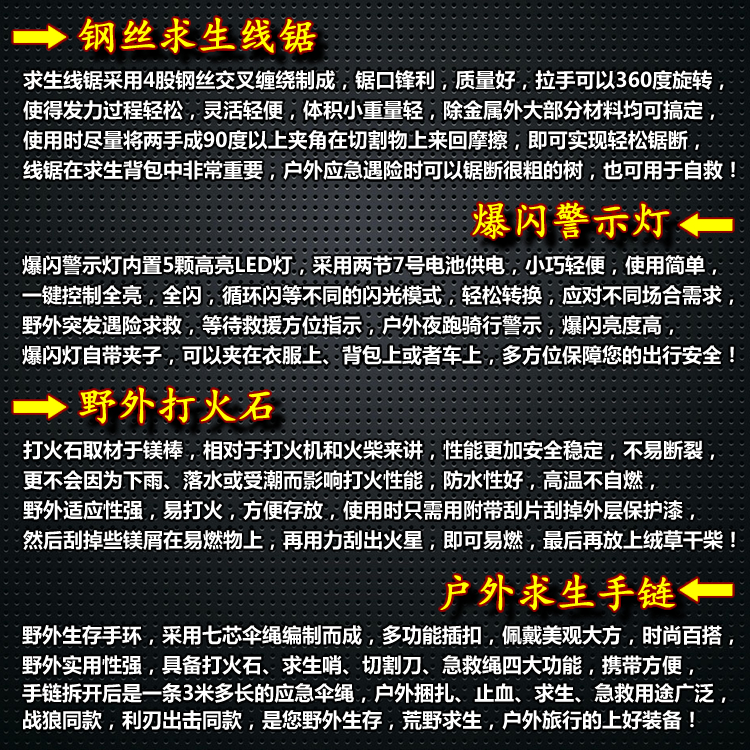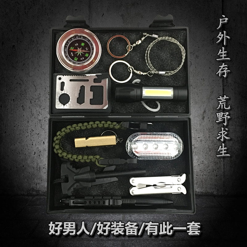 野外生存裝備打火石套裝戶外用品SOS應急多功能荒野求生工具寶盒