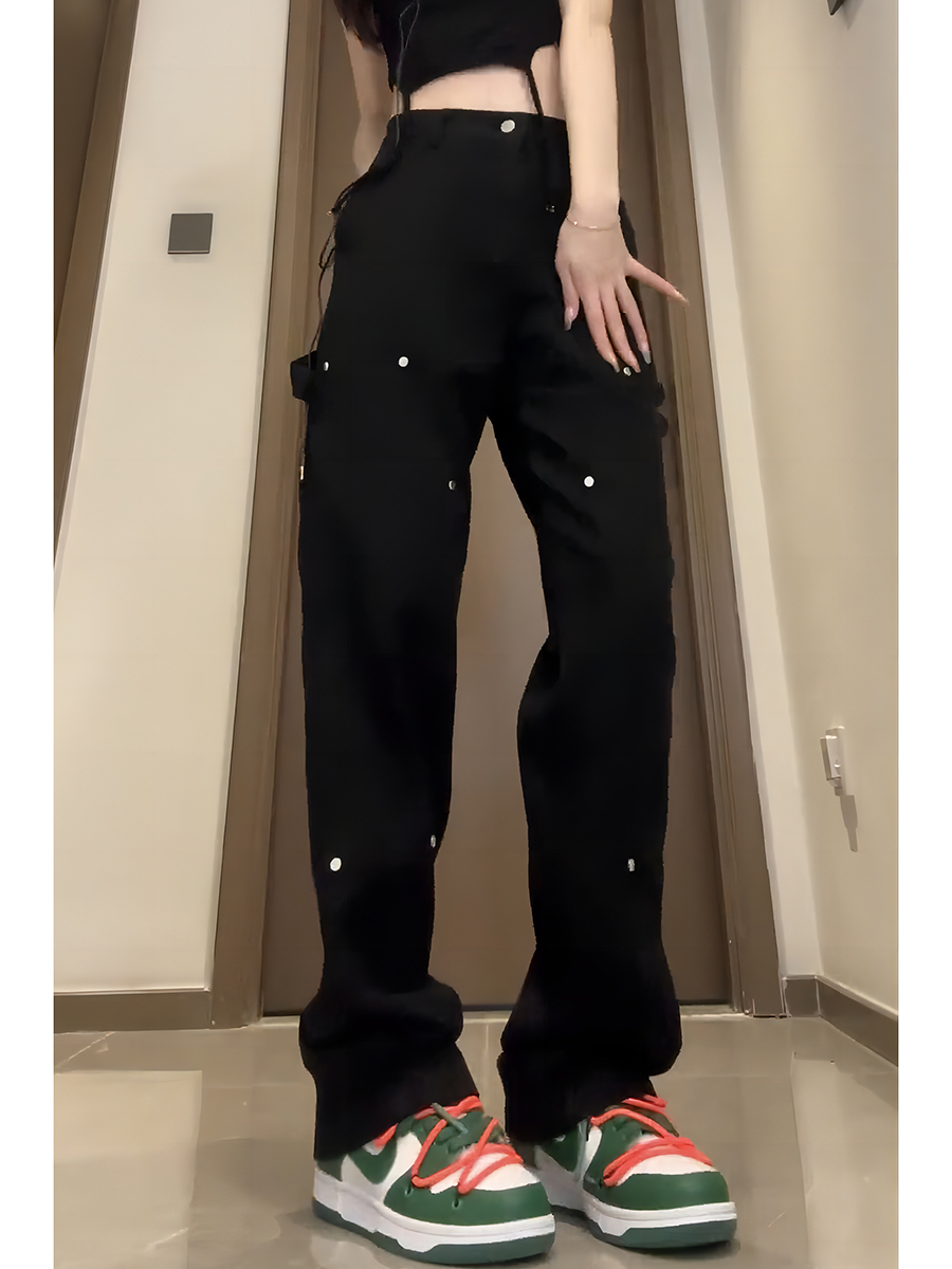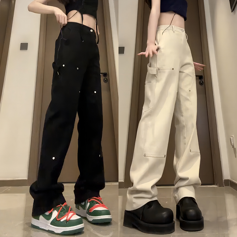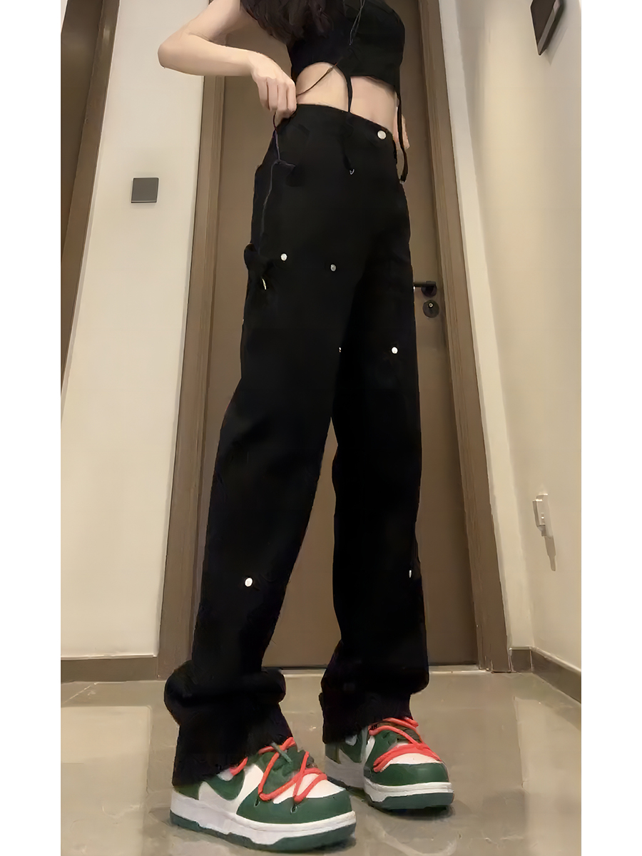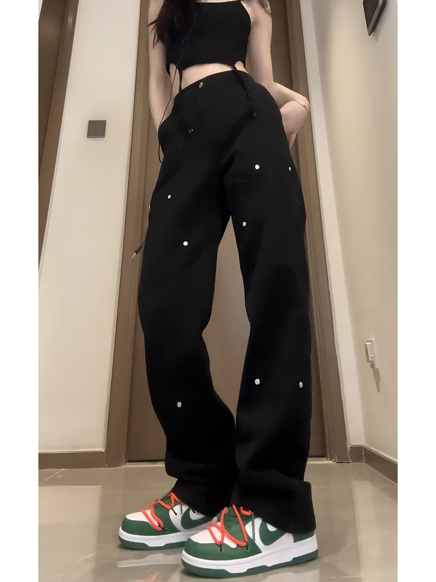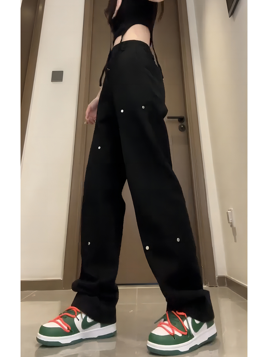 梨形身材微胖女生穿搭大尺碼女裝窄版闊腿拖地褲寬鬆休閒工作服長褲子