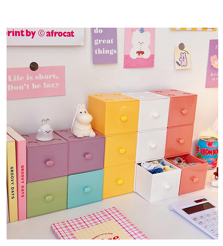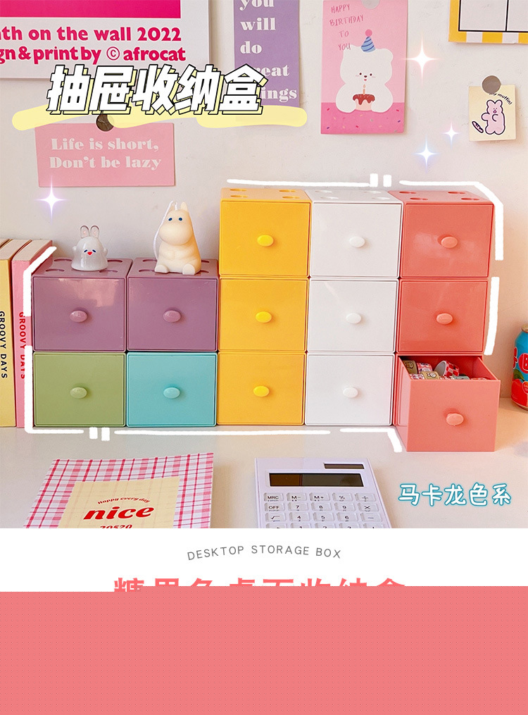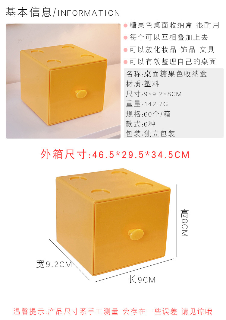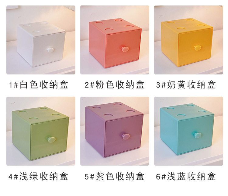 桌面糖果色马卡龙方形收纳盒自由组合积木收纳盒化妆品首饰储物盒