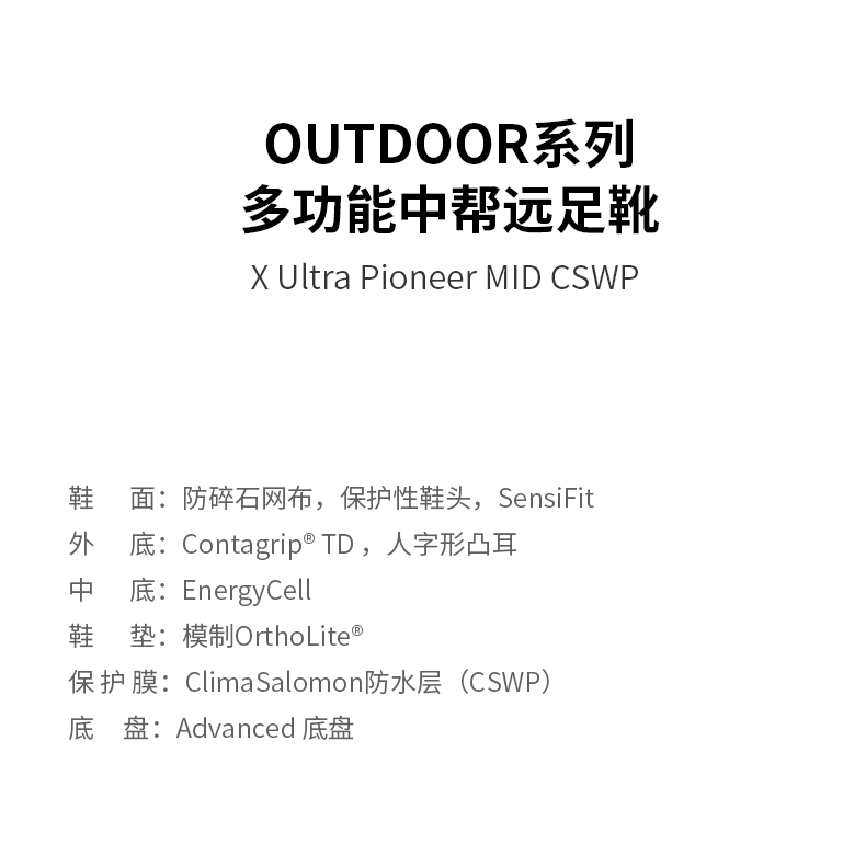 salomon薩洛蒙多功能中筒徒步鞋男防水X Ultra Pioneer MID CSWP