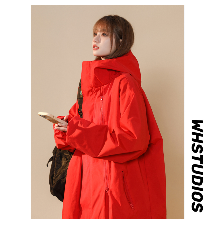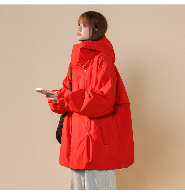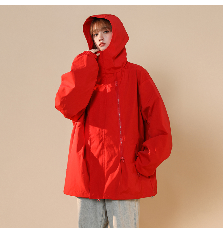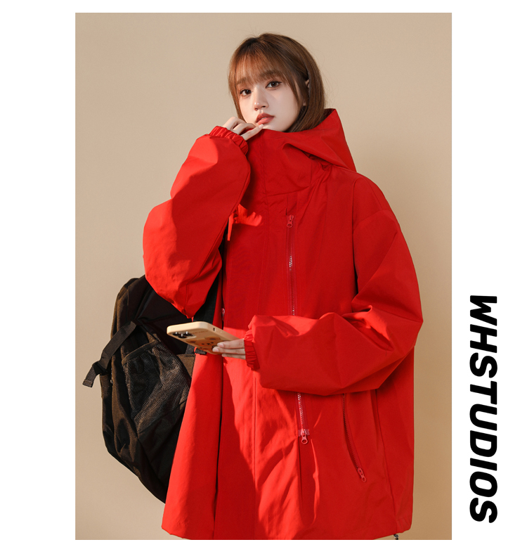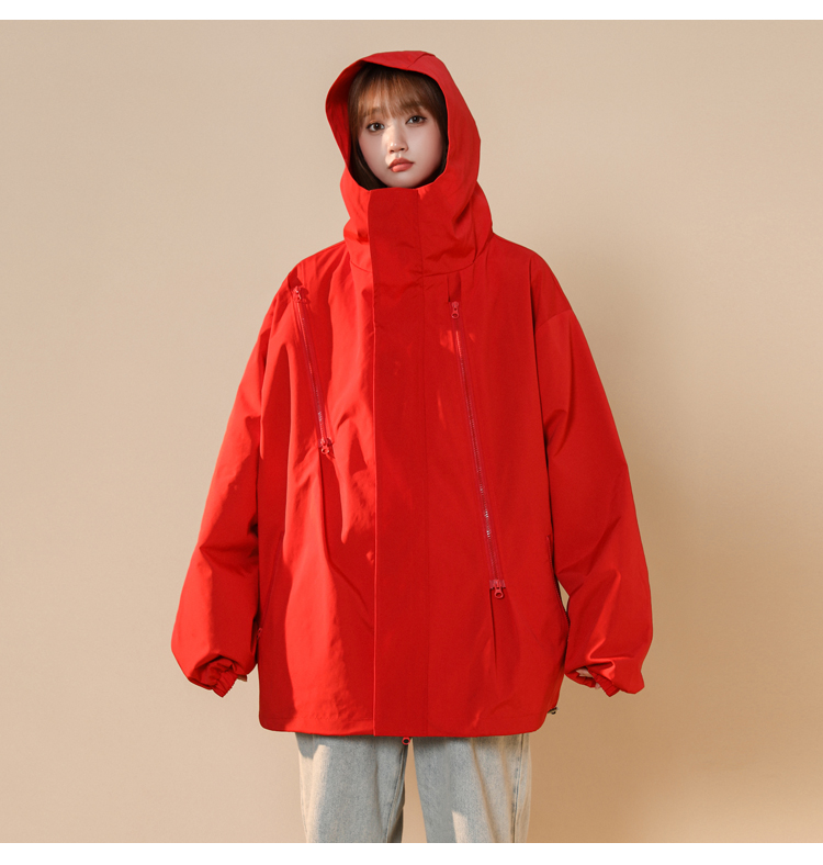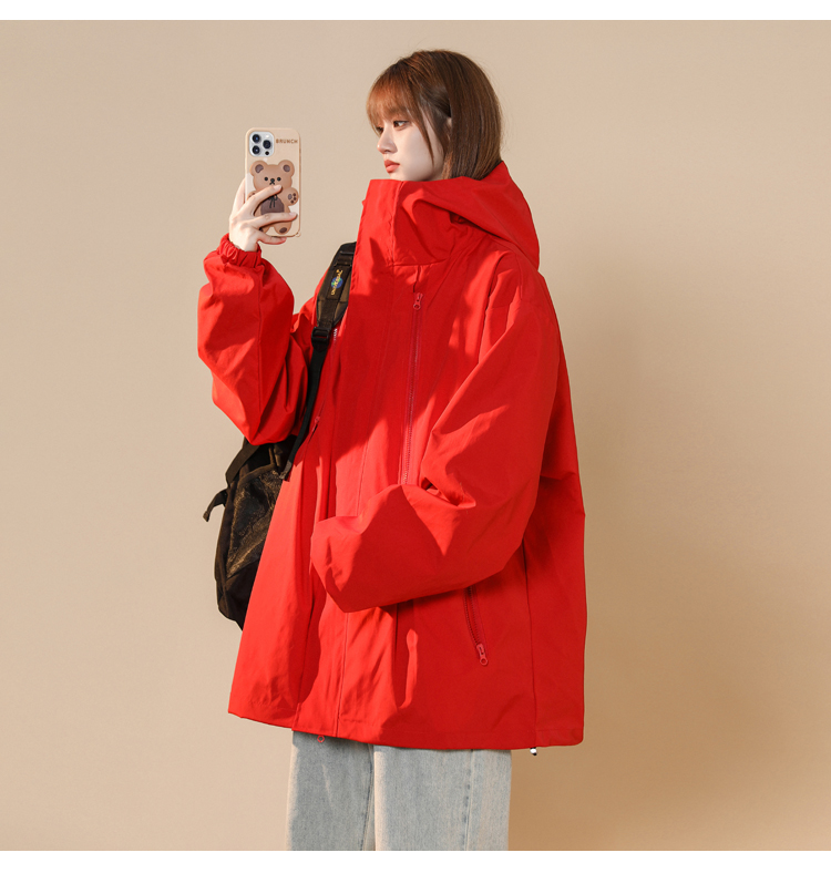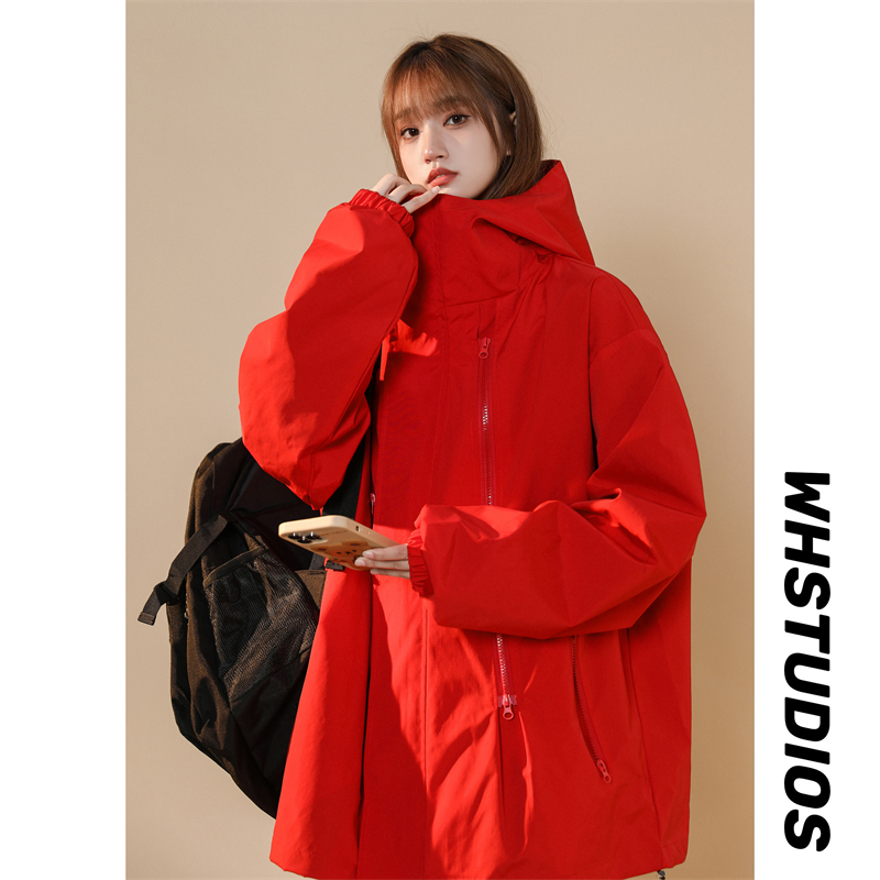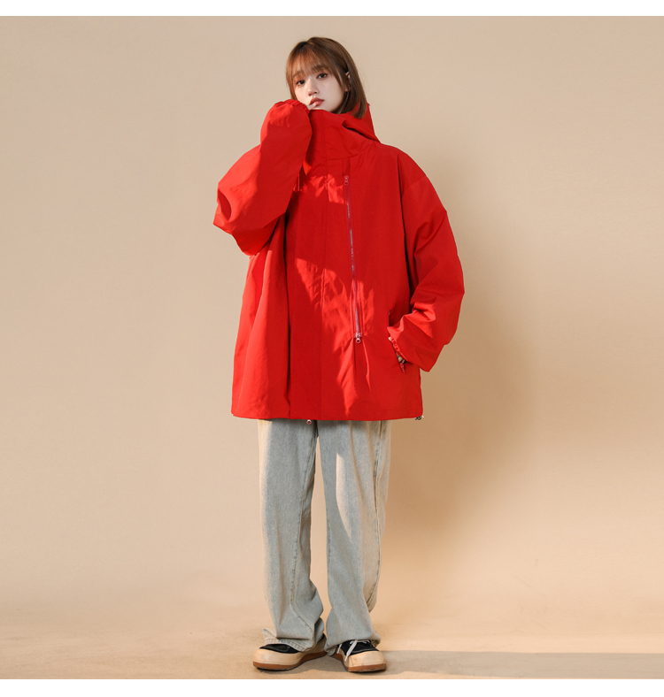 2023兔年本命年男裝大紅色外套男機能風雙拉鍊衝鋒衣春節情侶衣服