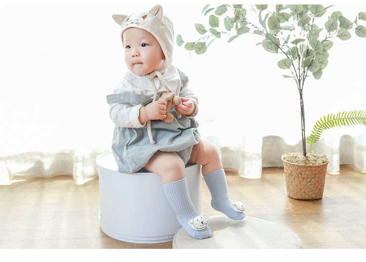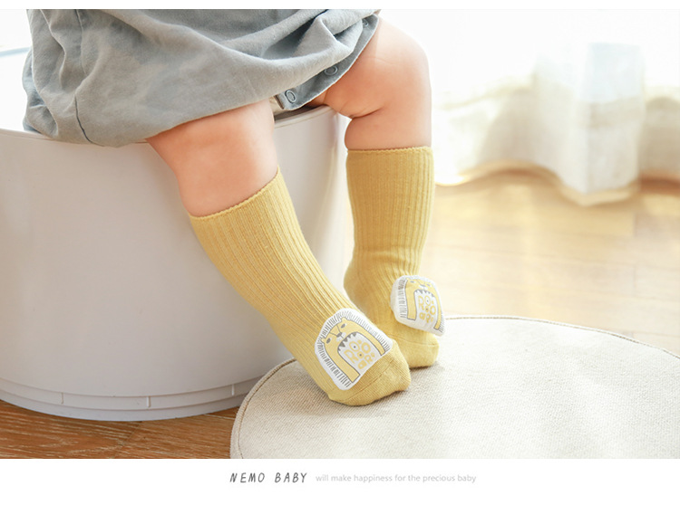 袜子儿童中筒袜潮春秋双针印花公仔宝宝袜新生婴儿点胶防滑地板袜