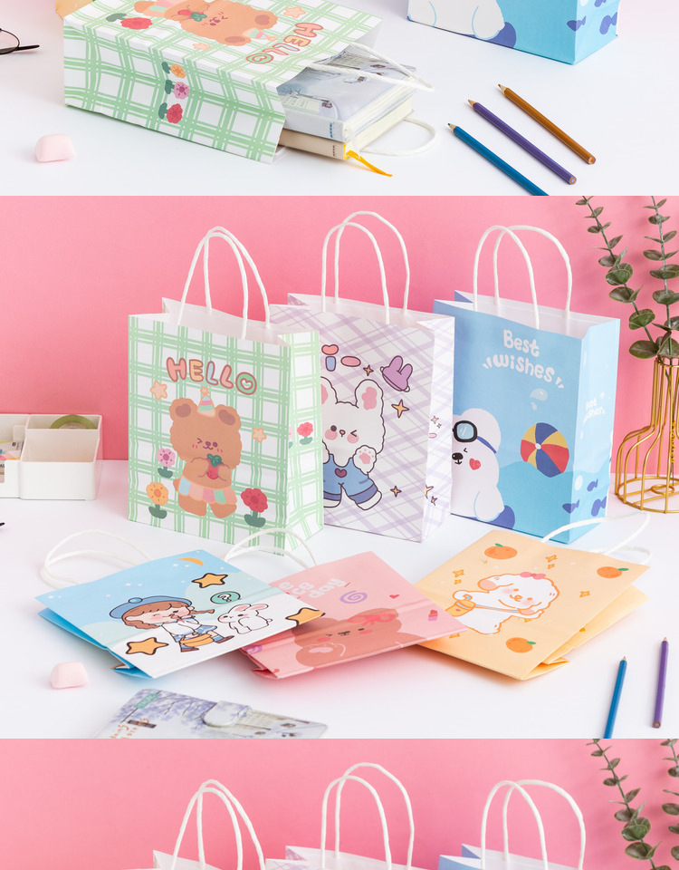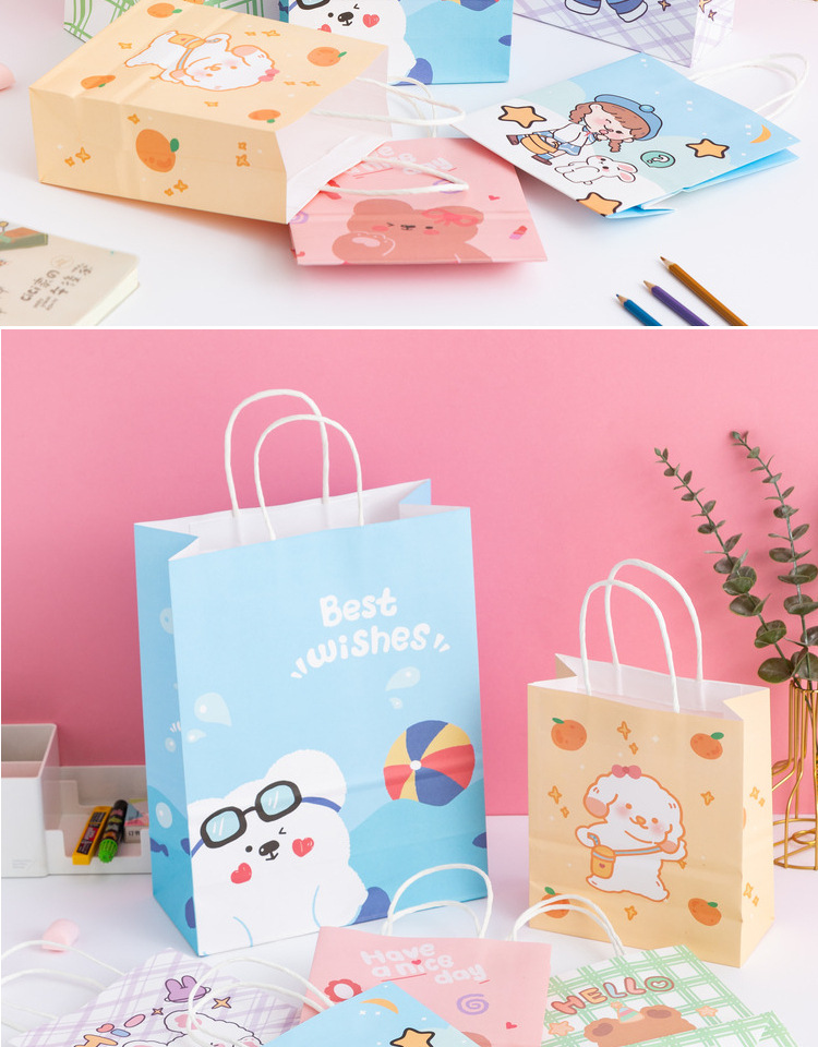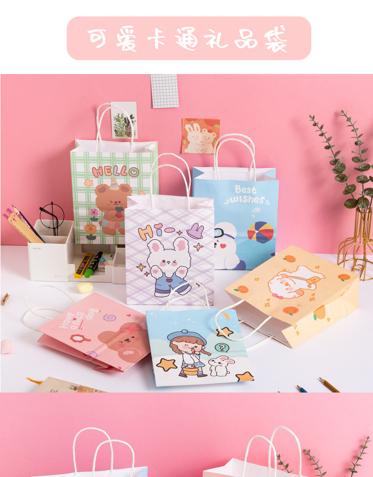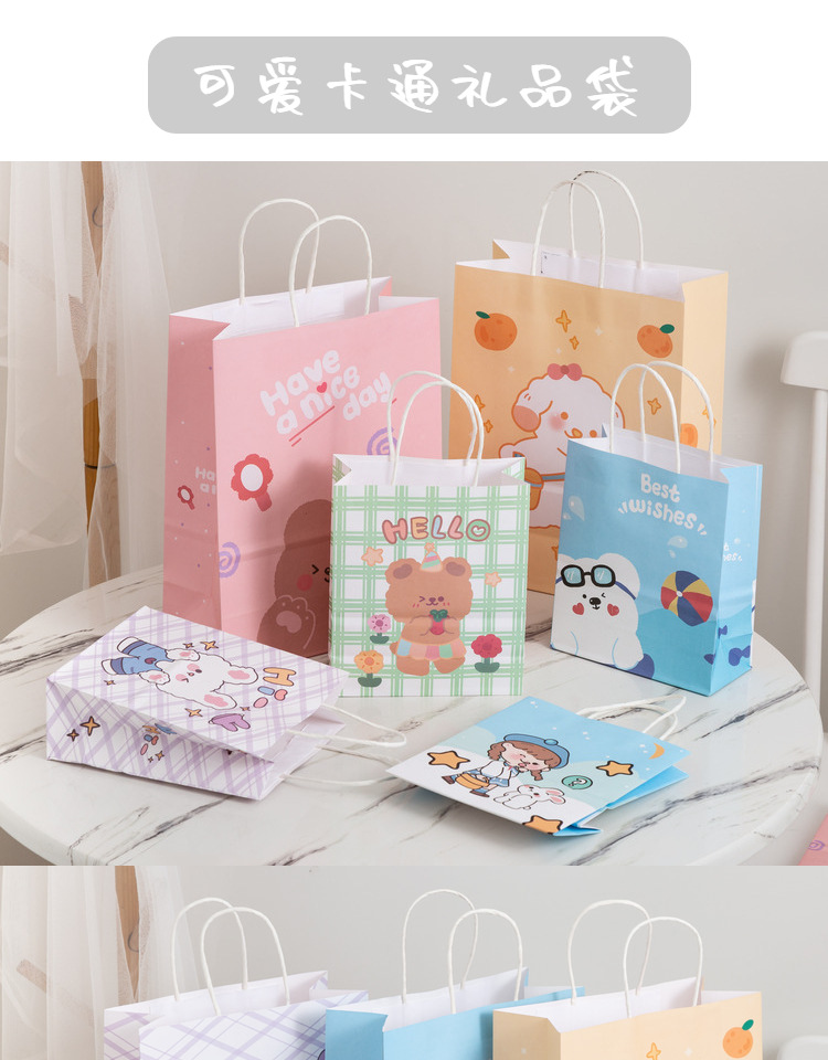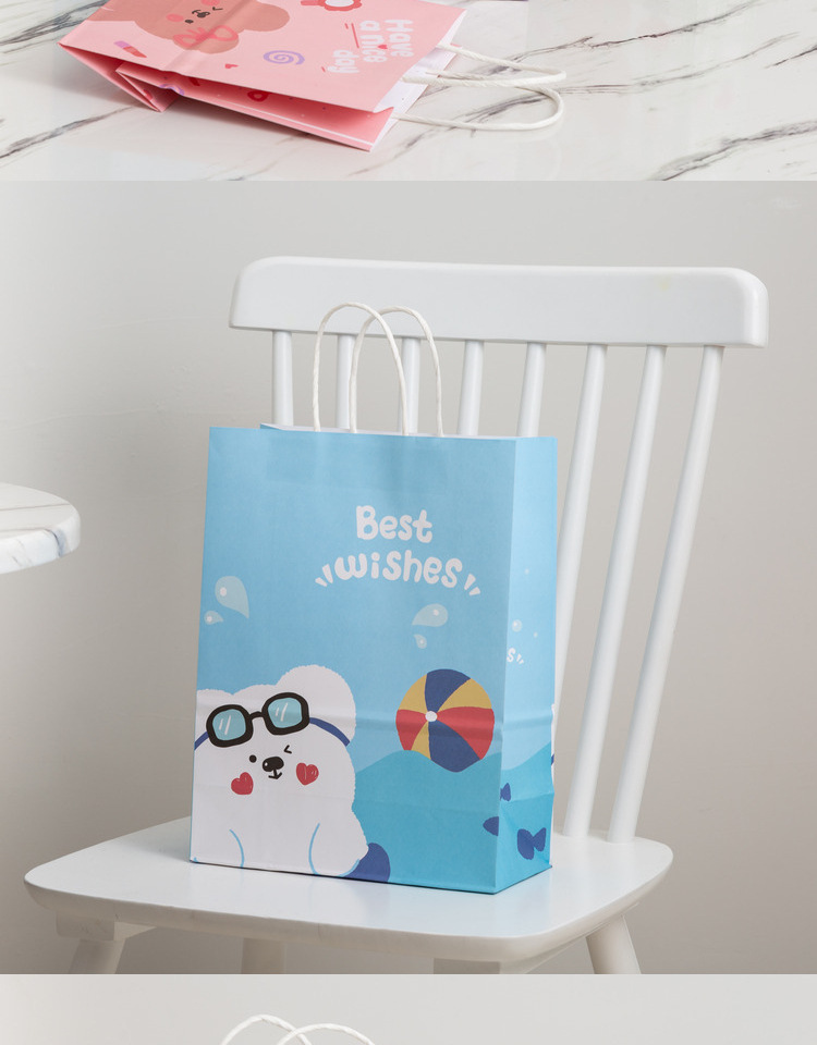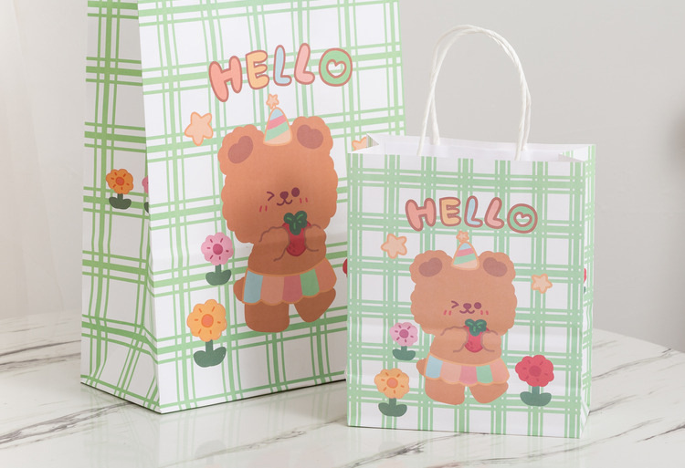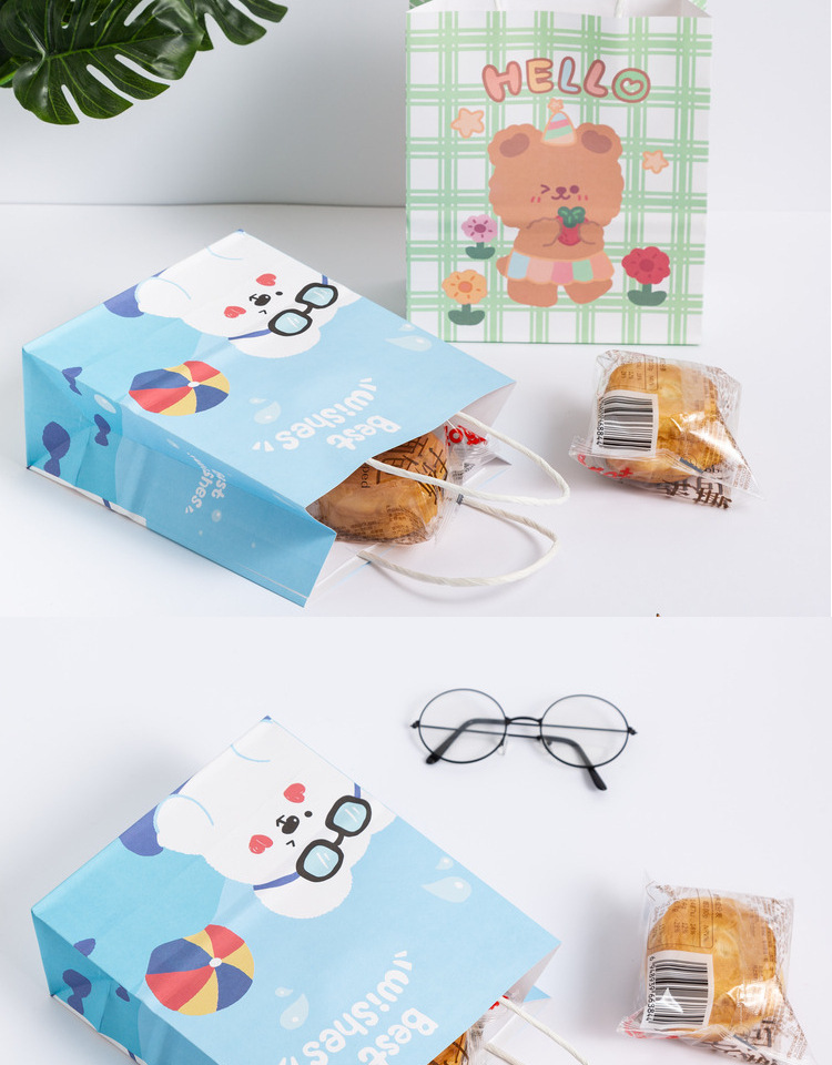卡通ins儿童简约可爱韩风萌熊牛皮纸袋零食生日伴购物手提礼袋