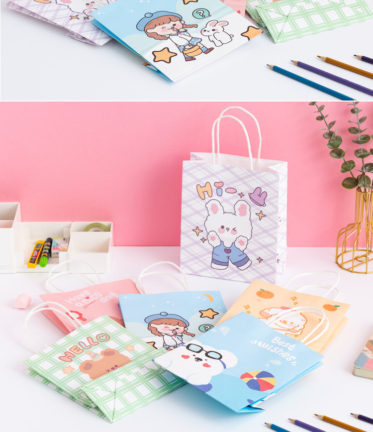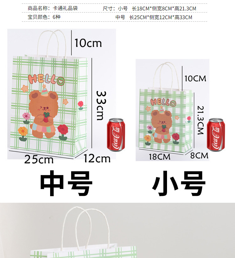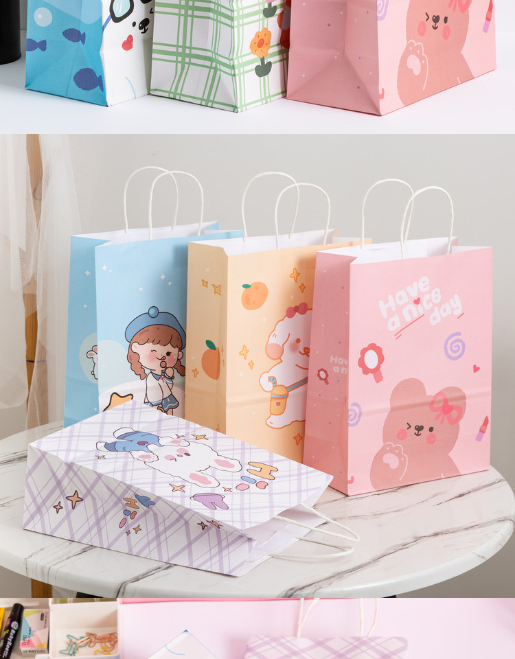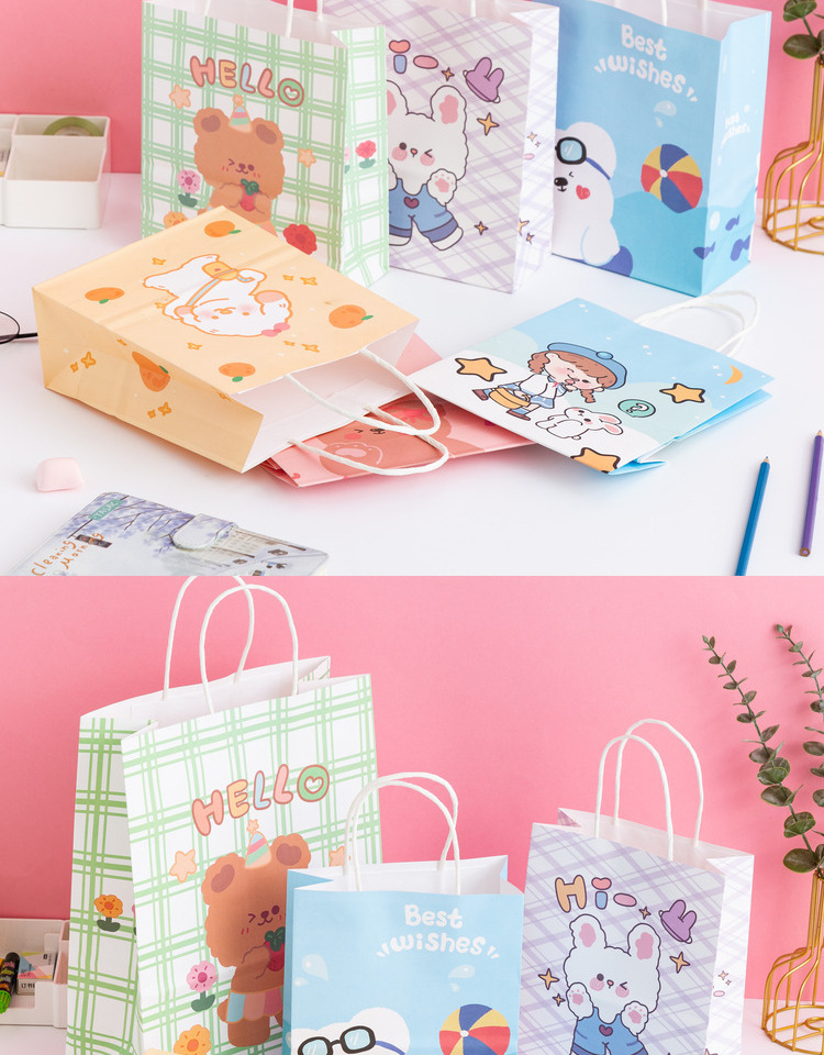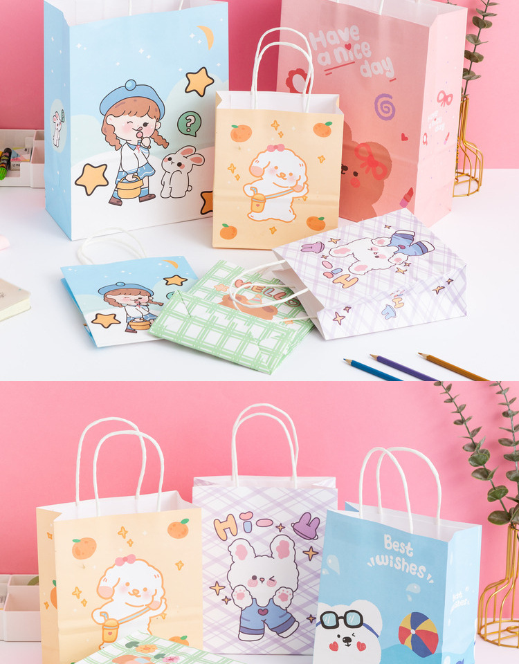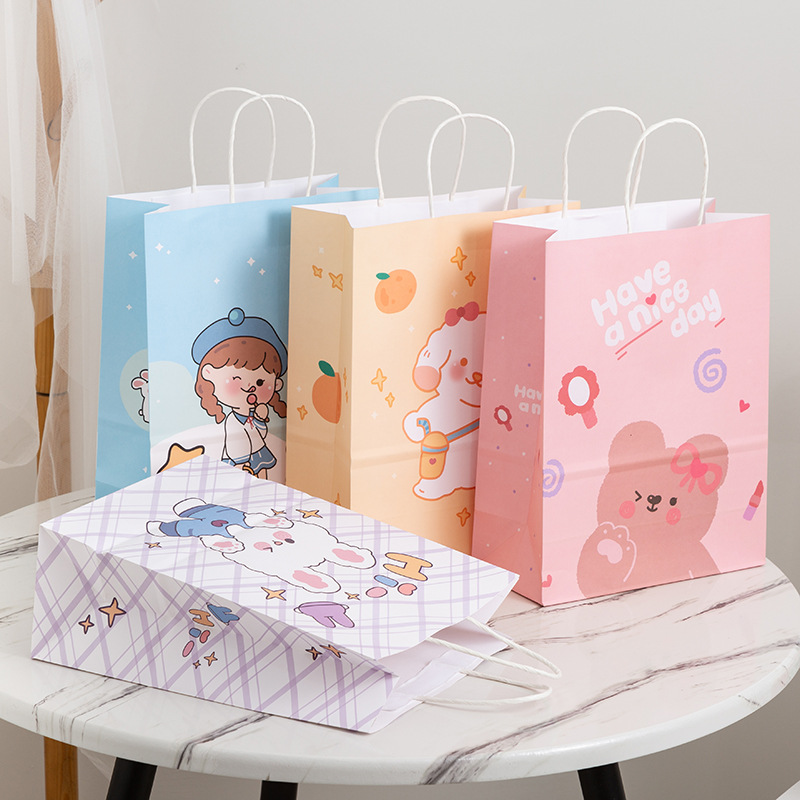 卡通ins儿童简约可爱韩风萌熊牛皮纸袋零食生日伴购物手提礼袋