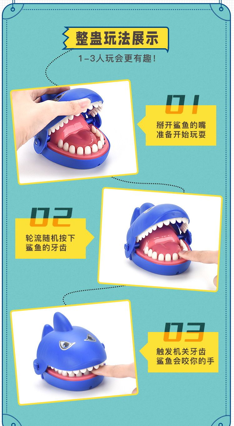 小鲨鱼咬手指玩具鲨鱼拔牙亲子游戏新奇特咬手玩具儿童整蛊人道具
