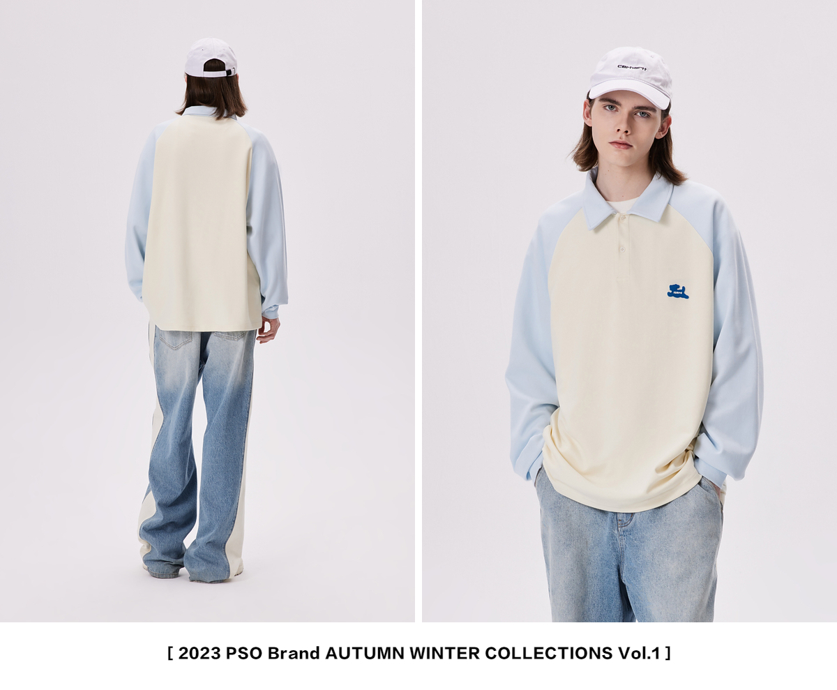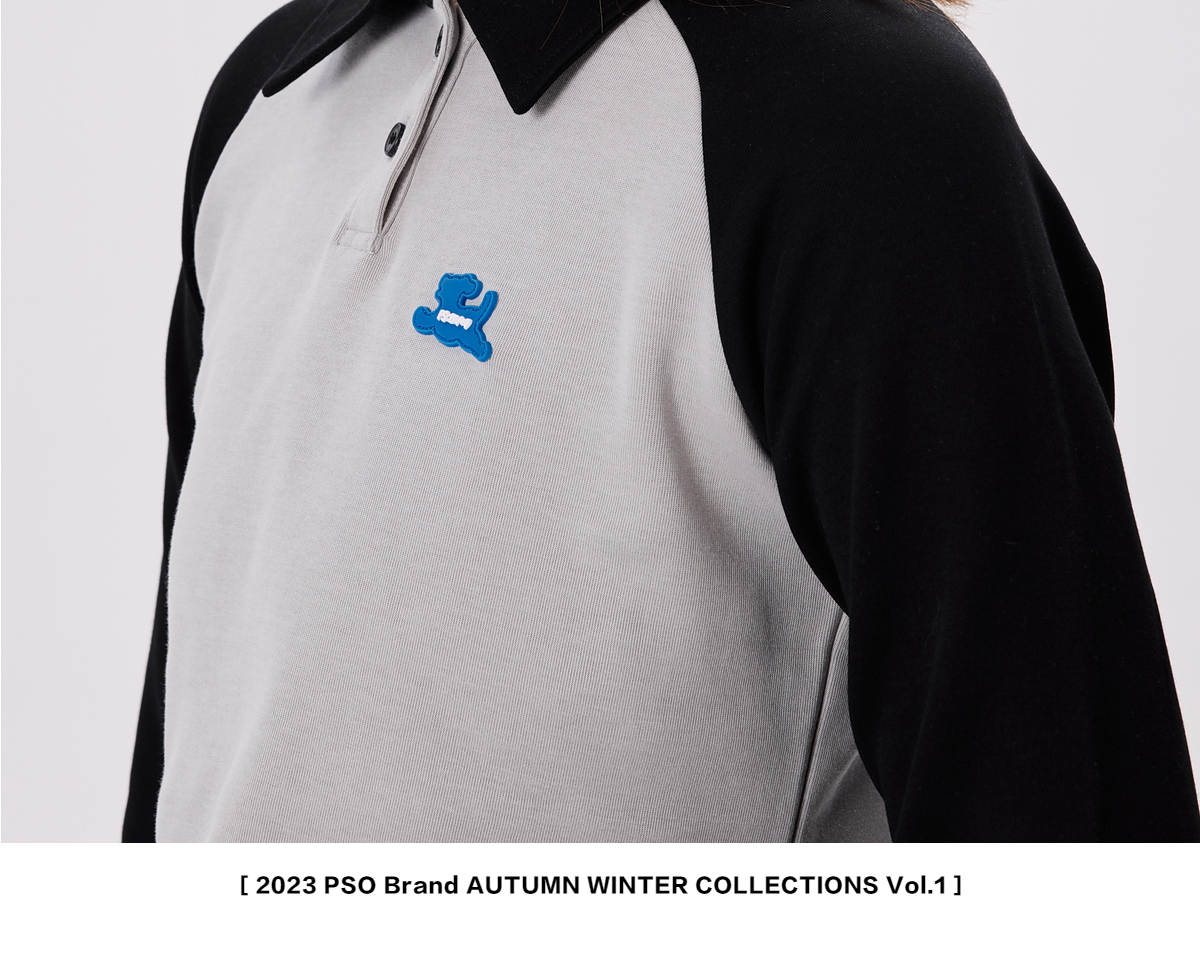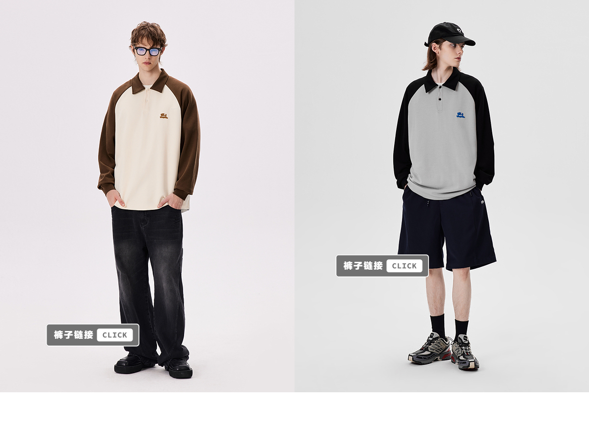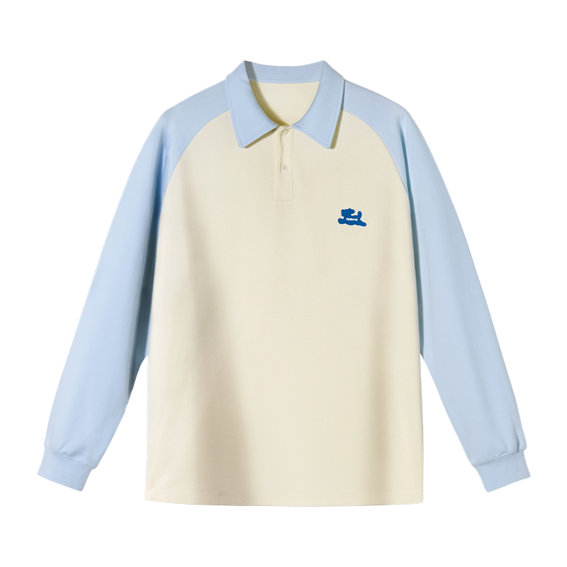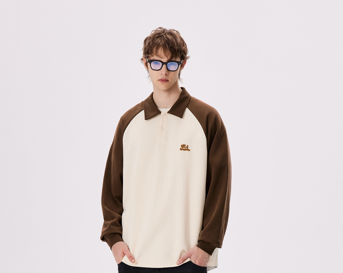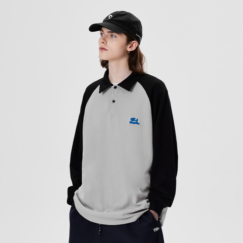 PSO Brand【彈力】290克針織可愛小狗撞色插肩長袖POLO衫男翻領